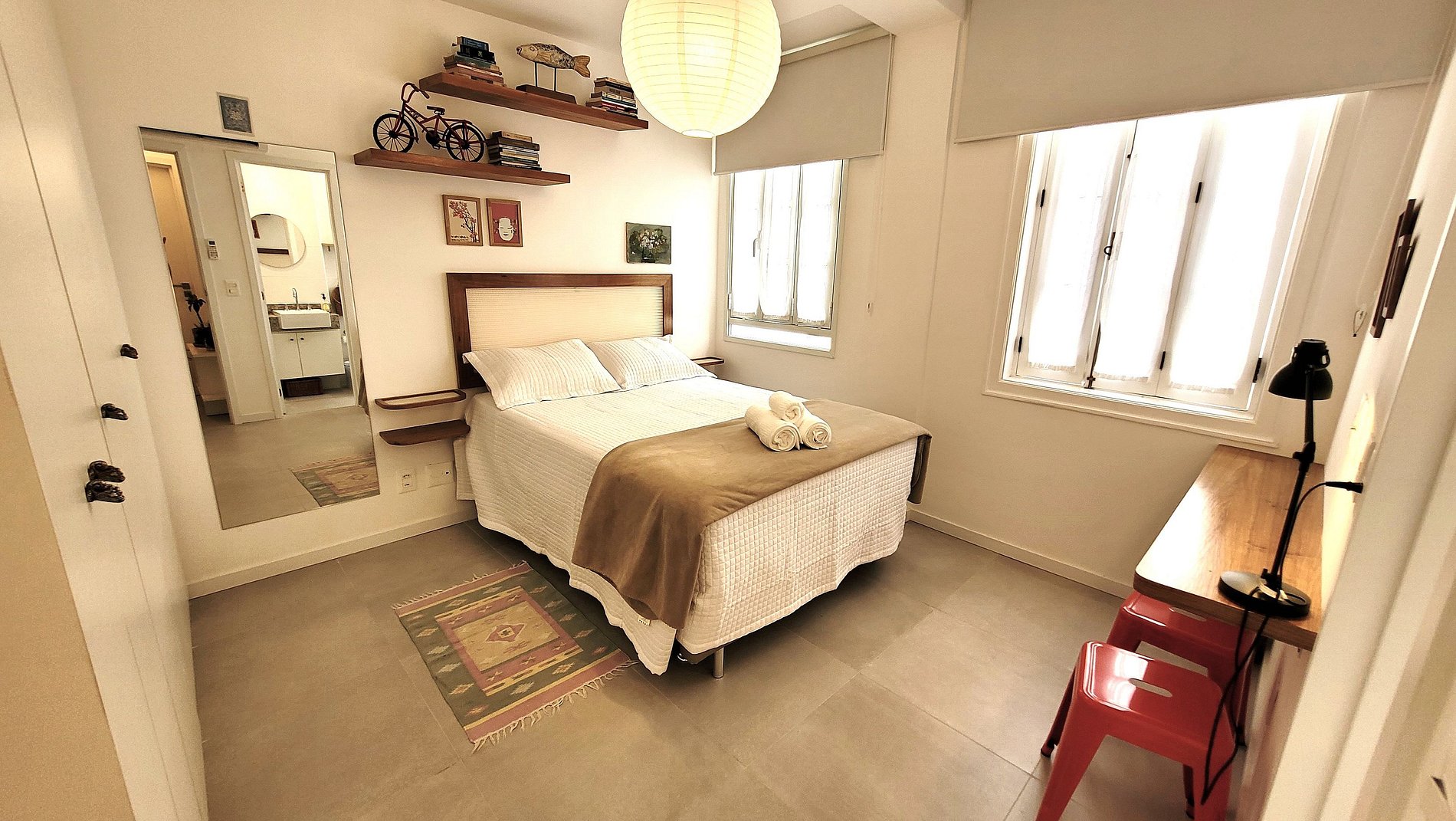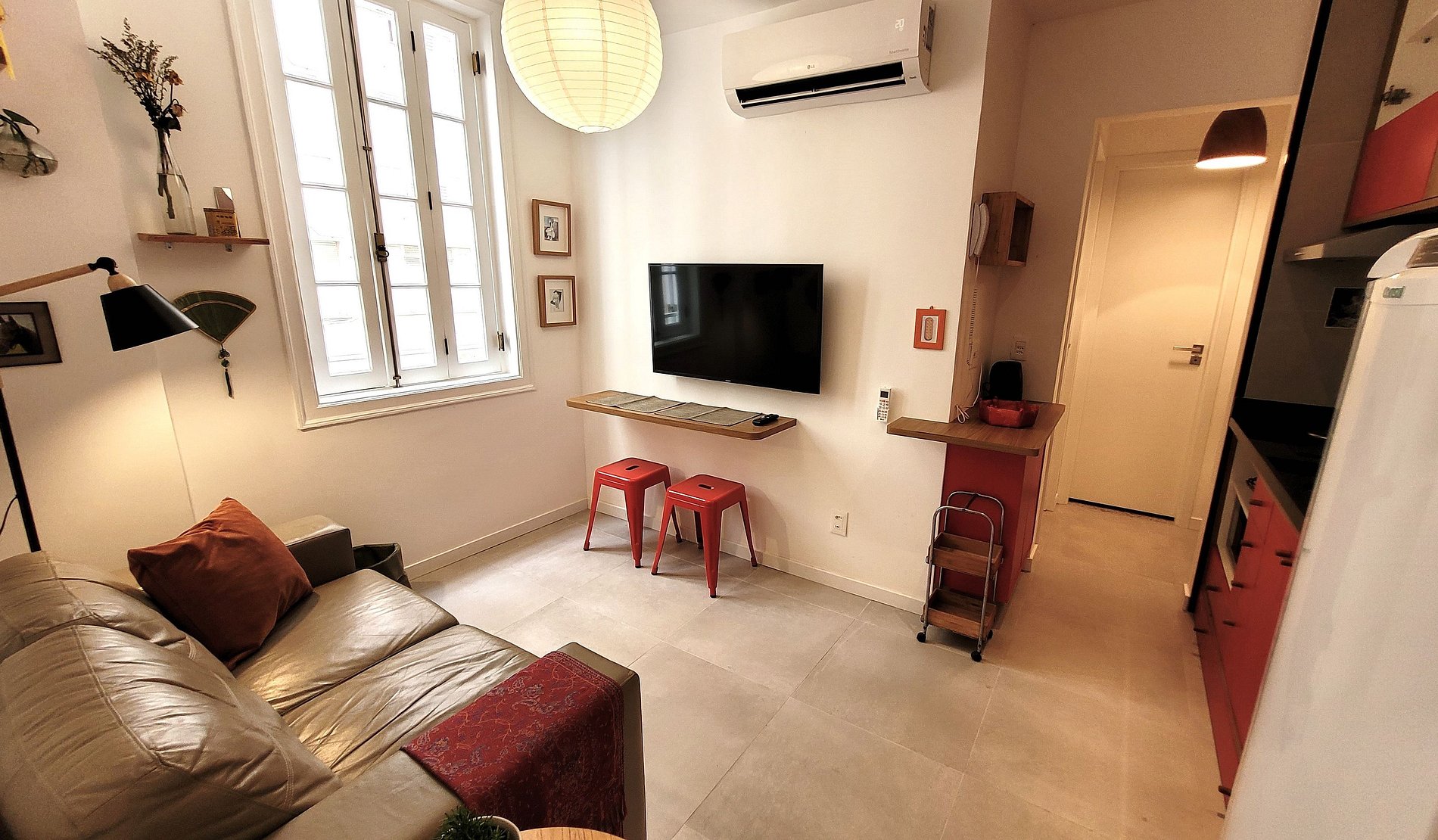 Apartamento nuevo y moderno en un edificio histórico retrofitado, ubicado en Rua Paissandu, cerca de la playa de Flamengo. Disponemos de 2 suites con camas dobles y aire acondicionado. El salón cuenta con sofá, aire acondicionado, smart TV y una pequeña barra de comedor. Cocina americana, con anafe, refrigerador, filtro de agua y microondas. Internet de alta velocidad con WIFI. En la terraza del edificio tenemos una bonita zona de ocio, con jardín y un pequeño gimnasio. Conserjería 24 horas.