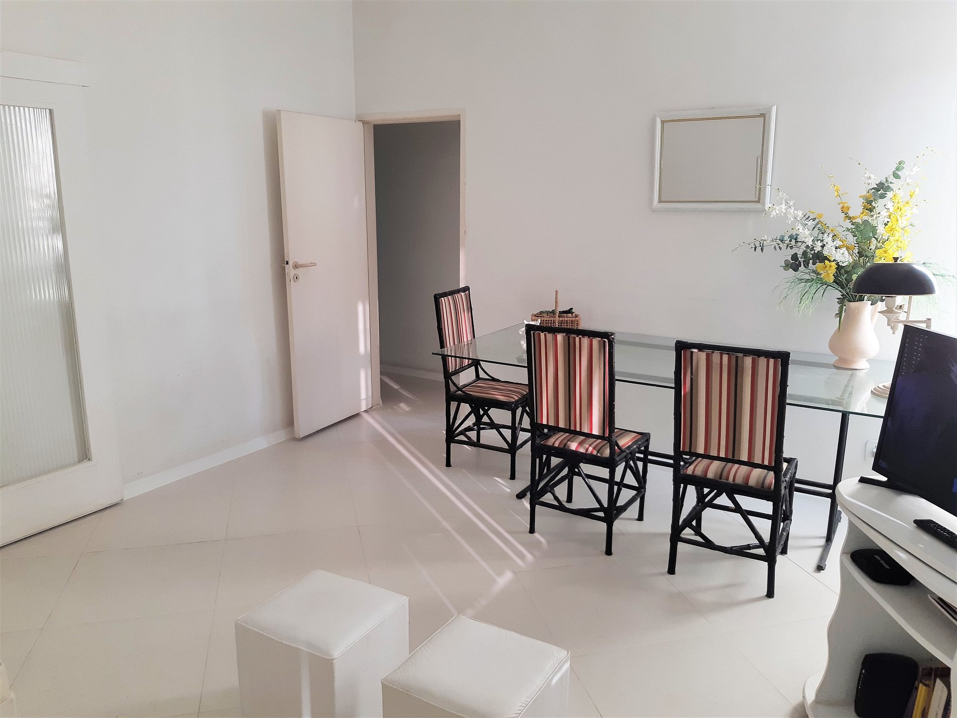 Apartment located in Copacabana, the most charming and desirable neighborhood of Rio de Janeiro, in front of the beach, at the beautiful Avenida Atlântica (Posto 6), close to Ipanema. The apartment has 140 m2, with a large living / dining room, 3 bedrooms, 2 bathrooms and complete dependencies (bathroom and maid's room). Equipped with: Wireless Internet, LCD TV, 3 air conditioners (living room and 2 bedrooms), ceiling fan (in the third bedroom), microwave, washing machine. Concierge 24 hours.