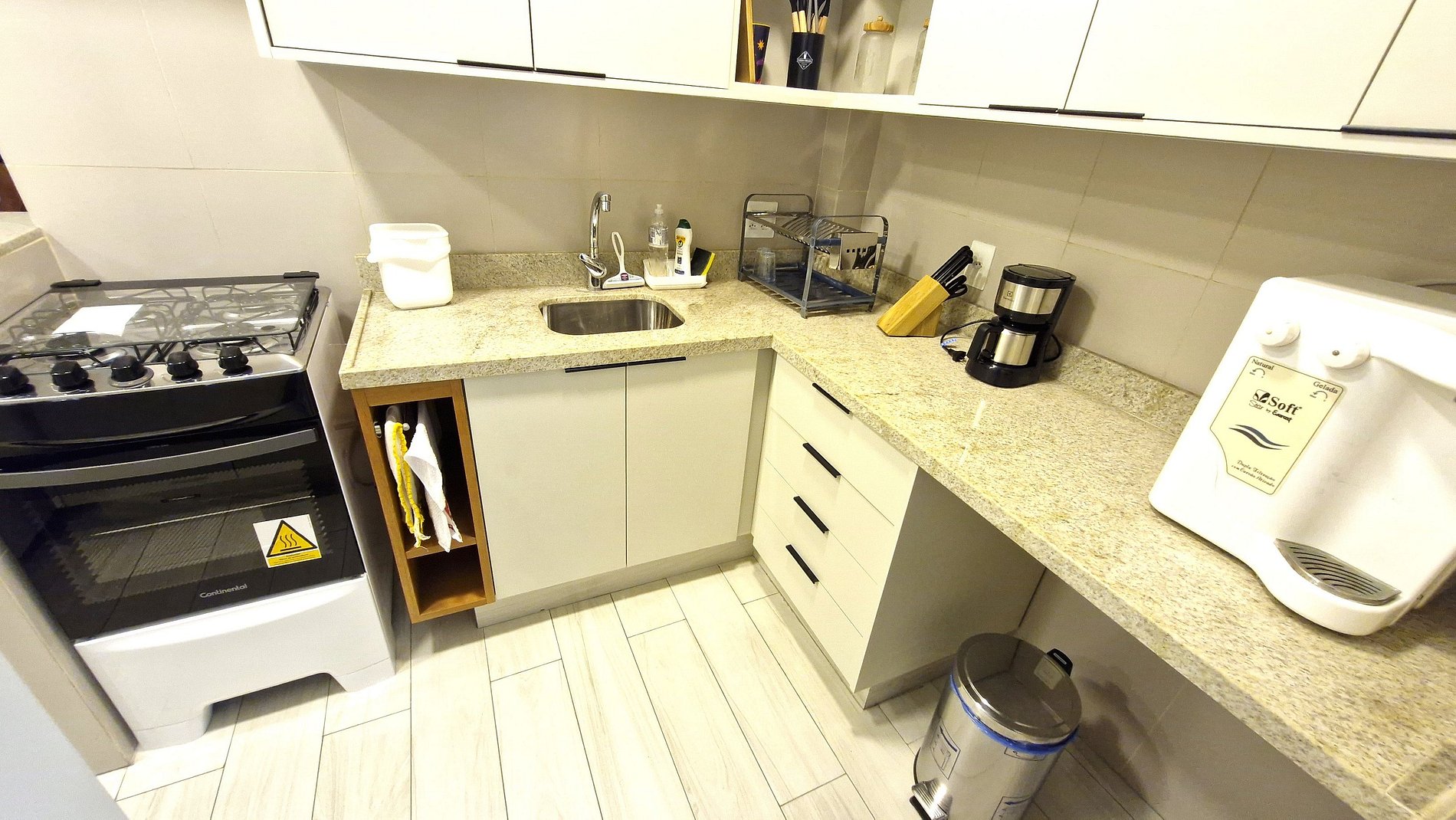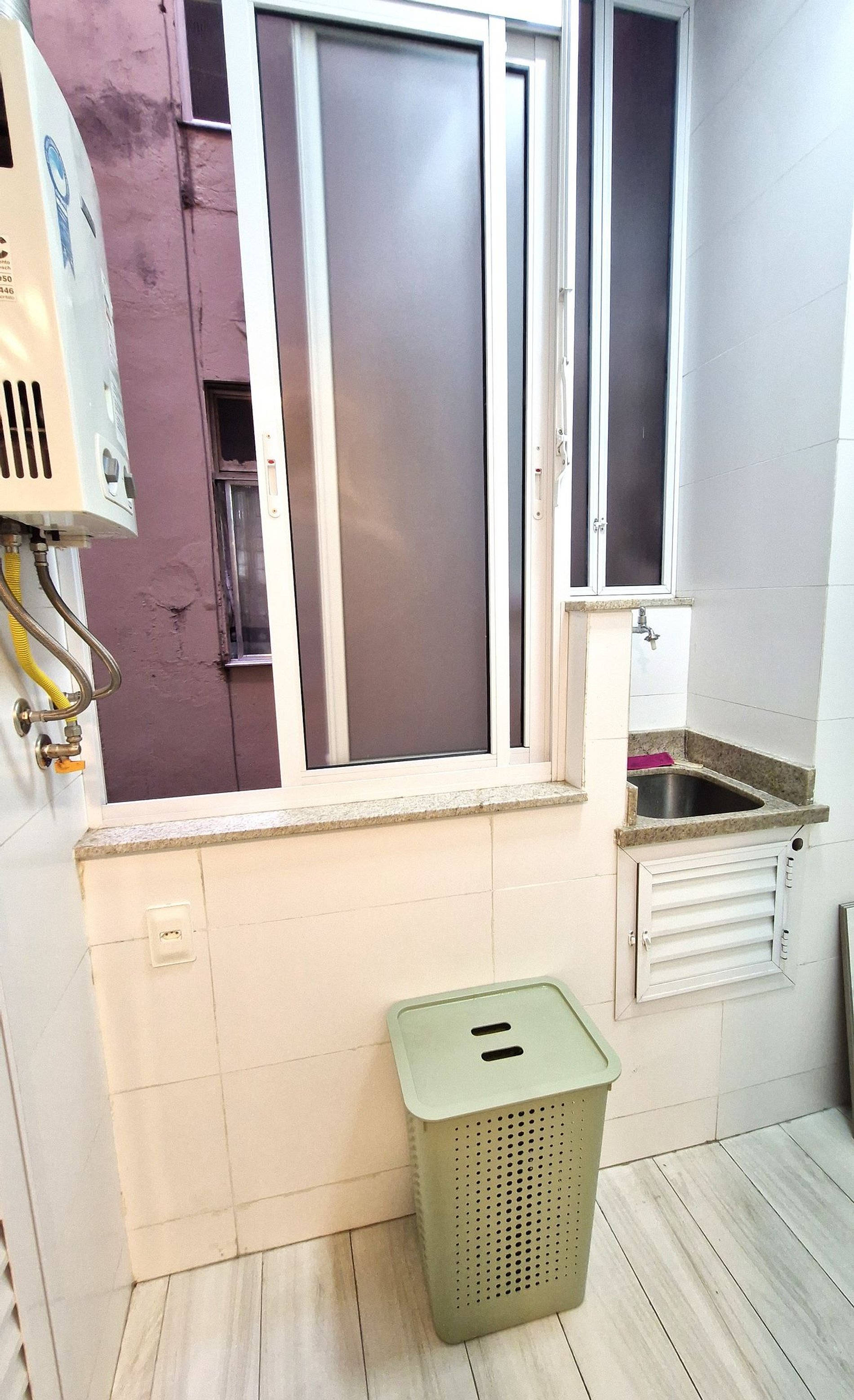 Beautiful one-bedroom apartment, 3 blocks from Copacabana beach. Bedroom with double bed, built-in closet and air conditioning. Living room with double sofa bed, dining table and small work desk. Full bathroom, recently renovated. American-style kitchen, super complete and well-equipped. Service area with a small bathroom. Smart TV, with high-speed internet and Wi-Fi. Doorman from 8 am to 8 pm