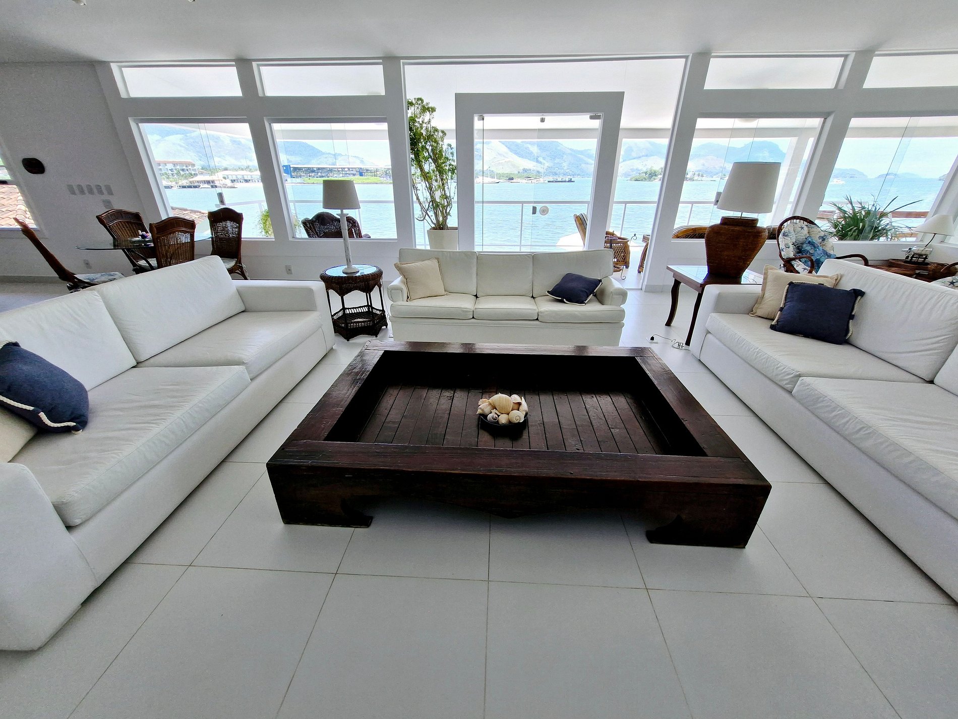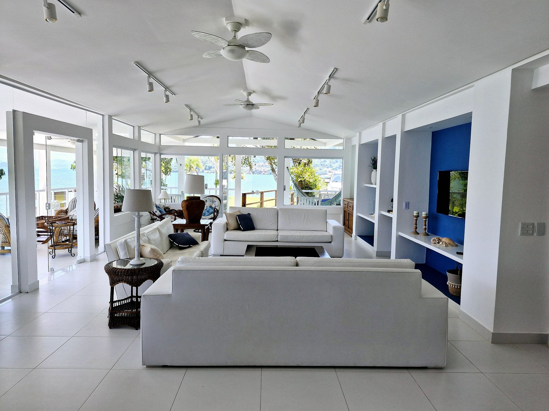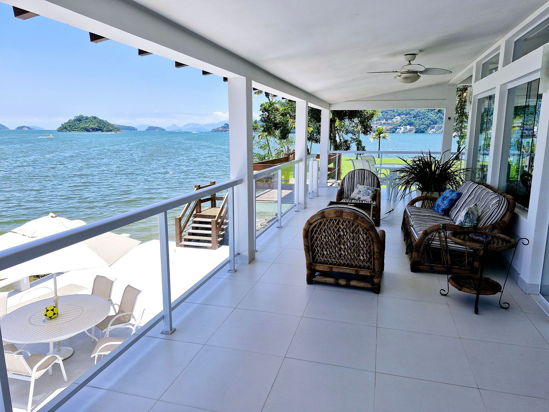 O paraíso está aqui, muito próximo de você. Linda casa, na beira do mar, com 5 quartos e 5 banheiros, uma excelente sala de estar e mesa de jantar para 10 pessoas. Área gourmet com churrasqueira e pizza a lenha. Piscina, sauna a vapor e um jardim enorme, arborizado e com total privacidade. Garagem para aproximadamente 4 carros. Internet de alta velocidade com WIFI. Praia e cais particular com capacidade para ancorar barcos de pequeno e médio porte. O loc Perfeito para seu fim de semana perfeito.