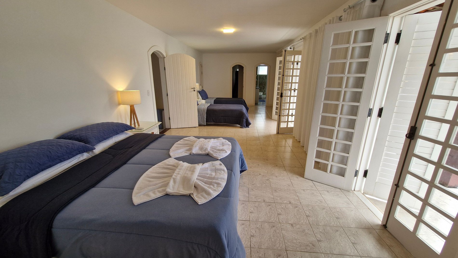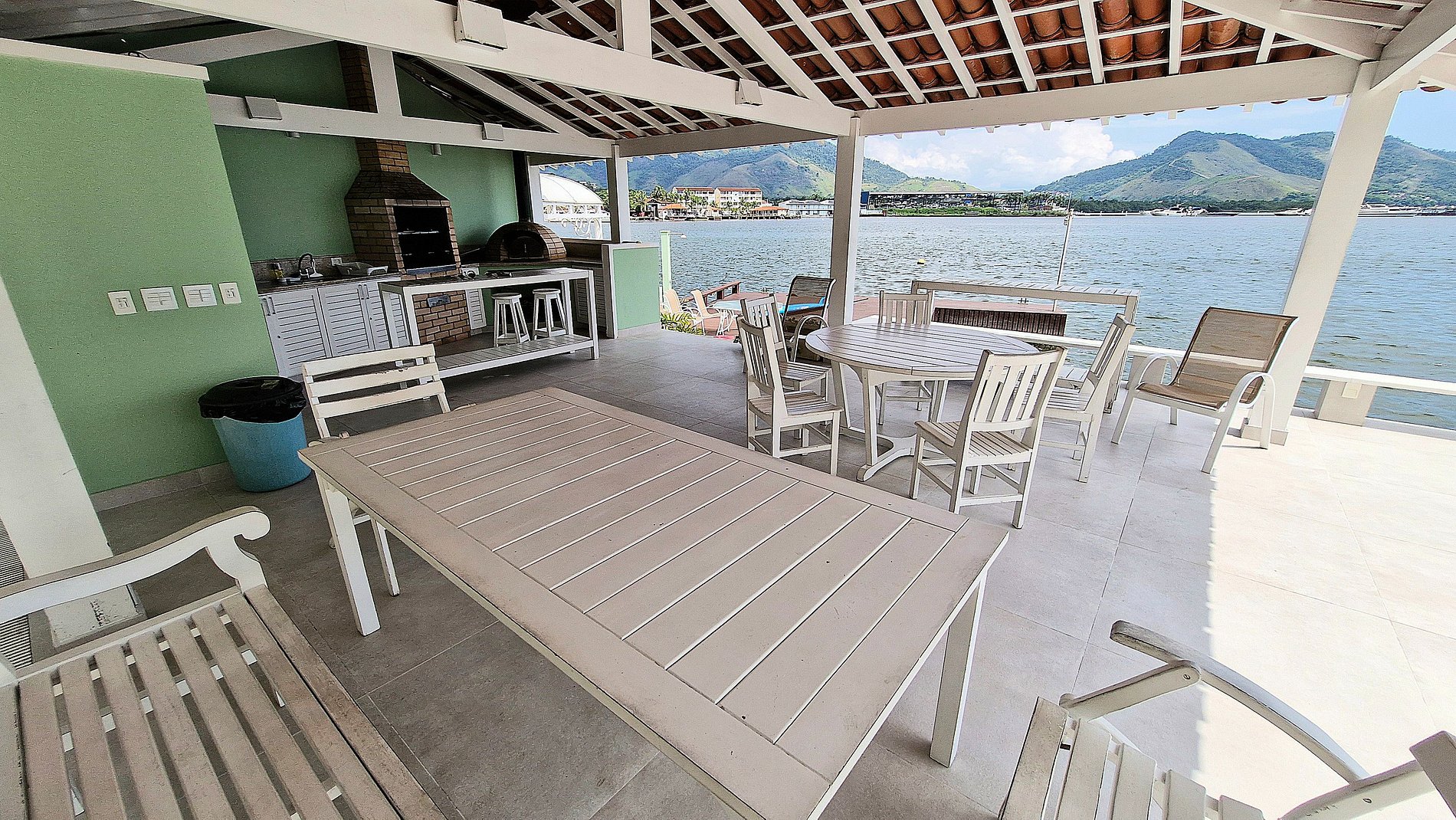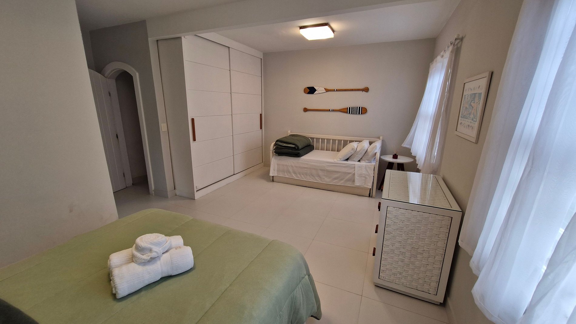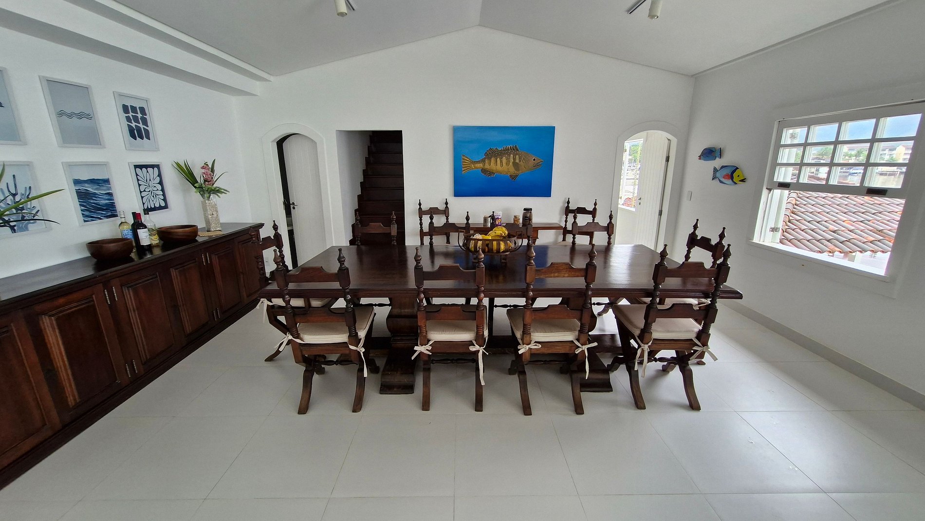 O paraíso está aqui, muito próximo de você. Linda casa, na beira do mar, com 5 quartos e 5 banheiros, uma excelente sala de estar e mesa de jantar para 10 pessoas. Área gourmet com churrasqueira e pizza a lenha. Piscina, sauna a vapor e um jardim enorme, arborizado e com total privacidade. Garagem para aproximadamente 4 carros. Internet de alta velocidade com WIFI. Praia e cais particular com capacidade para ancorar barcos de pequeno e médio porte. O loc Perfeito para seu fim de semana perfeito.