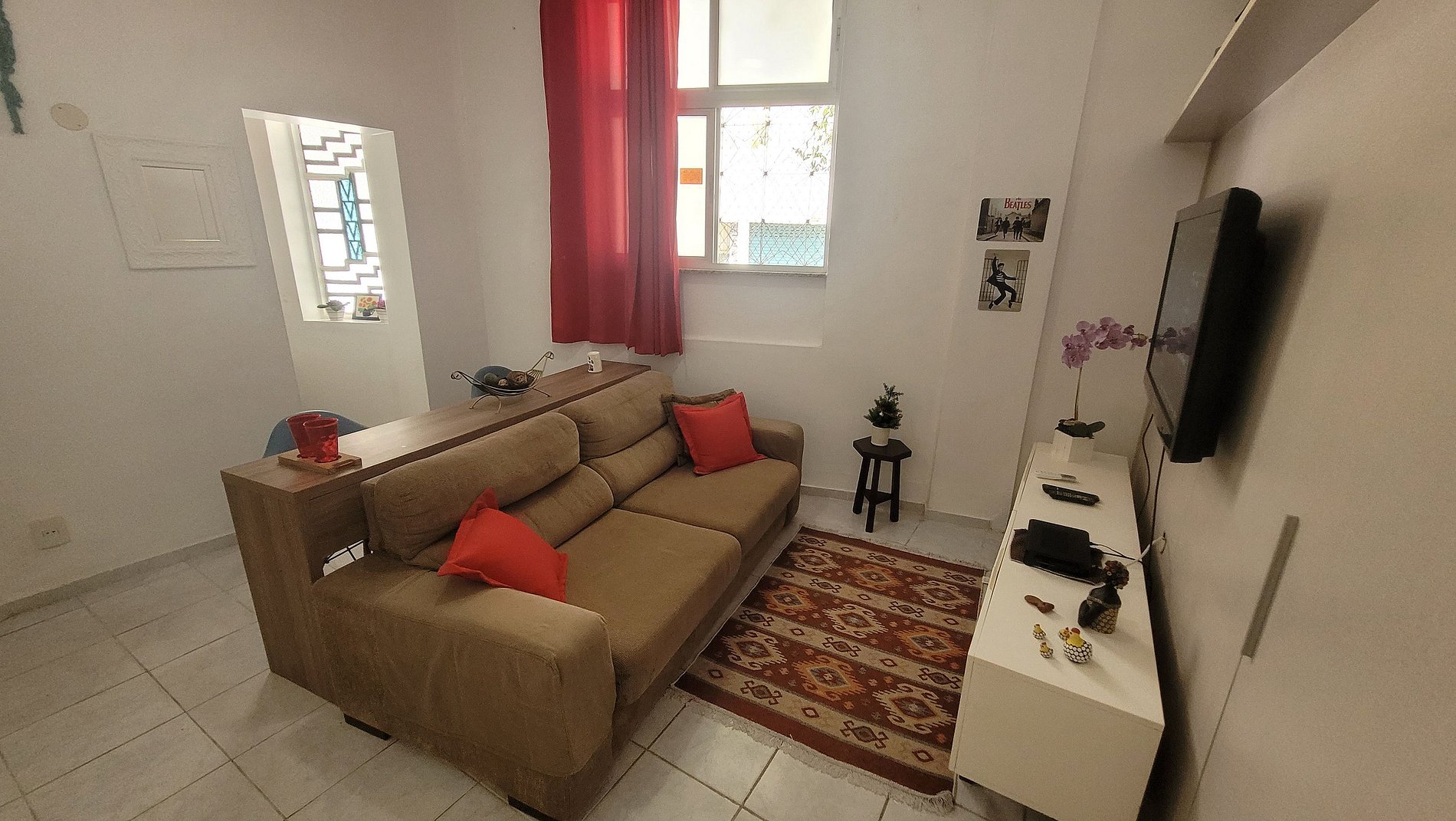 Cozy apartment just two blocks from Copacabana beach, close to post 06. Bedroom with double bed, built-in wardrobes and air conditioning. Living room with sofa, flat screen TV with cable channels, dining area and air conditioning. Full bathroom and nice shower. Full and well equipped kitchen. Service area with tank. High speed internet with wifi.
