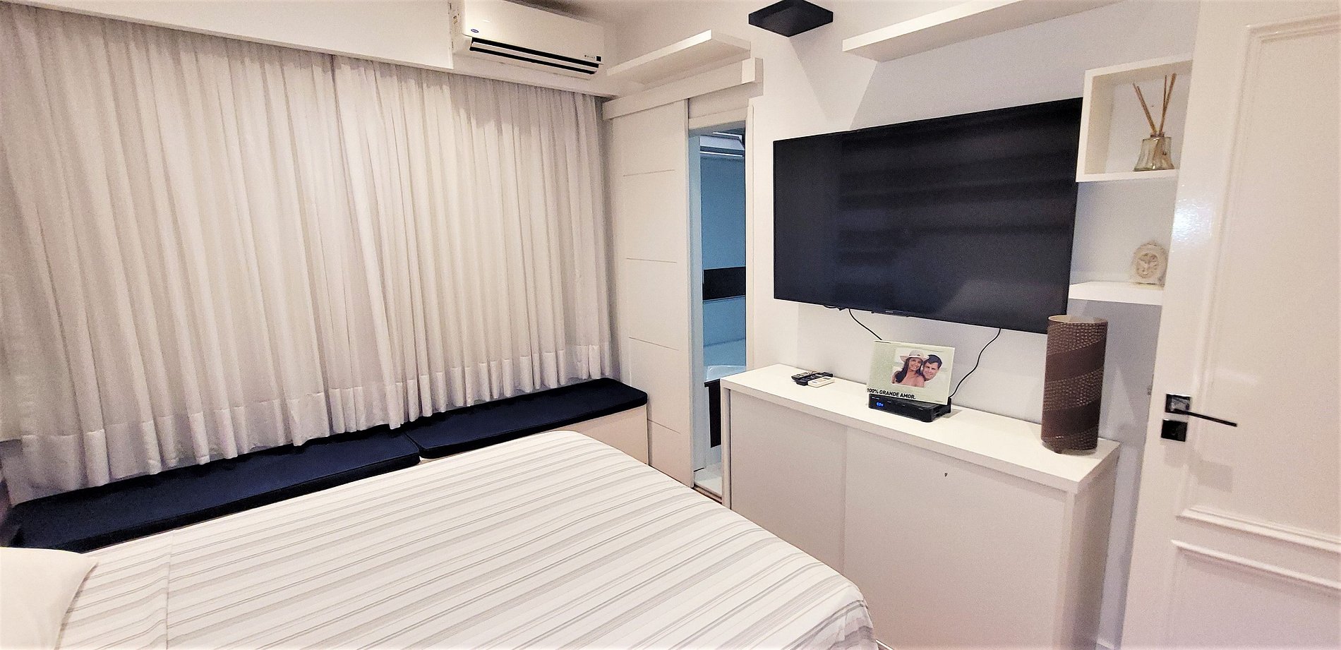 Modern, quiet and airy apartment, just a few steps from the beaches of Ipanena or Copacabana. Three bedrooms, one suite with a queen size bed, the second bedroom with a double bed and the third with 1 single bed. All bedrooms and living room with air conditioning. Large living room with smart TV and high-speed internet. Dining table for 6 people. Full kitchen with washing machine. 24 hour concierge. General Osório subway station just 1 block away.