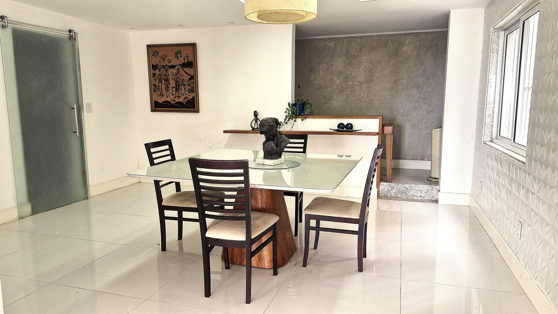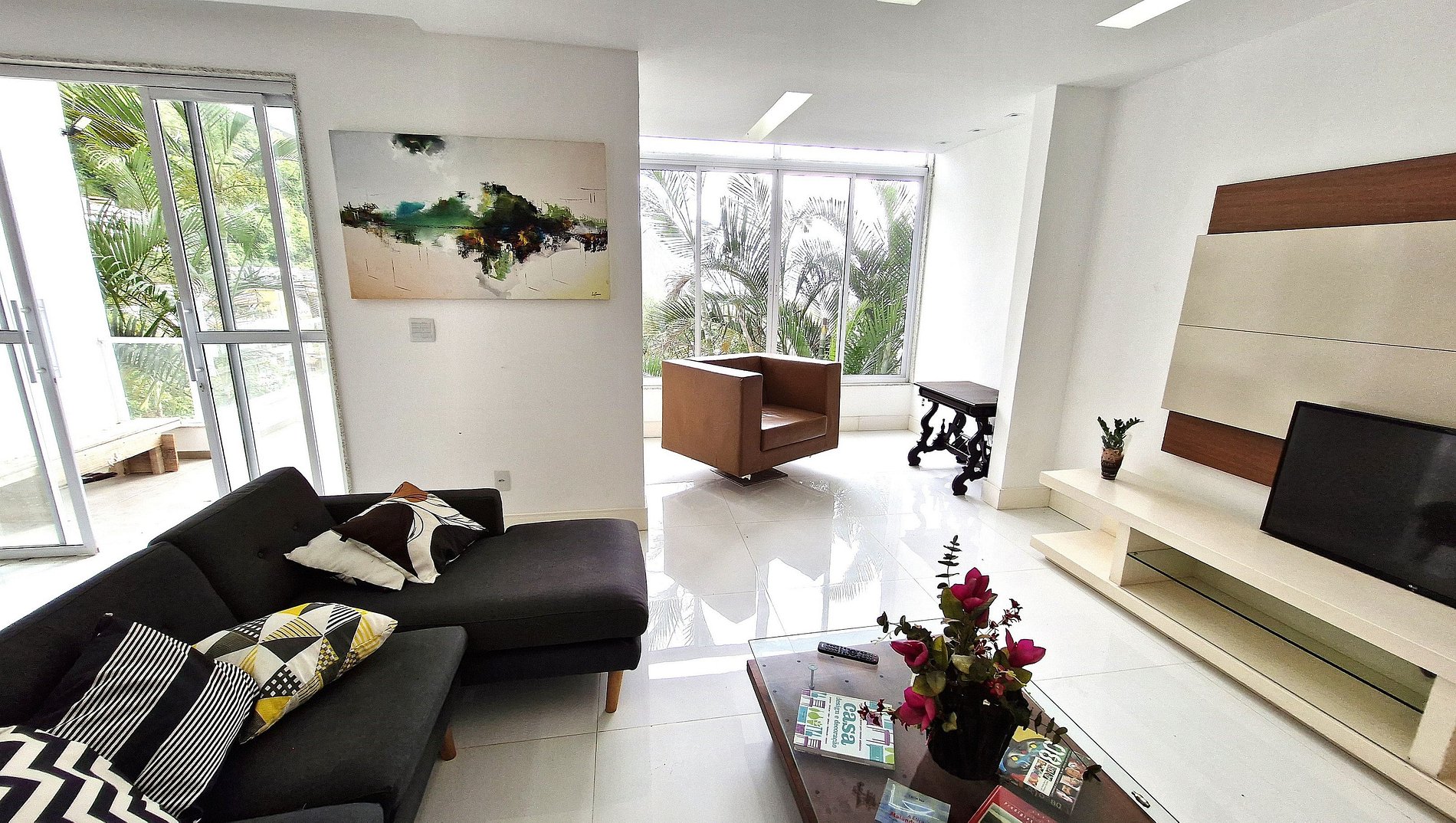 Living room with sofas, armchairs, air conditioning and TV. Dining room with sink and bar. Internal elevator for handicapped people or people with mobility difficulties. We have 4 suites, all with conditioned. There are 3 suites with double beds + a suite with double bed and single bed. We comfortably accommodated 9 people. Kitchen complete and well equipped. High speed internet with wifi.