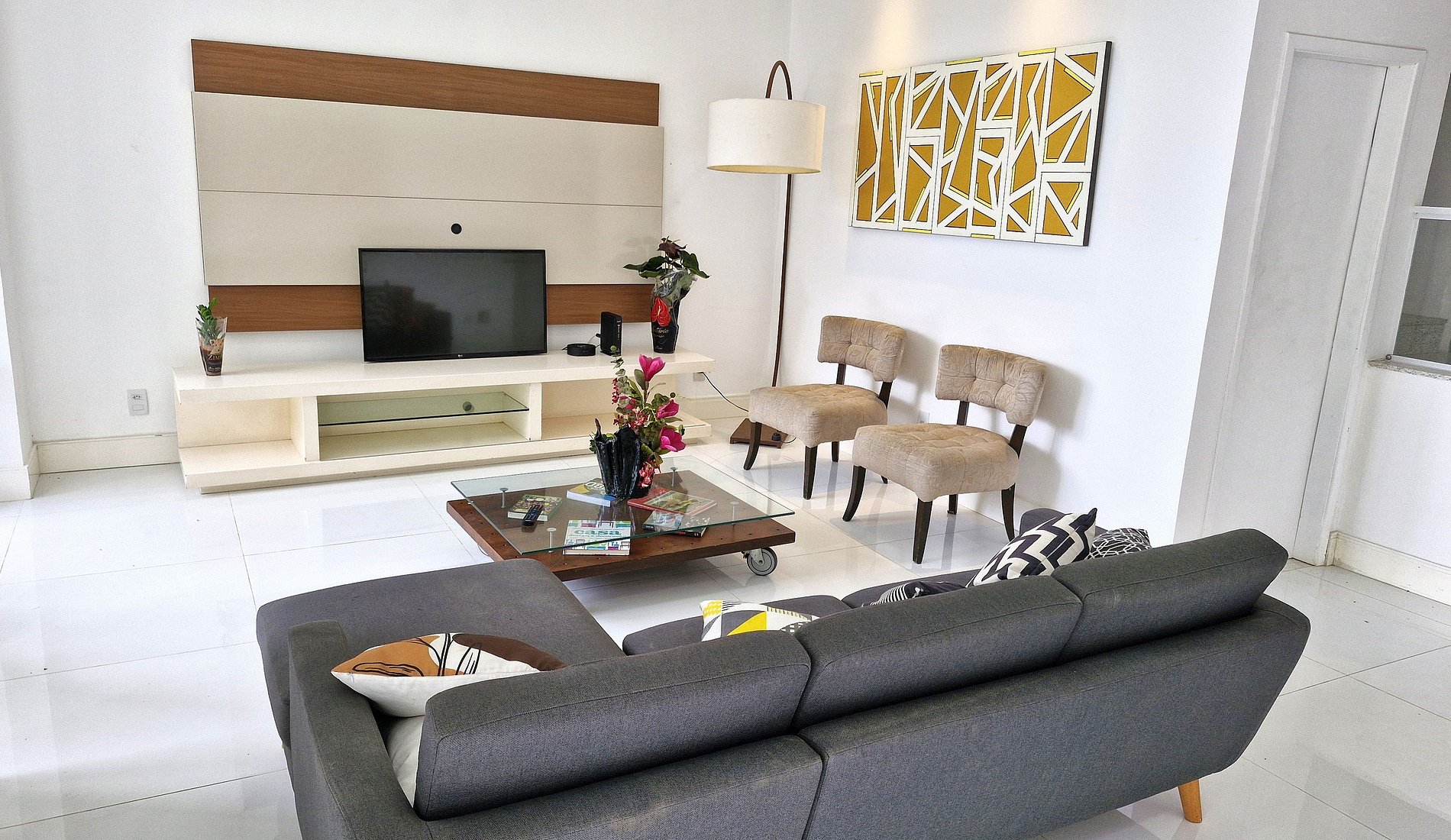 Living room with sofas, armchairs, air conditioning and TV. Dining room with sink and bar. Internal elevator for handicapped people or people with mobility difficulties. We have 4 suites, all with conditioned. There are 3 suites with double beds + a suite with double bed and single bed. We comfortably accommodated 9 people. Kitchen complete and well equipped. High speed internet with wifi.