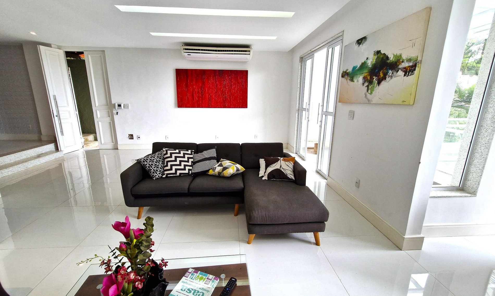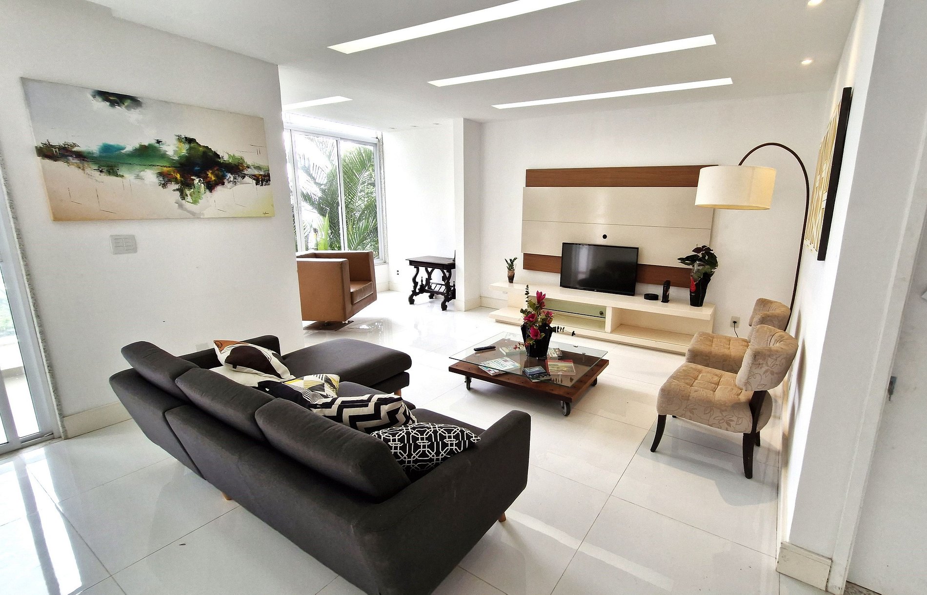 Living room with sofas, armchairs, air conditioning and TV. Dining room with sink and bar. Internal elevator for handicapped people or people with mobility difficulties. We have 4 suites, all with conditioned. There are 3 suites with double beds + a suite with double bed and single bed. We comfortably accommodated 9 people. Kitchen complete and well equipped. High speed internet with wifi.