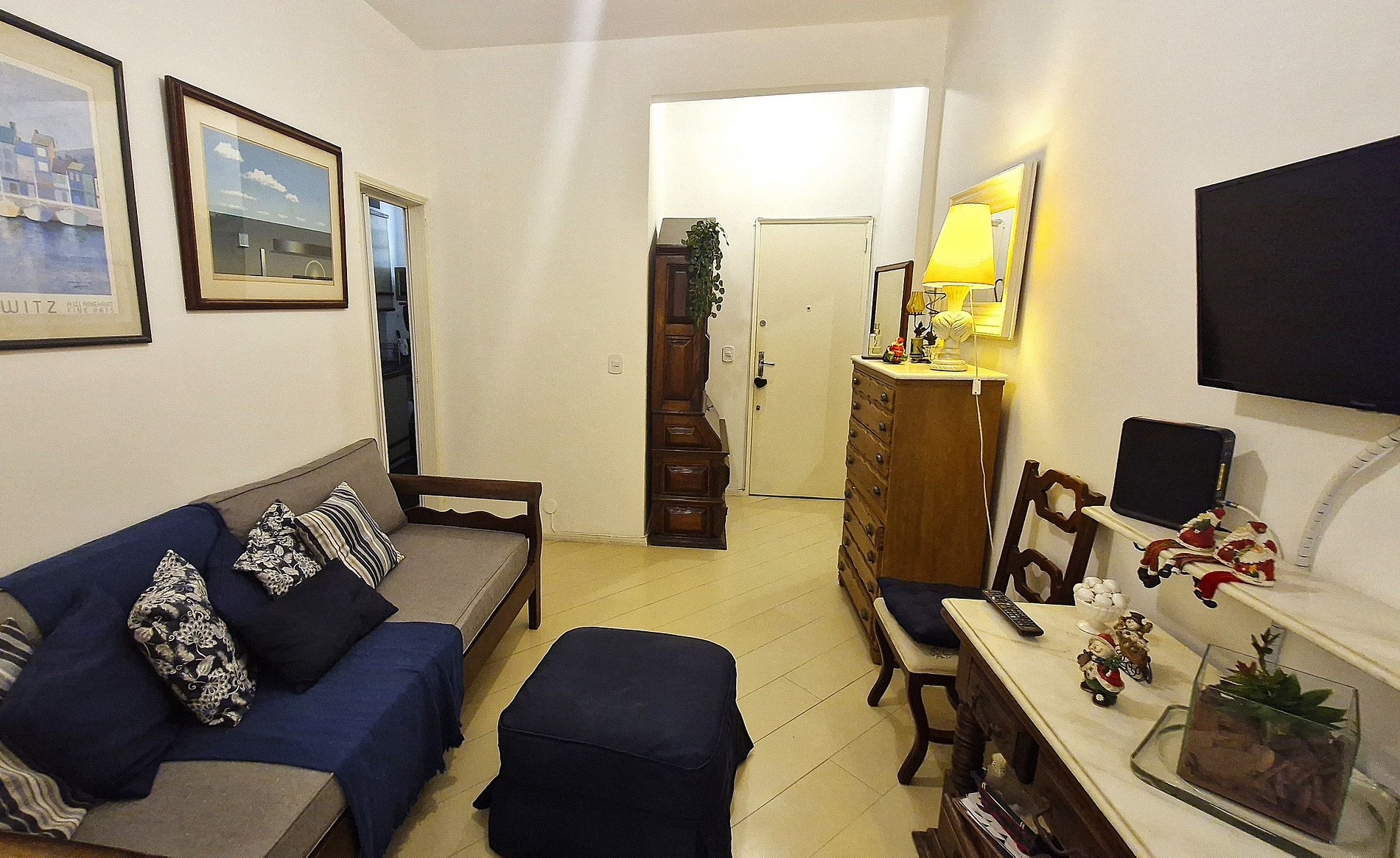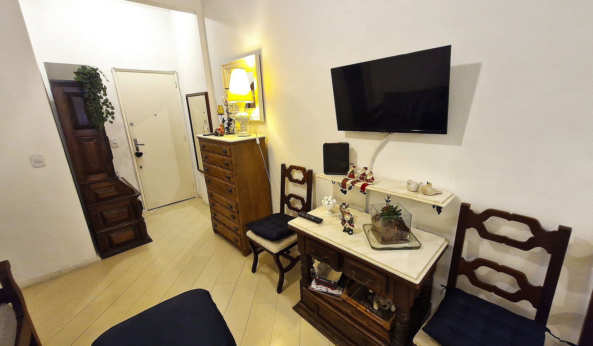 Charming and comfortable apartment in a residential building, just 3 blocks from Copacabana beach. Living room with sofa bed, flat screen TV and dining table. Bedroom with double bed, closet, air conditioning and dresser. We have a small second bedroom with single bed. Large bathroom with gas-heated shower and glass shower enclosure. Very well-equipped kitchen with washing machine in the utility area. High-speed internet with Wi-Fi. 24-hour doorman