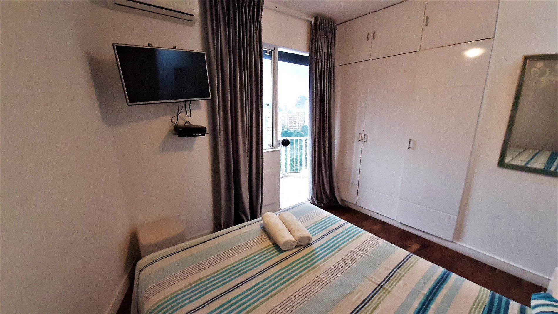 Great apartment in the gastronomic center of Leblon. It has 3 bedrooms and 2 full bathrooms, one of which is a suite. Living room with 2 sofas that comfortably accommodate up to 6 people. Dining table and winter garden with a beautiful view. Well-equipped kitchen with washing machine in the service area. Split air conditioning in the bedrooms and living room. Cable TV in the suite and living room. High-speed Internet with WIFI.