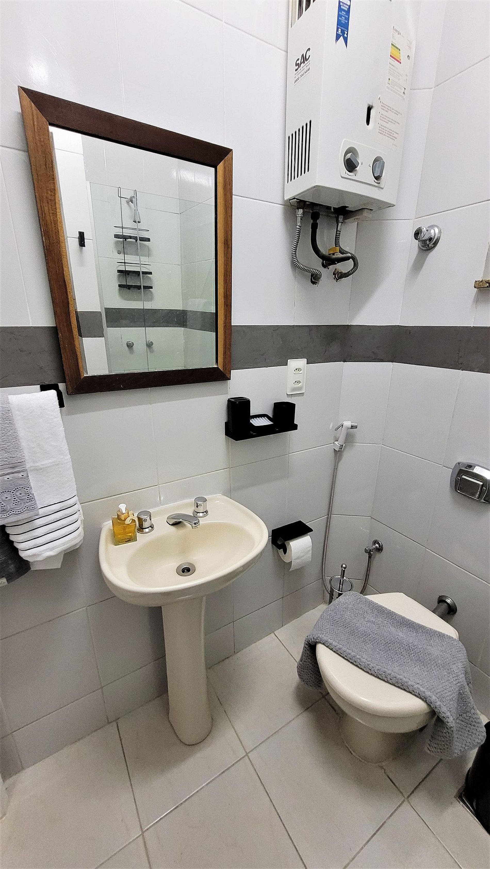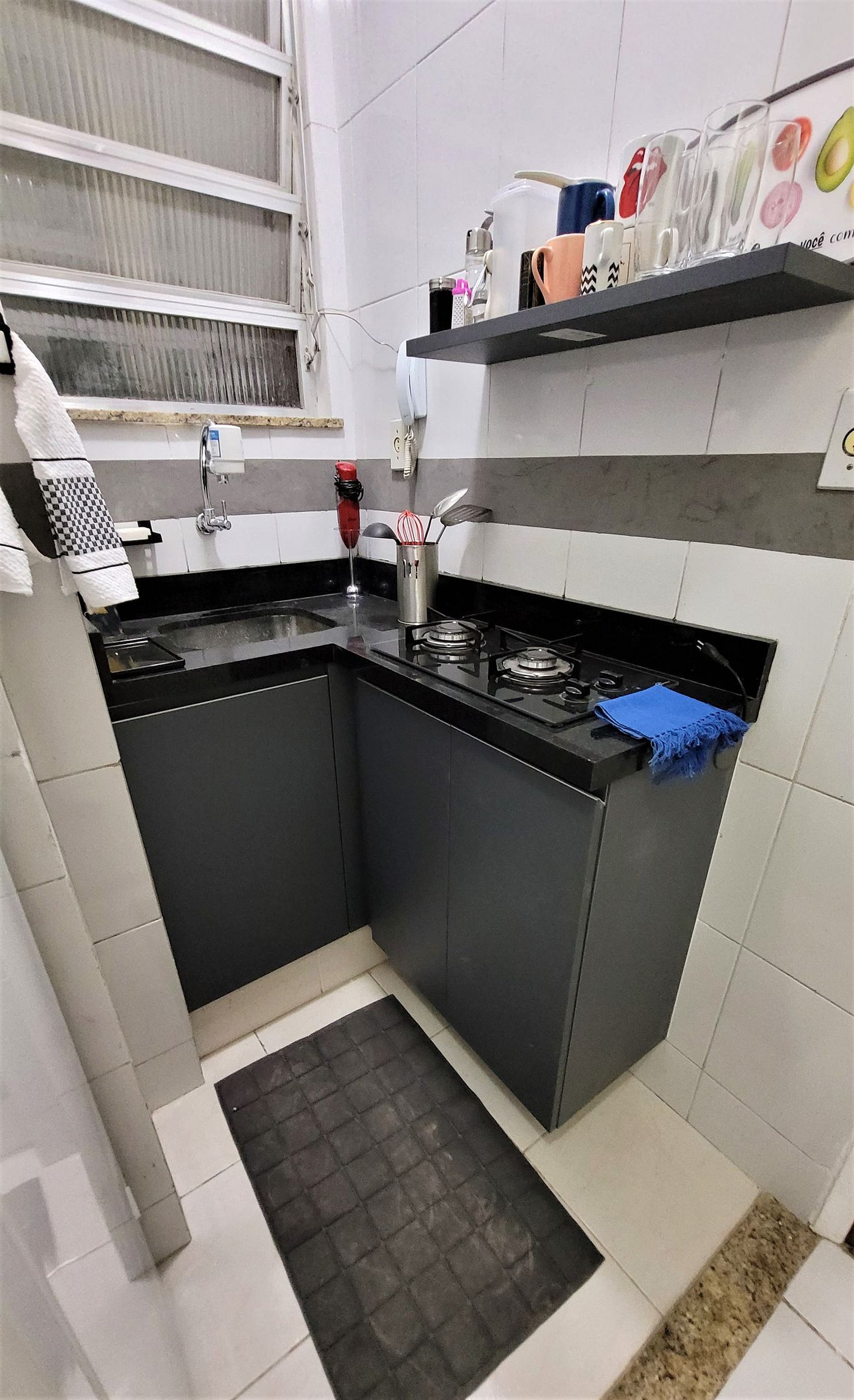 Newly renovated apartment in the heart of Copacabana. In the bedroom we have a double bed, wardrobe, air conditioning and cable TV. In the living room we have a sofa bed, cable TV and a dining table. Full bathroom and kitchenette, but well equipped. High Speed Internet with WIFI. 24 hour concierge.