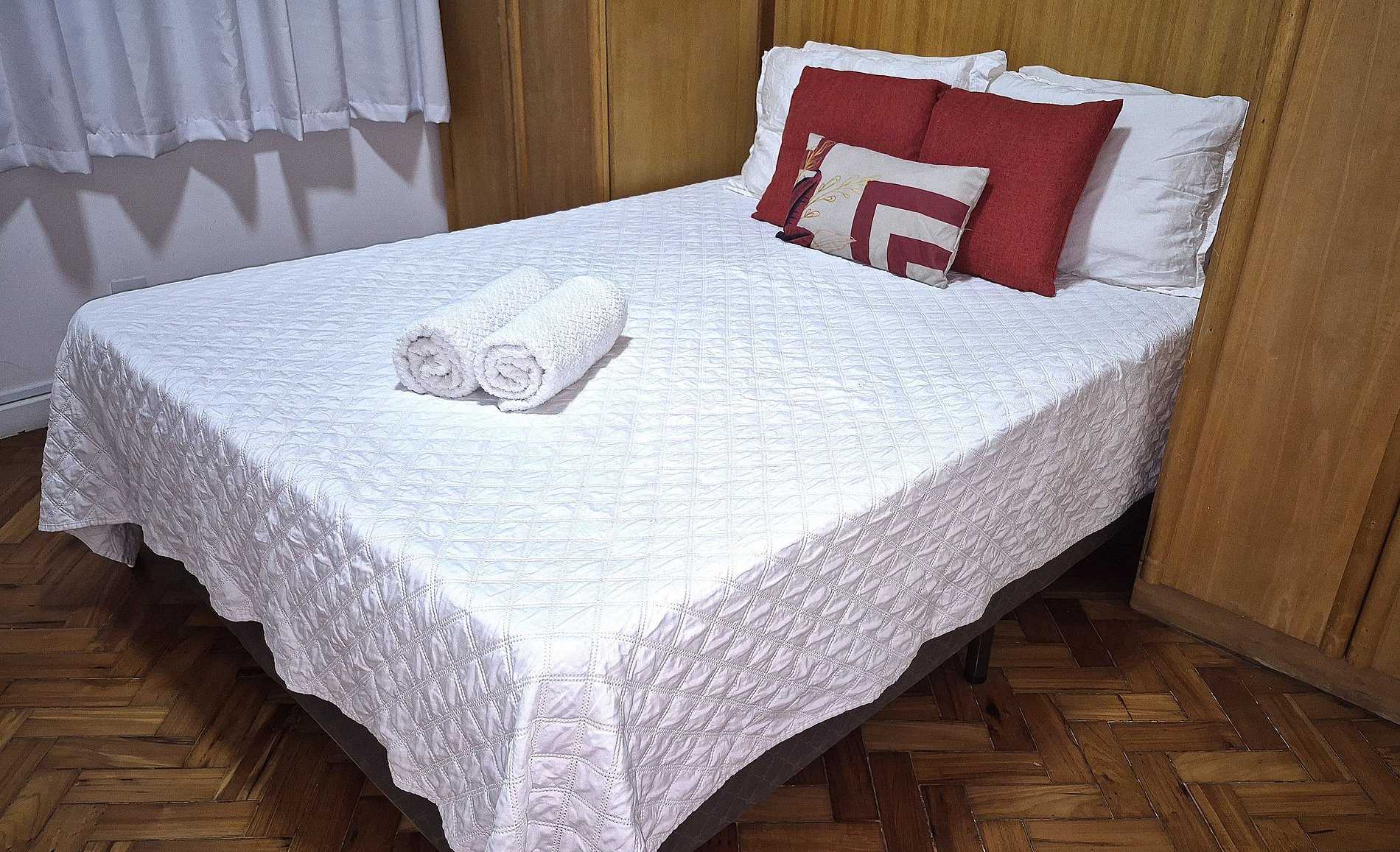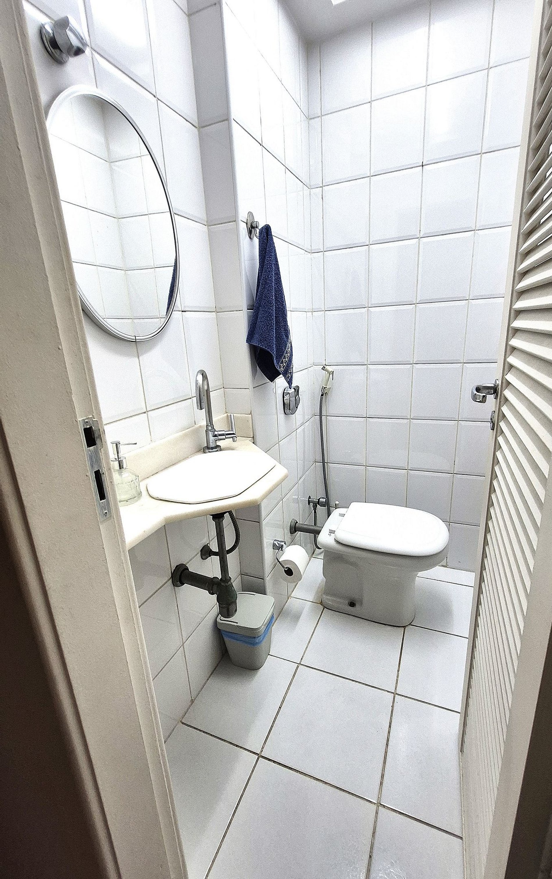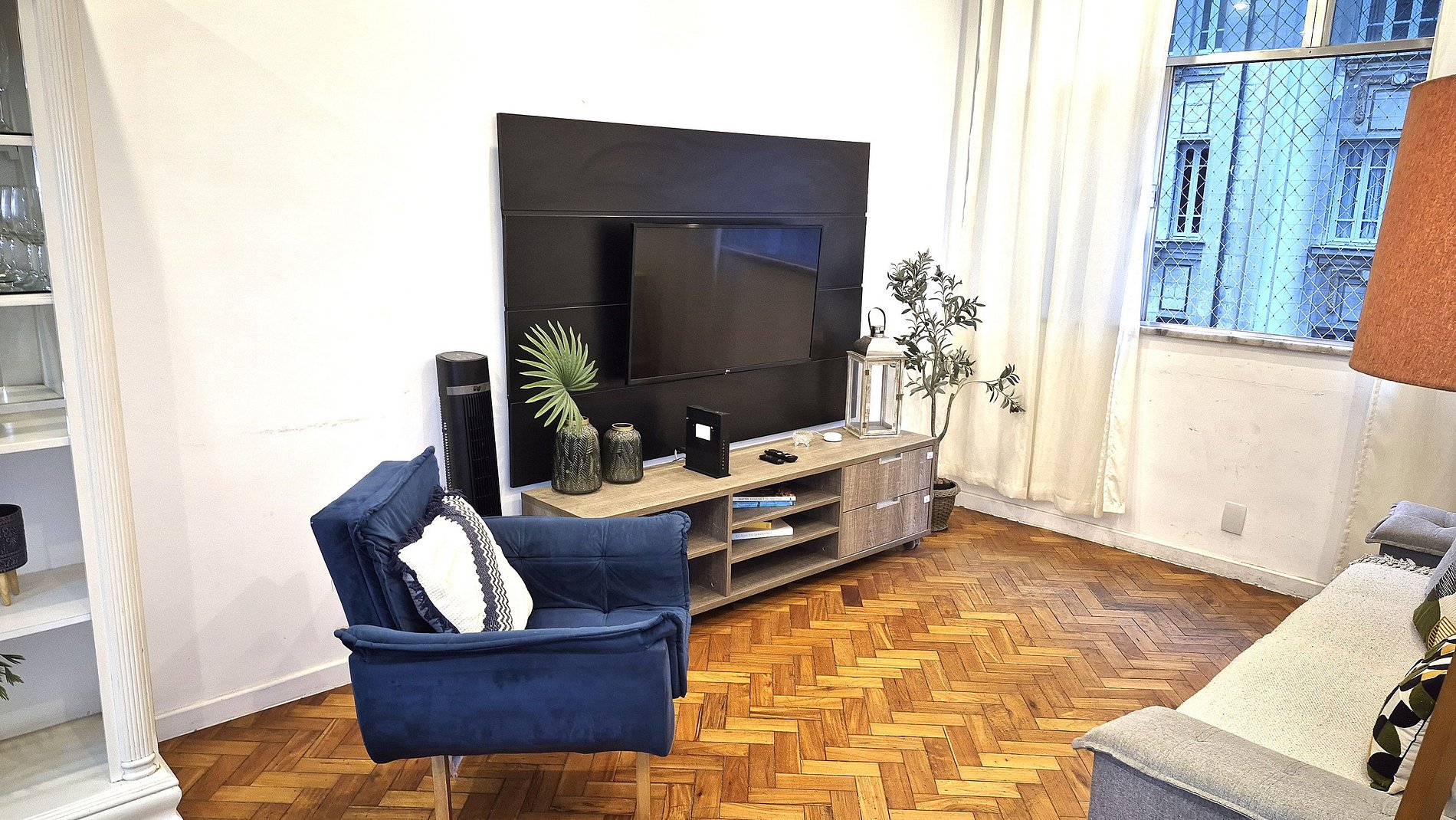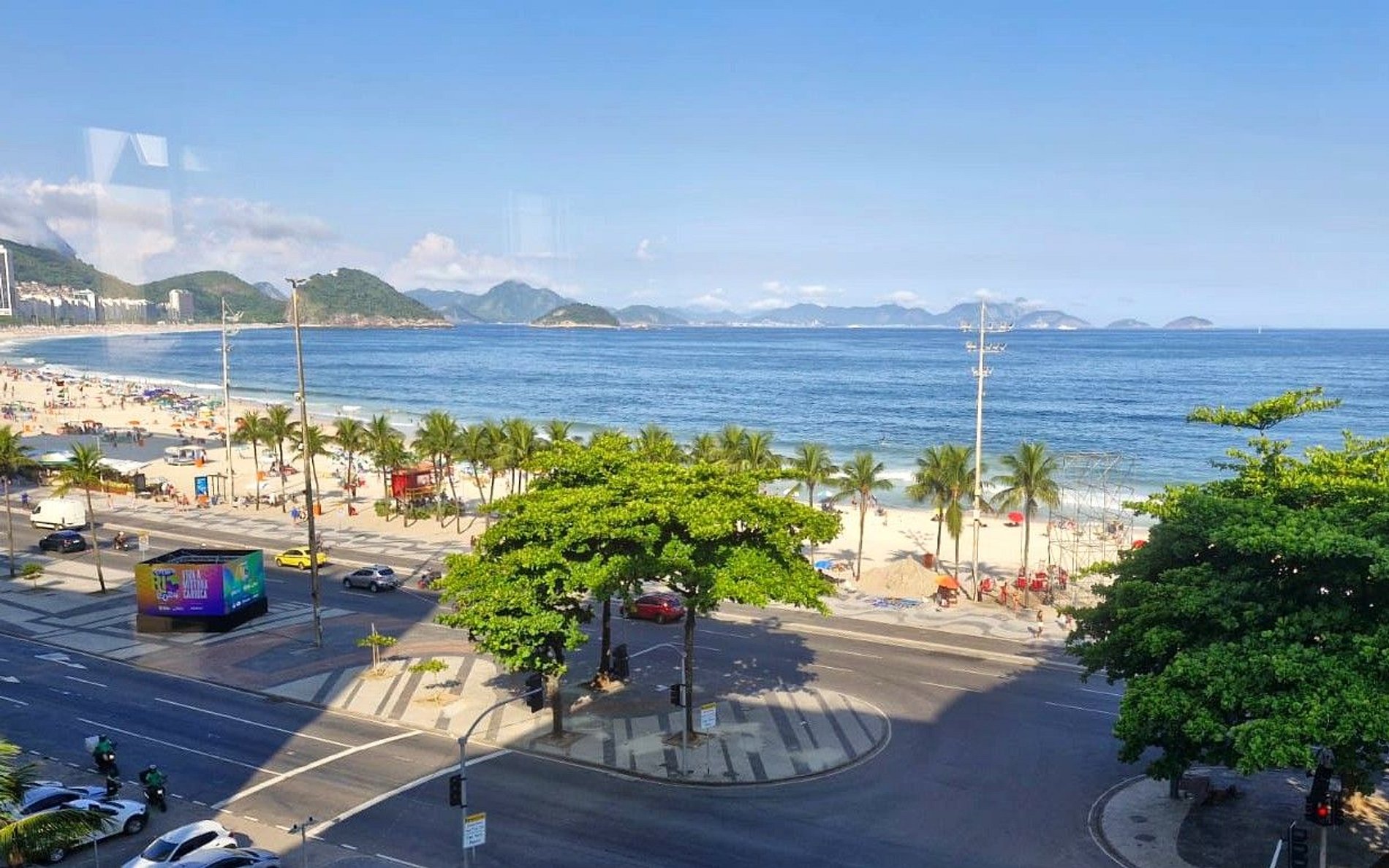 Comfort and privacy for groups of up to 6 people. Copacabana beach is just a few steps from the building. We have 3 bedrooms, 2 full bathrooms + 1 toilet. The suite has a double bed, closet and air conditioning. The second bedroom has a double bed, closet and air conditioning. The third bedroom has 2 single beds + a work or study table and air conditioning. Living room with flat screen TV, sofas and armchair. Dining room with table that comfortably seats 6 people.