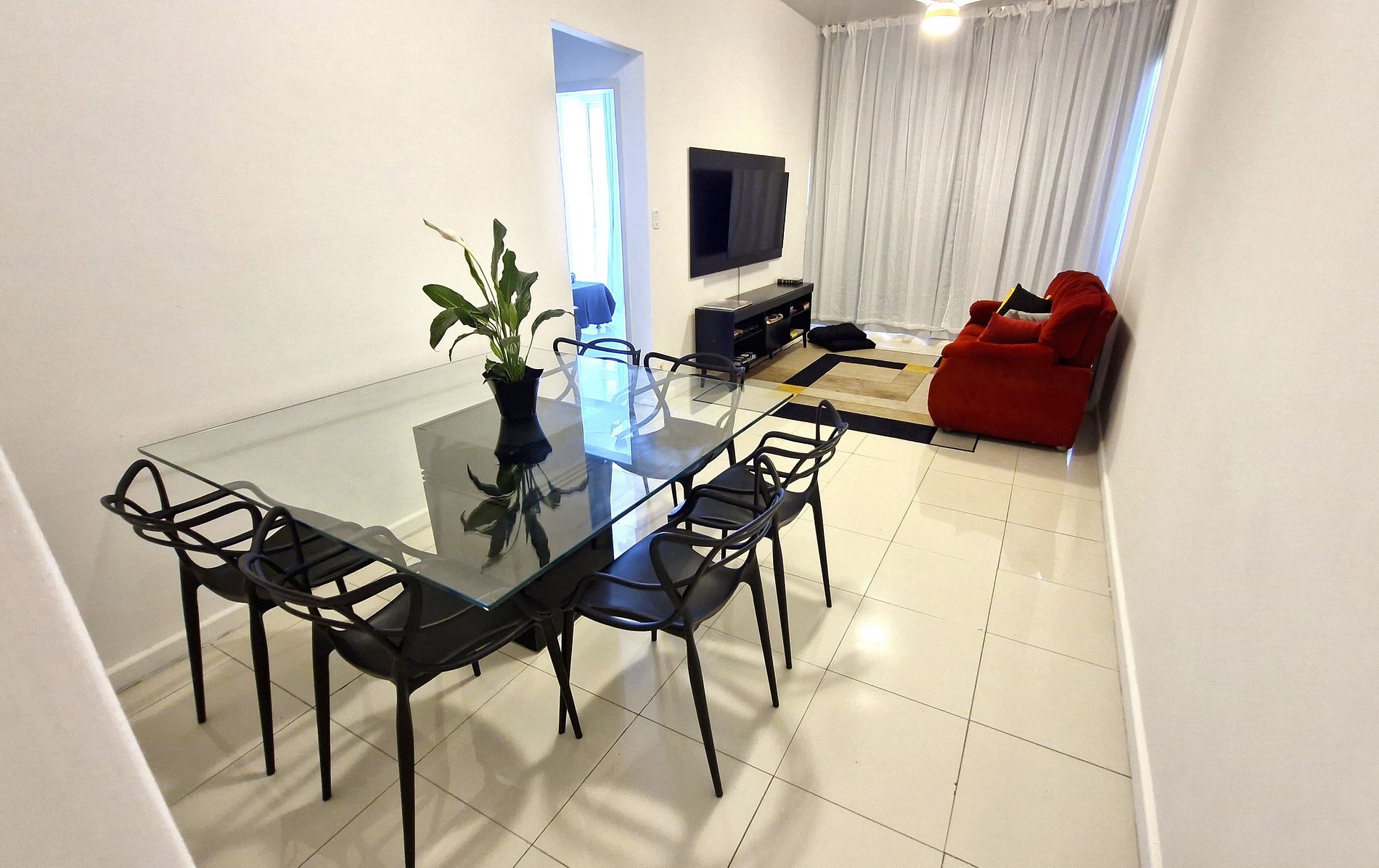 Cómodo apartamento con capacidad para 4 personas. Salón con TV, sofá y mesa de comedor con 6 sillas. Dos dormitorios, el primero compuesto por cama de matrimonio + cama individual, smart TV, armario empotrado y aire acondicionado. Segundo dormitorio con cama individual y closet. Baño completo y reformado, con calefacción de gas. Cocina amplia y bien equipada, con barra desayunadora. Tambien hay un baño chico en el área de servicio. Internet de alta velocidad con WIFI. conserjería las 24 horas