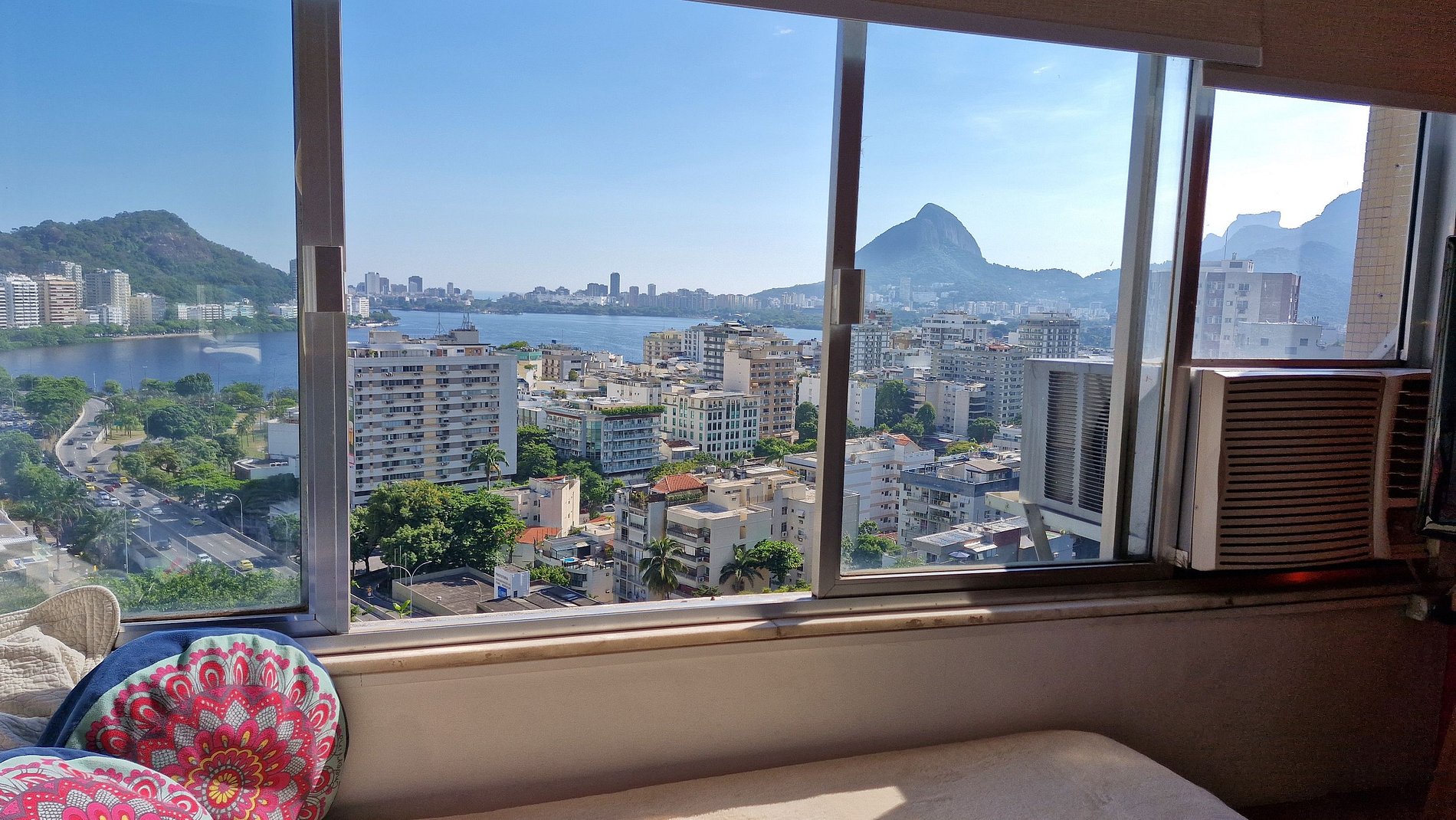 Apartamento en calle tranquila, en Jardim Botanico, con impresionante vista a la Laguna. Salón muy espacioso y confortable, con sofá, mesa de comedor y aire acondicionado, que interactúa con la cocina americana. Dormitorio con cama matrimonial, closet, TV y aire acondicionado. Baño completo con ducha. Cocina bien equipada con estufa, refrigerador y microondas. Disponemos de un segundo baño al lado de la cocina. Internet de alta velocidad con wifi. Conserjería 24 horas.