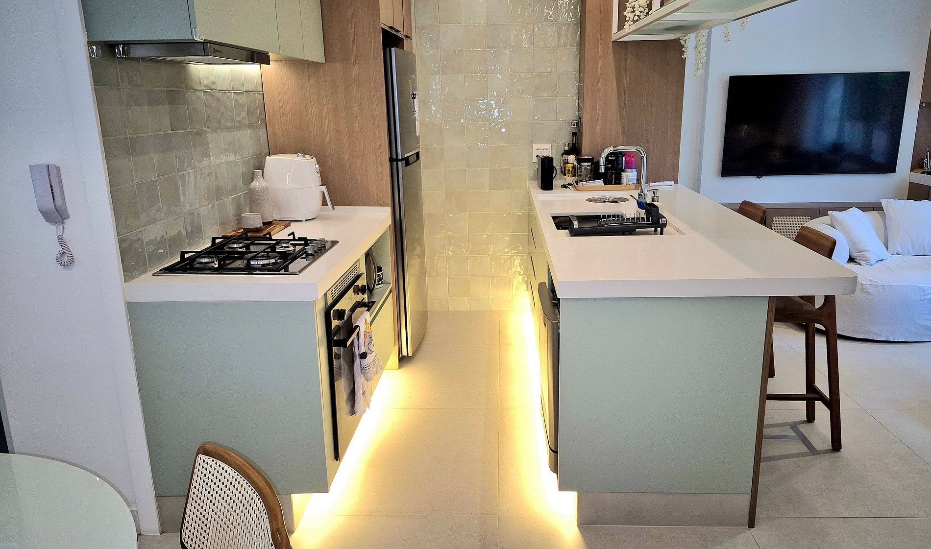 Hermoso y tranquilo apartamento con decoración moderna y acabados exquisitos, todos de la más alta calidad. Amplia suite principal, sala y comedor para 4 personas, además de un segundo baño completo. Cocina americana muy bien equipada. Zona de lavandería con lavadora. Aire acondicionado split en todas las habitaciones. Televisión por cable e internet de alta velocidad con wifi. Servicio de conserjería 24 horas.