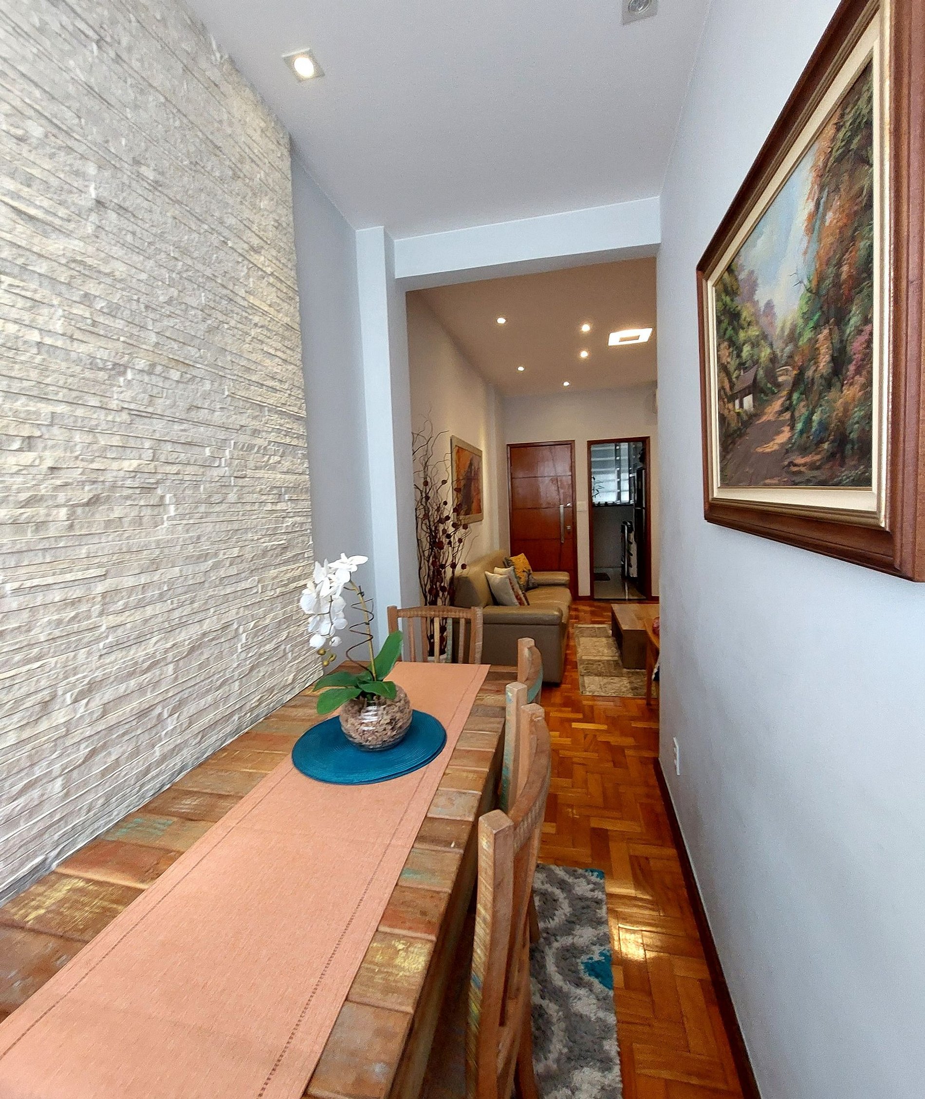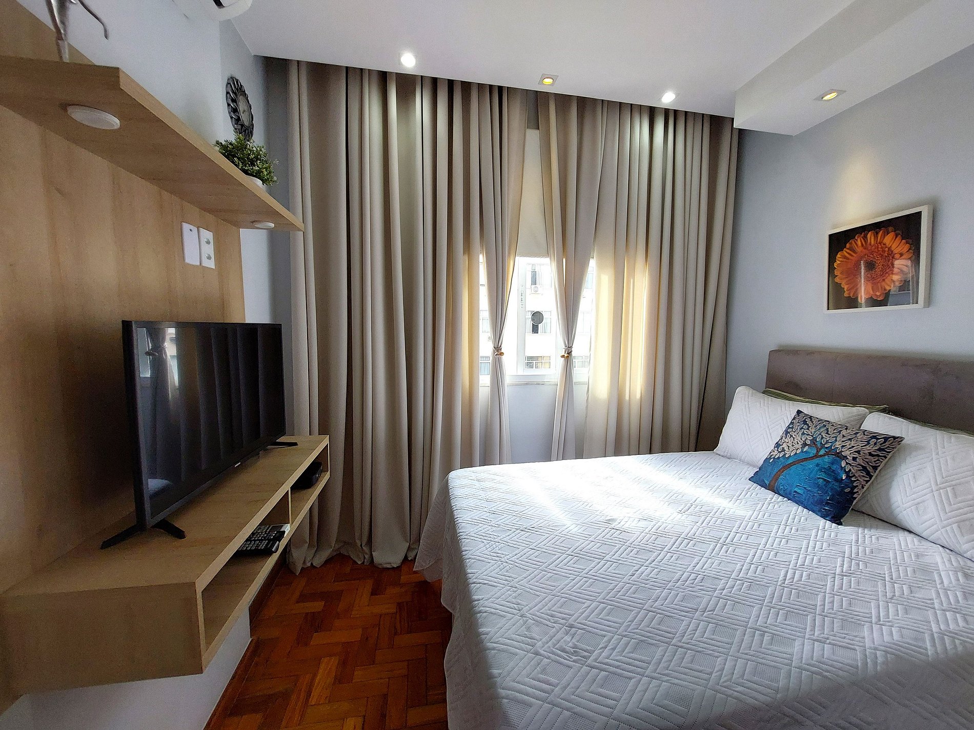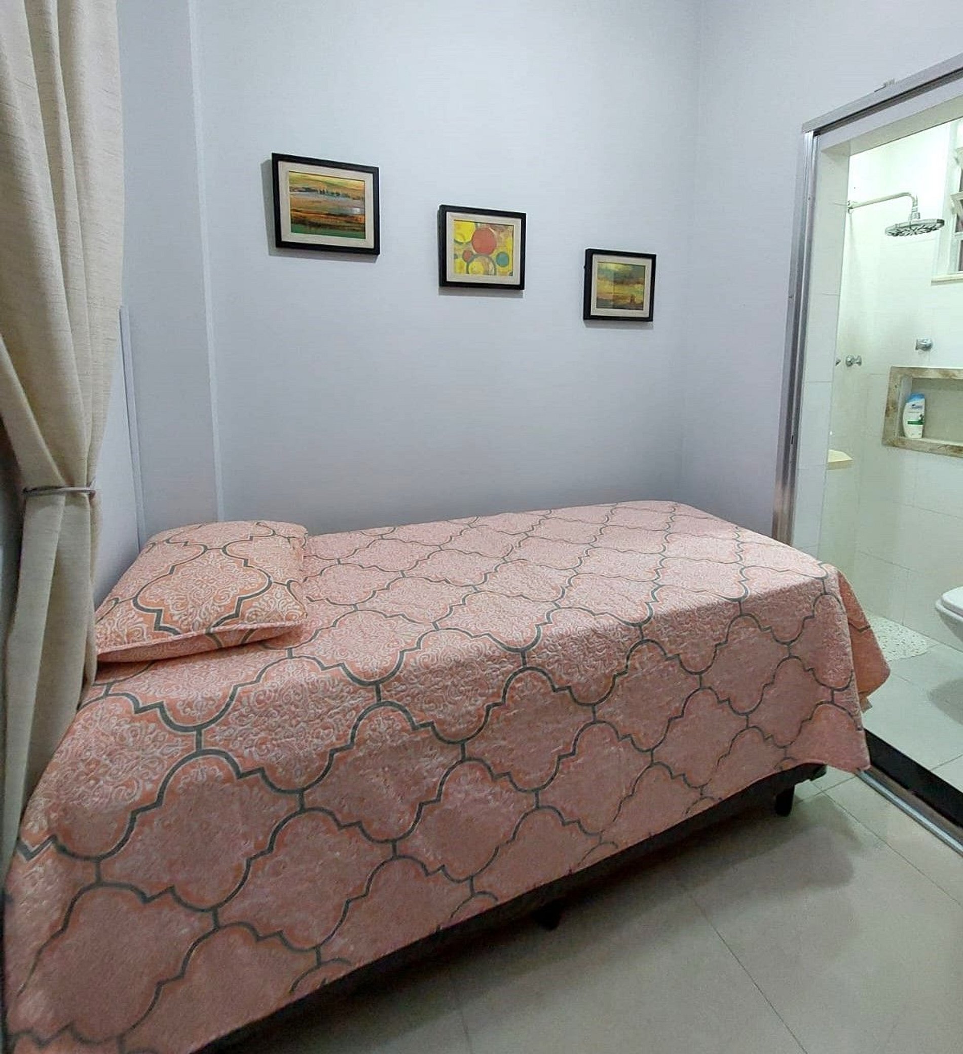 Apartamento espacioso y luminoso a solo 2 cuadras de la playa de Copacabana, a unos 5 minutos a pie. Disponemos de dos dormitorios: el primero con cama doble, Smart TV y aire acondicionado, además de un baño completamente reformado en el pasillo. El segundo dormitorio es una pequeña suite con cama individual y baño. La cocina está totalmente equipada y cuenta con lavadora. El salón cuenta con sofá, Smart TV y aire acondicionado. El comedor tiene capacidad para 3 o 4 personas.