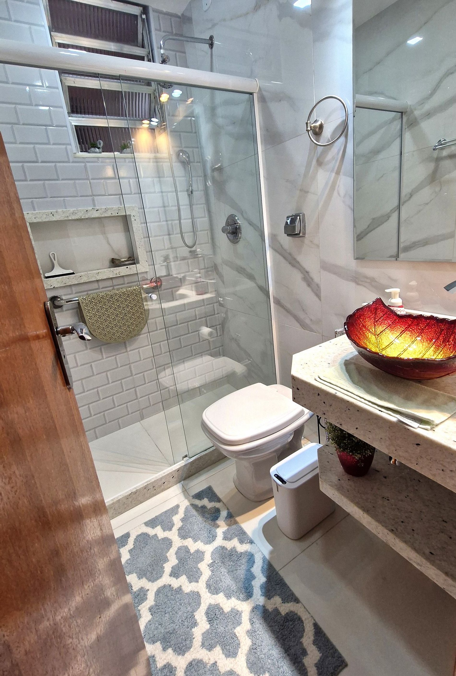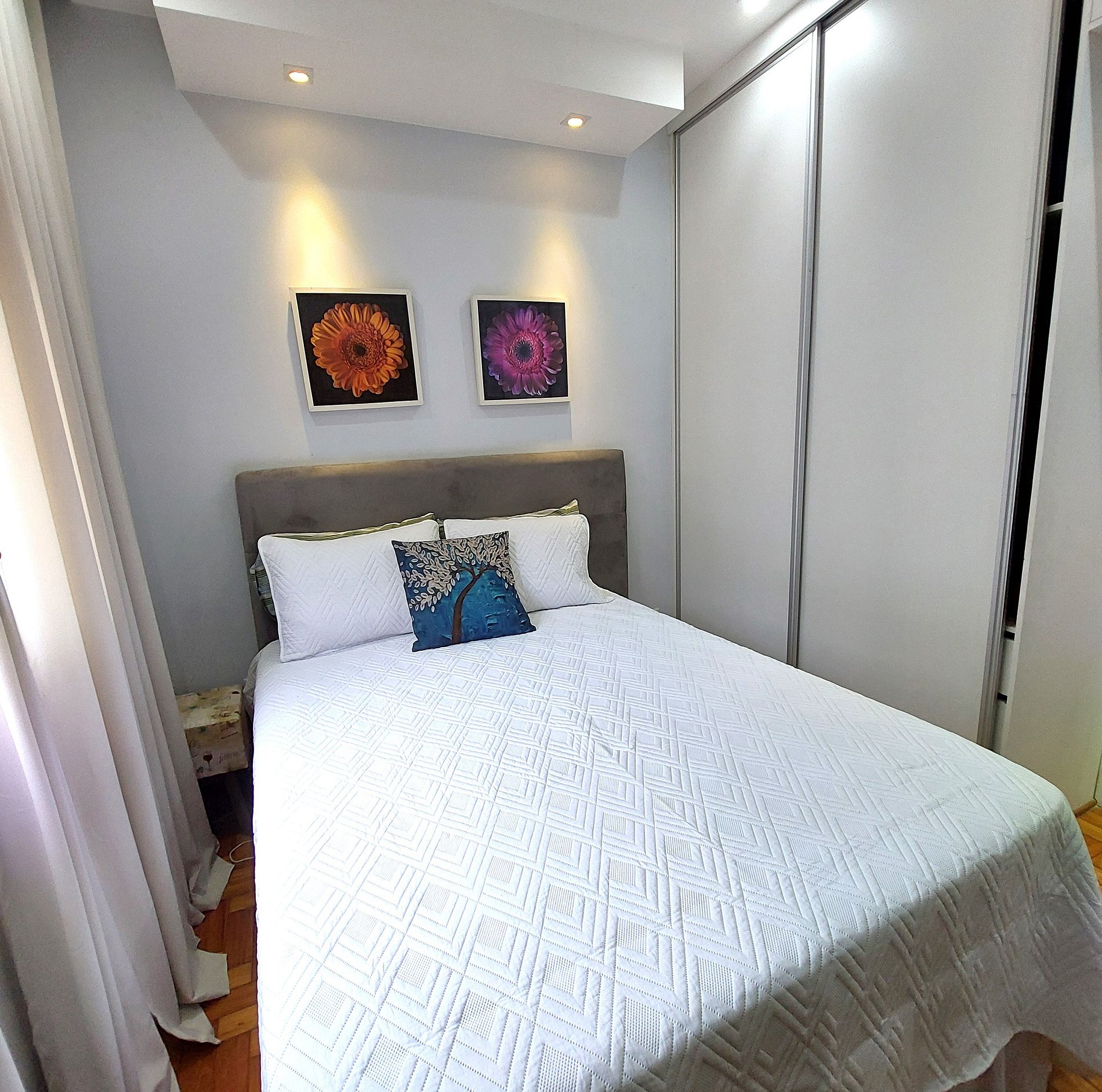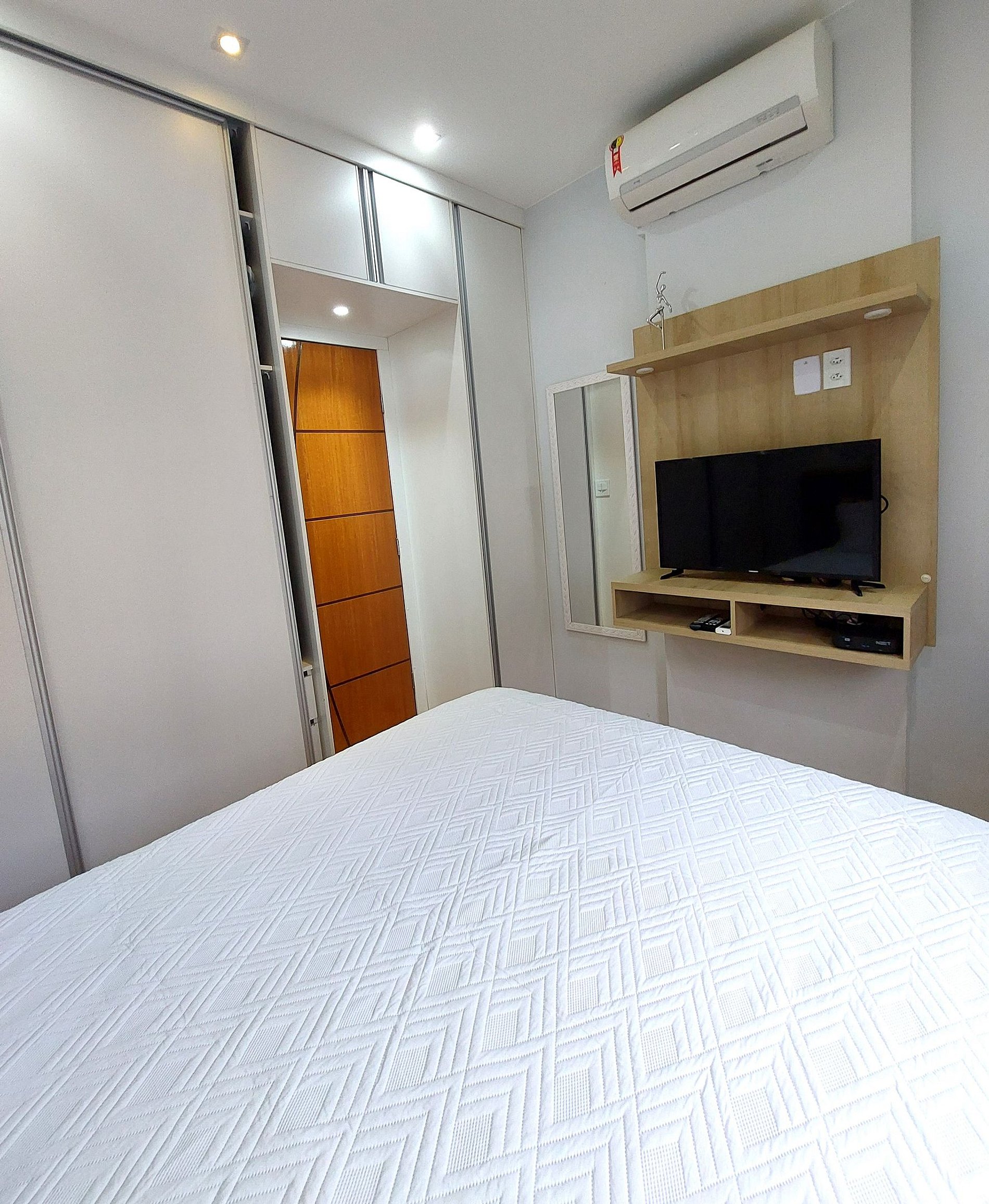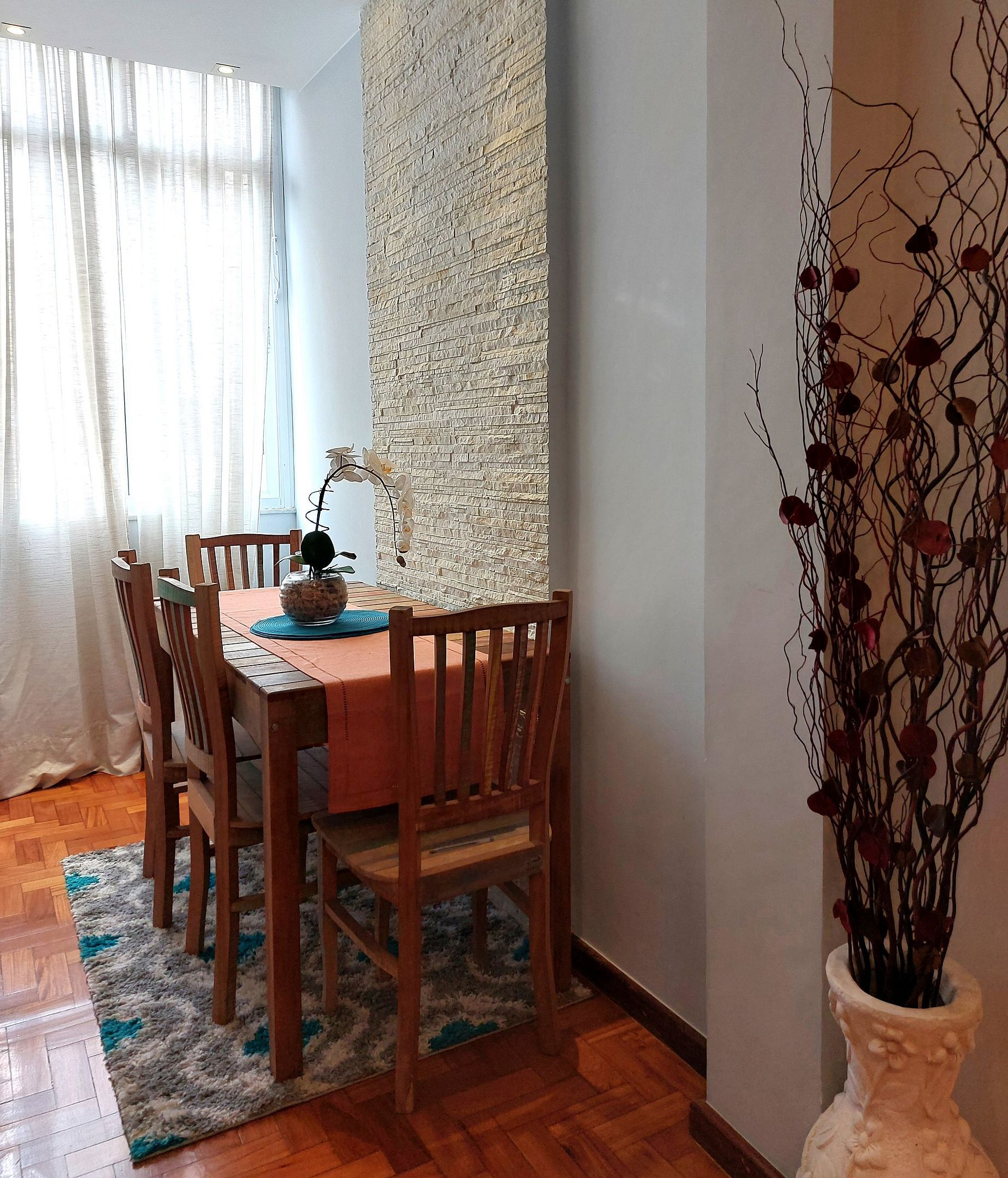 Apartamento espacioso y luminoso a solo 2 cuadras de la playa de Copacabana, a unos 5 minutos a pie. Disponemos de dos dormitorios: el primero con cama doble, Smart TV y aire acondicionado, además de un baño completamente reformado en el pasillo. El segundo dormitorio es una pequeña suite con cama individual y baño. La cocina está totalmente equipada y cuenta con lavadora. El salón cuenta con sofá, Smart TV y aire acondicionado. El comedor tiene capacidad para 3 o 4 personas.