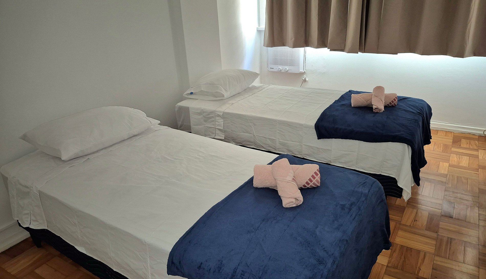 Apartamento tranquilo a tres cuadras de la playa de Copacabana, entre los puestos de socorristas 5 y 6. Dos dormitorios, cada uno con dos camas individuales y espacio para guardar ropa. Uno de los dormitorios tiene aire acondicionado. Sala de estar con sofá cama, TV de pantalla plana y mesa de comedor. Baño completo con mampara de ducha. Cocina equipada. Internet wifi de alta velocidad. Conserjería 24 horas