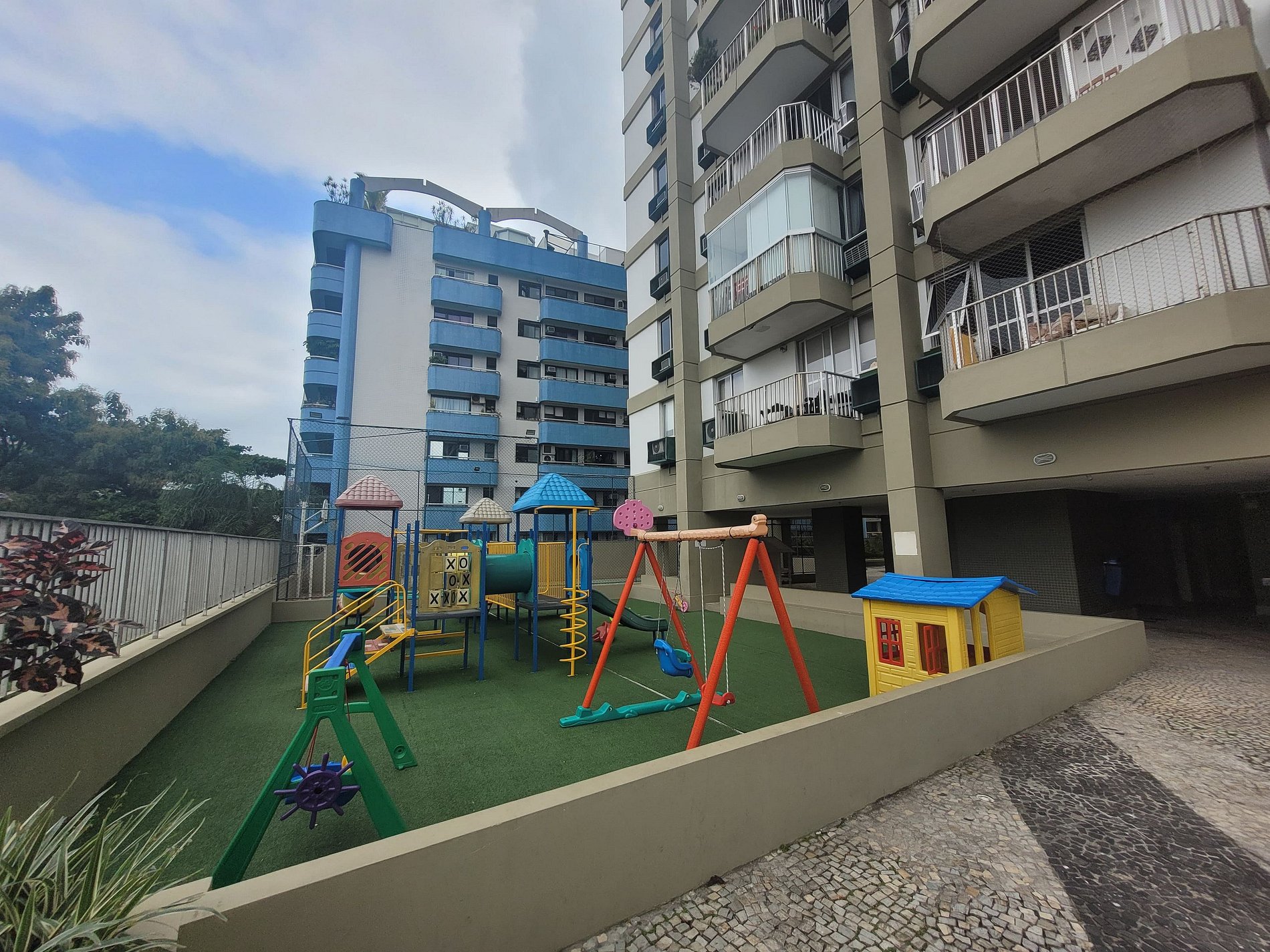Preciosa zona de ocio con piscina y parque infantil. Garaje disponible para un coche. Zona muy segura, la playa de Leblon está a 10 minutos caminando. Cochera disponible