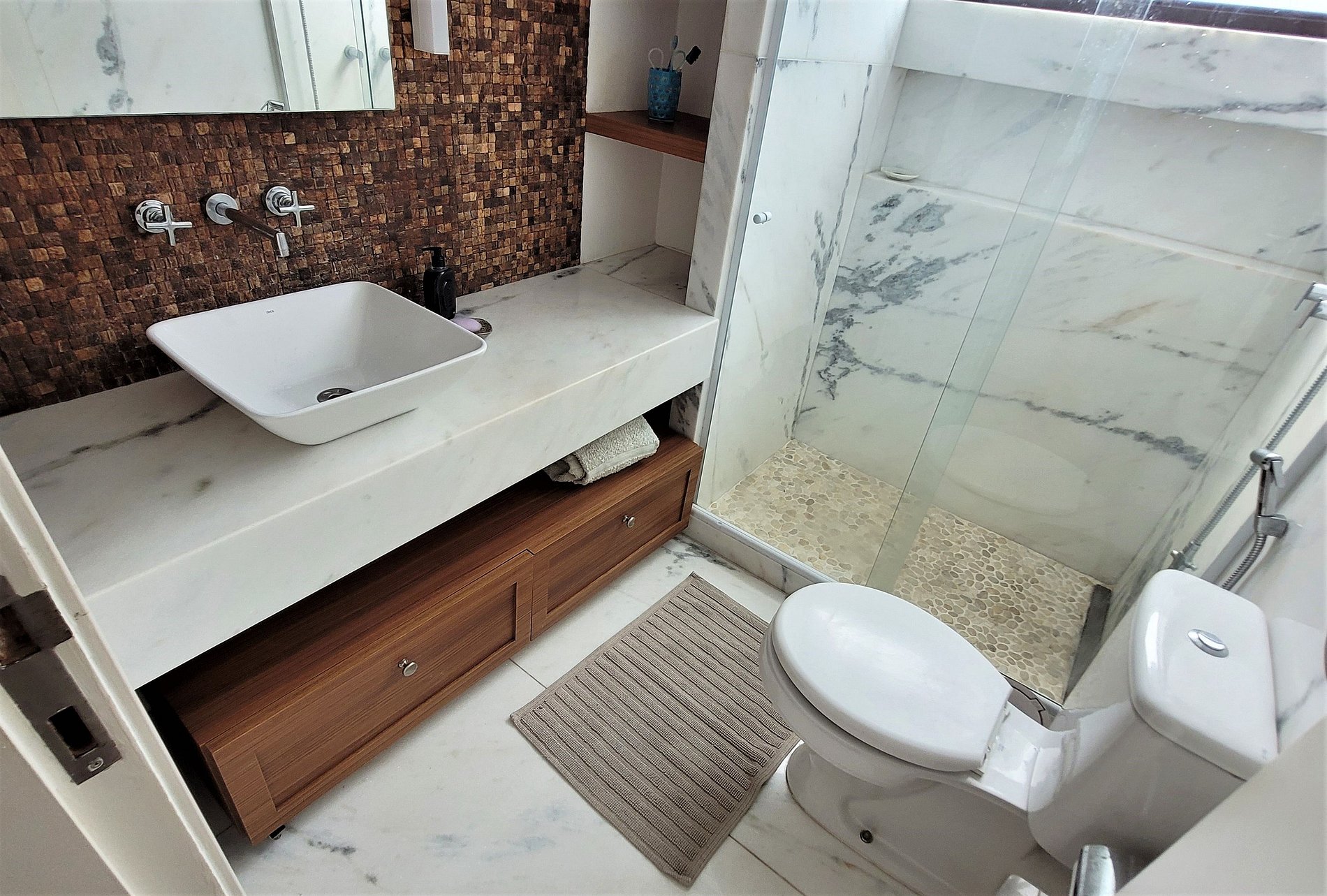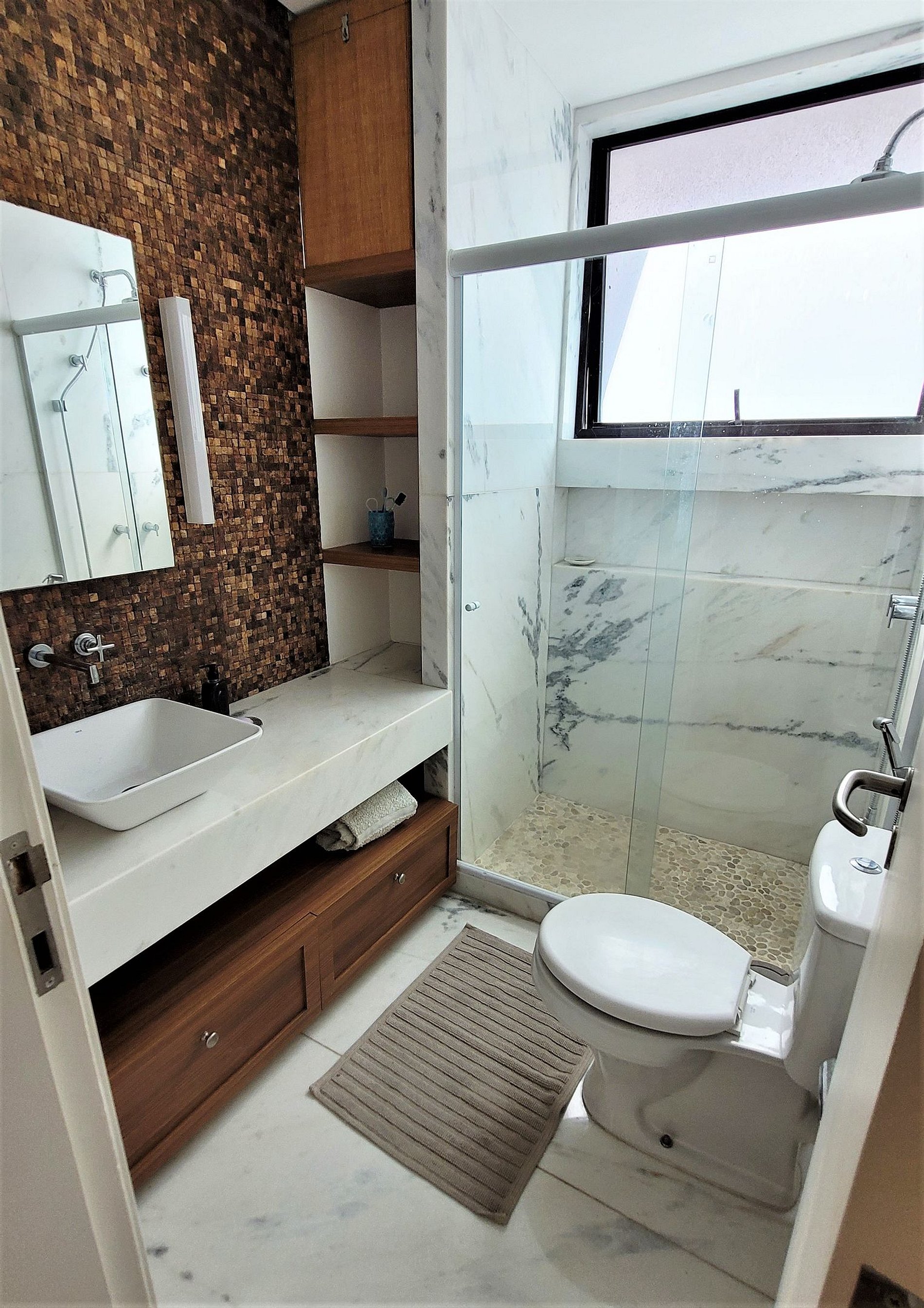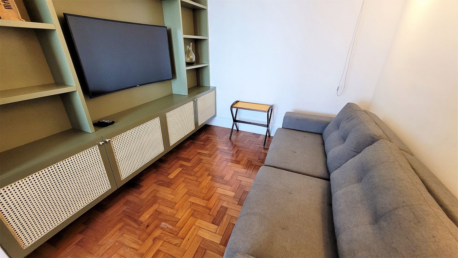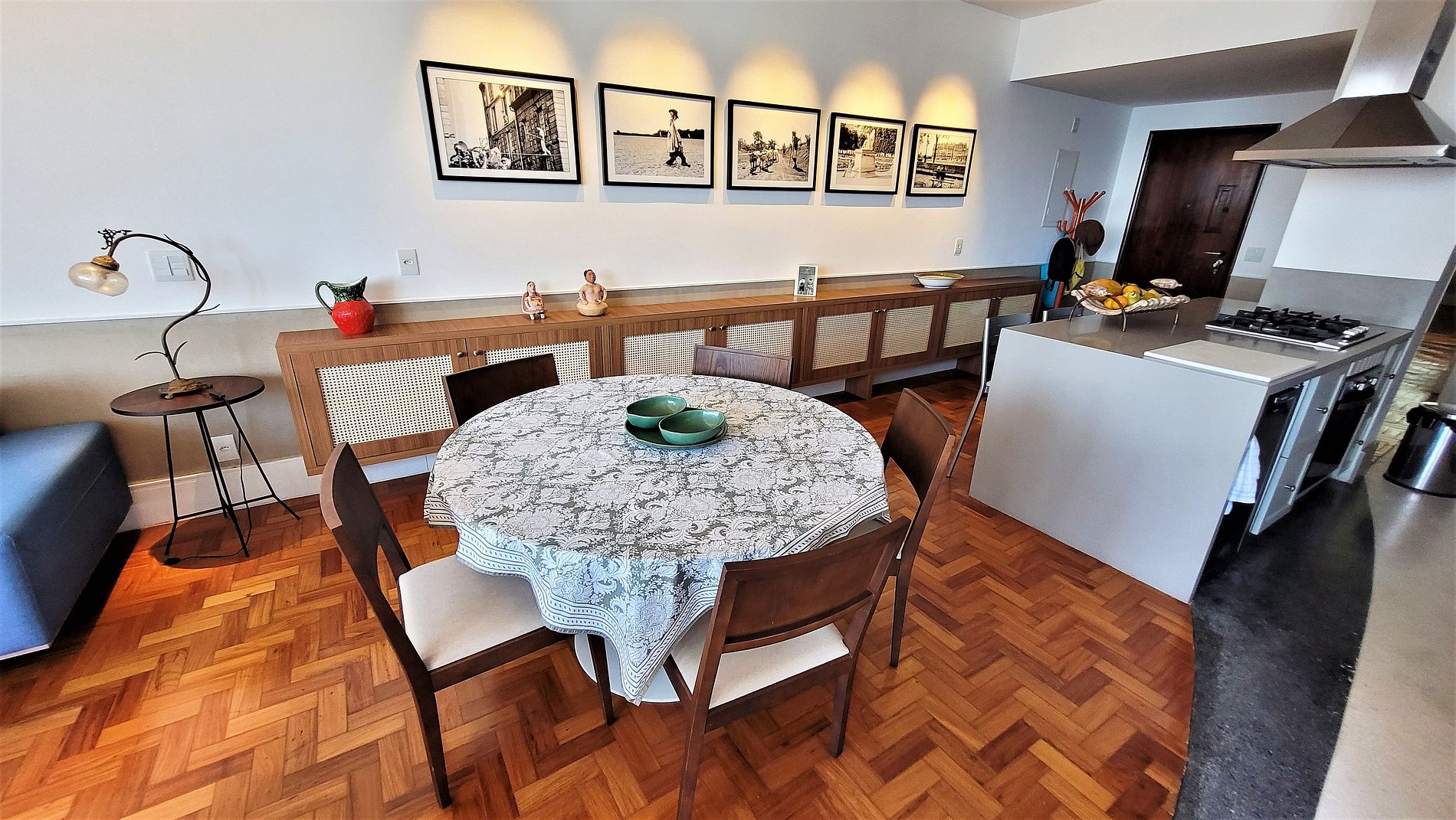 Edificio Ypiranga, uno de los edificios más emblemáticos del malecón de Copacabana, donde el arquitecto Oscar Niemeyer mantuvo su oficina y estudio por más de 60 años. El departamento se sometió a una hermosa remodelación, respetando de manera minimalista, moderna e inteligente, las curvas del controvertido edificio de los años 30, que fue apodado "Mae West" por las dos columnas de terrazas salientes que sobresalen sobre la vista al mar.