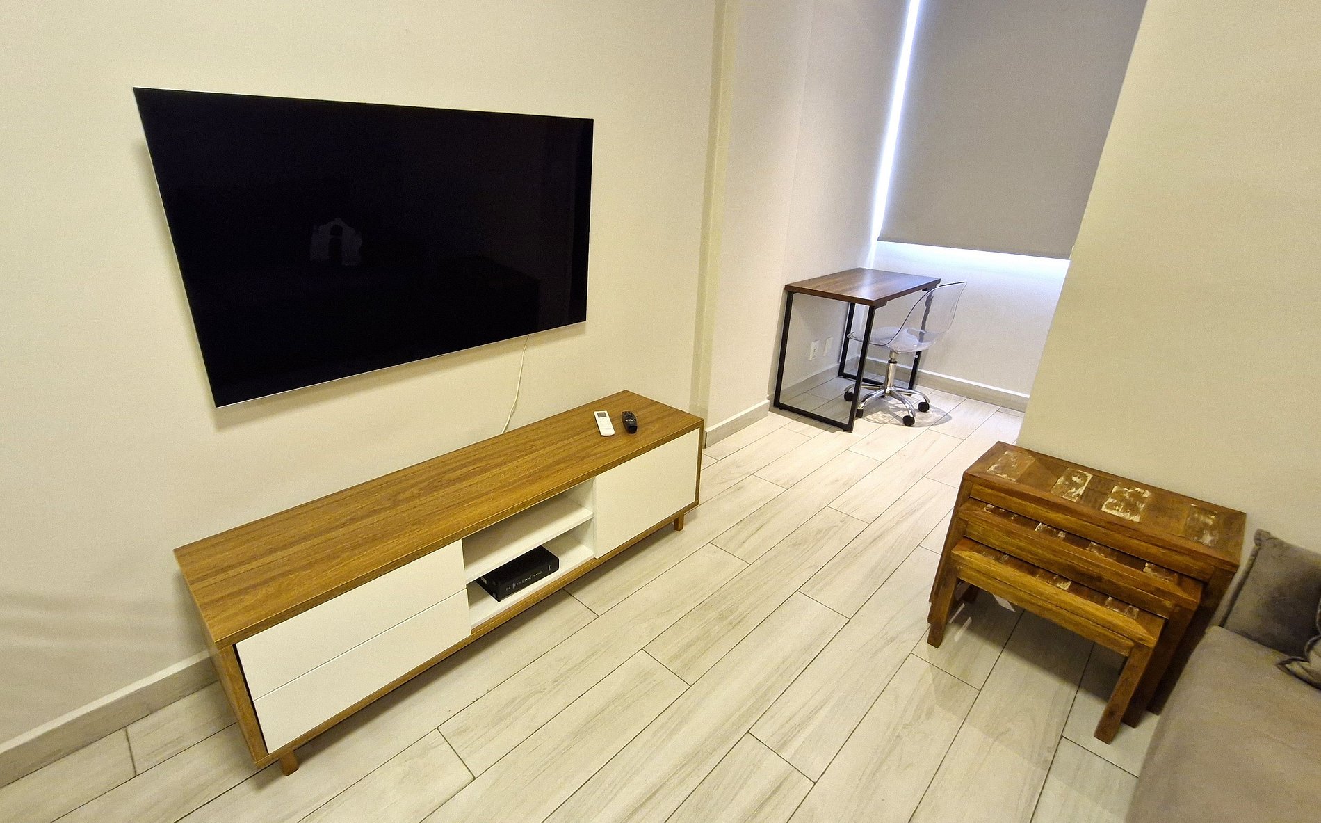 Hermoso apartamento de dormitorio y sala de estar, a 3 cuadras de la playa de Copacabana. Dormitorio con cama de matrimonio, armario empotrado y aire acondicionado. Salón con sofá cama doble, mesa de comedor y mesa de trabajo. Baño completo y recién reformado. Cocina estilo americana, super completa y bien equipada. Área de servicio con un pequeño baño de apoyo. Smart TV, con internet de alta velocidad y wifi. Conserjería de 8 a 20 horas