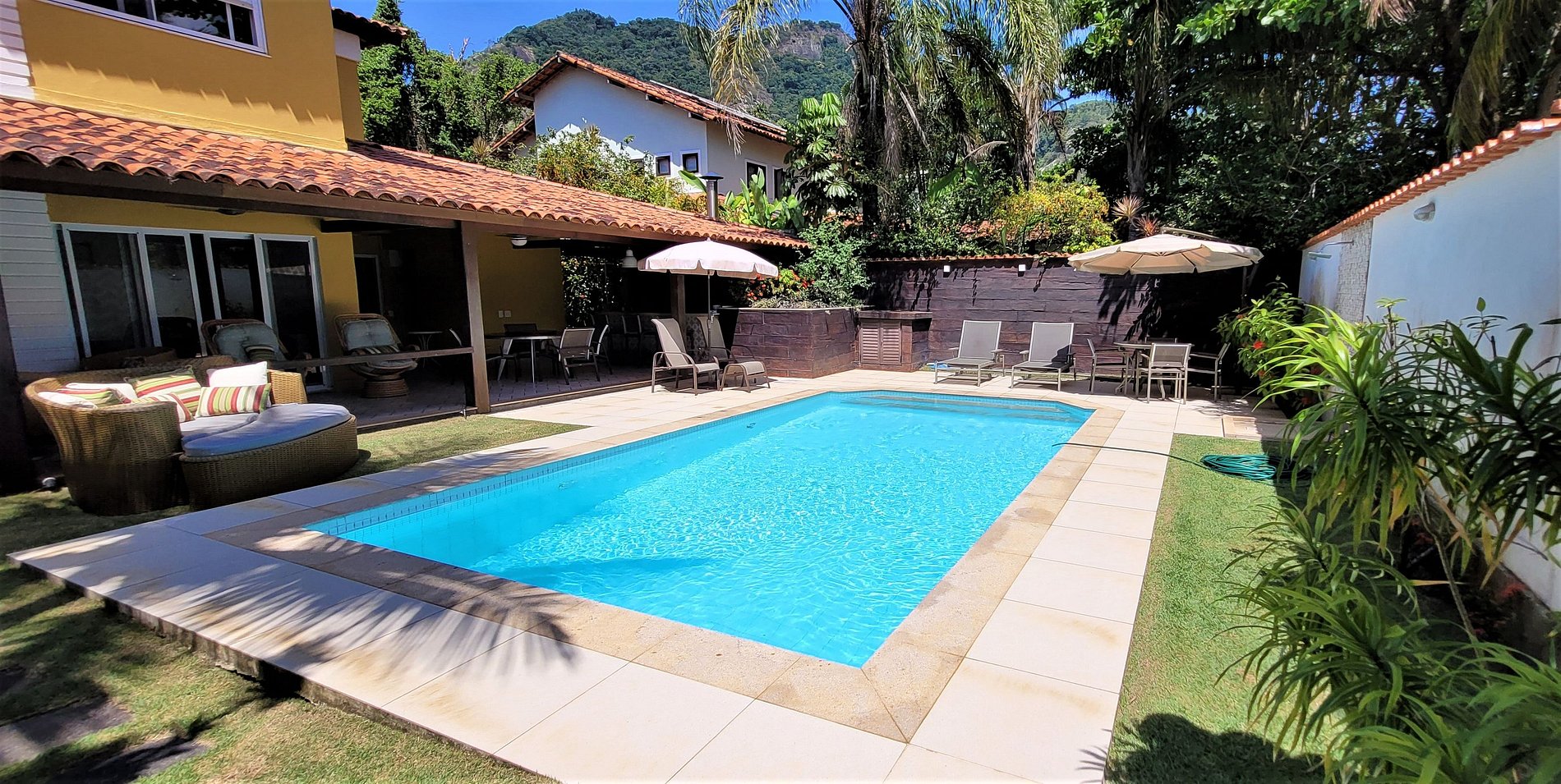 Amplia casa de 5 habitaciones con capacidad para 10 personas, en una comunidad cerrada segura y bien ubicada cerca de las mejores playas de Río de Janeiro.