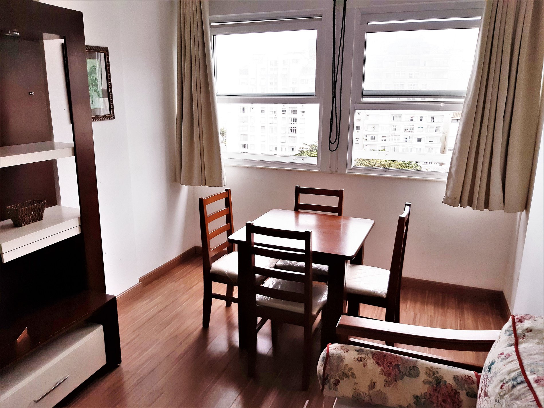 Apartamento iluminado e confortável para 4 pessoas com linda vista da praia de Copacabana. Quarto com cama de casal e sofá cama na sala para 2 pessoas. Banheiro social + banheiro de serviço. TV a cabo + internet com WIFI.