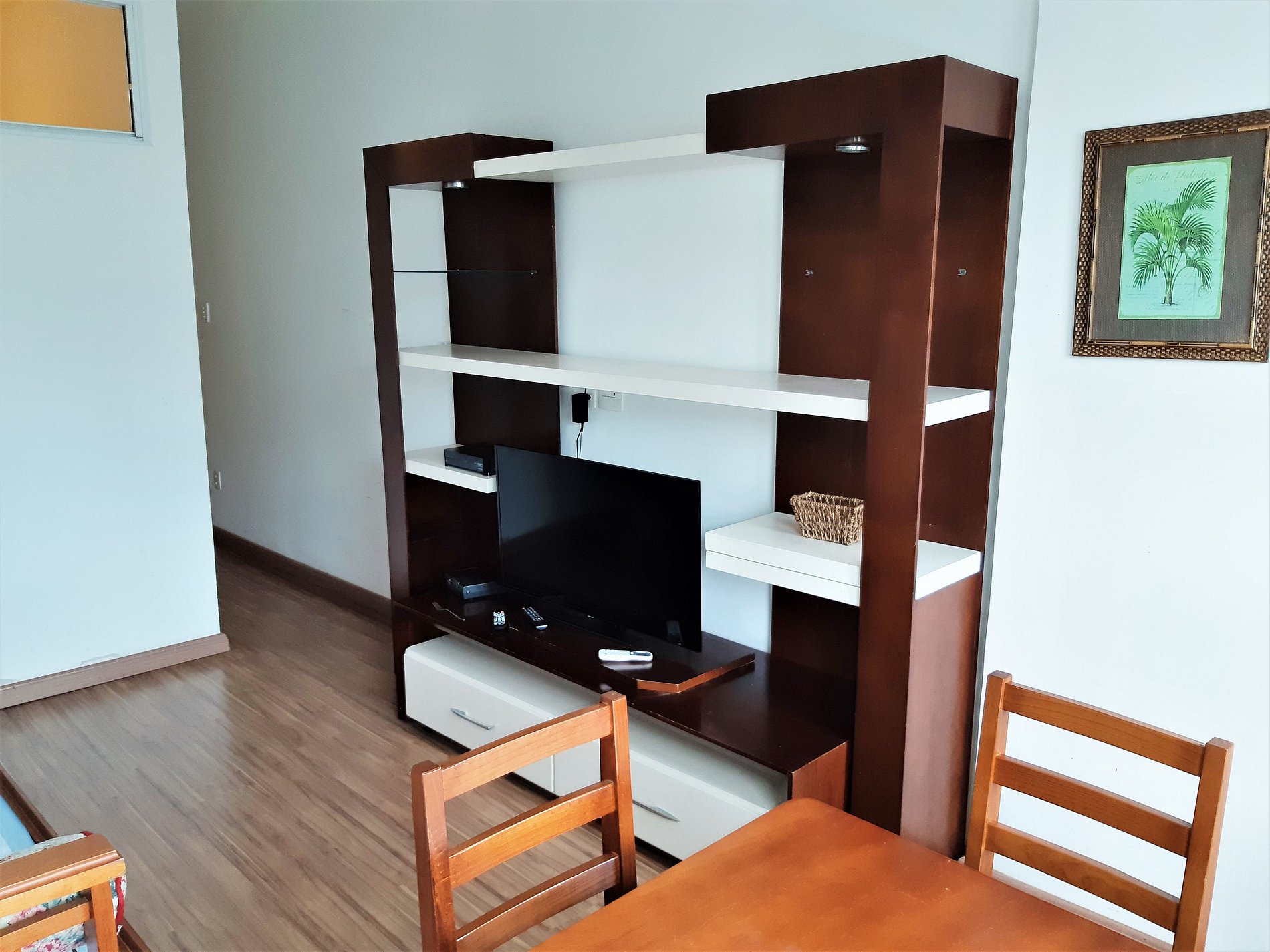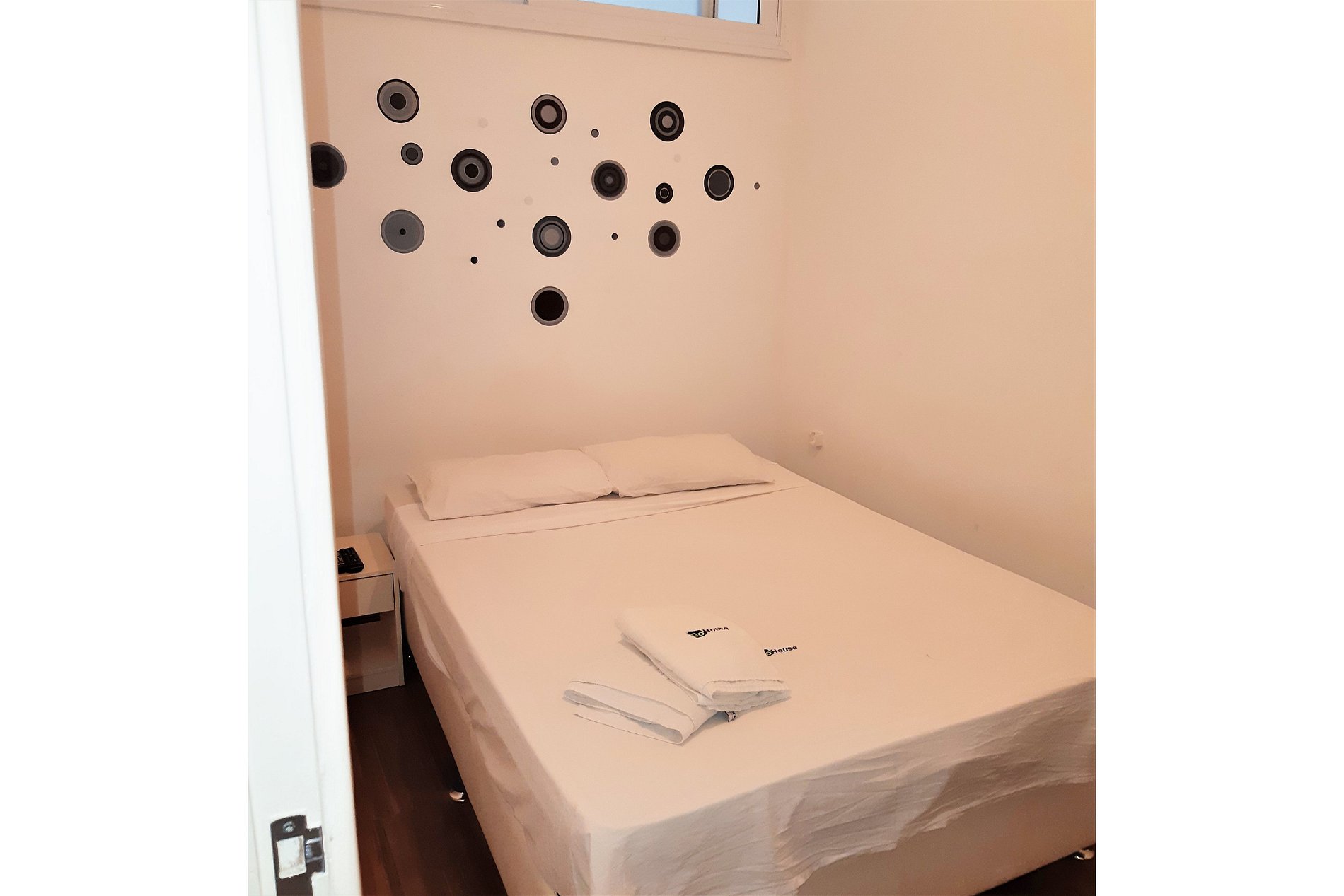 Luminoso y confortable apartamento para 4 personas con hermosa vista a la playa de Copacabana. Habitación con cama doble y sofá cama en el salón para 2 personas. Baño social + servicio de aseo. TV por cable + internet con WIFI.