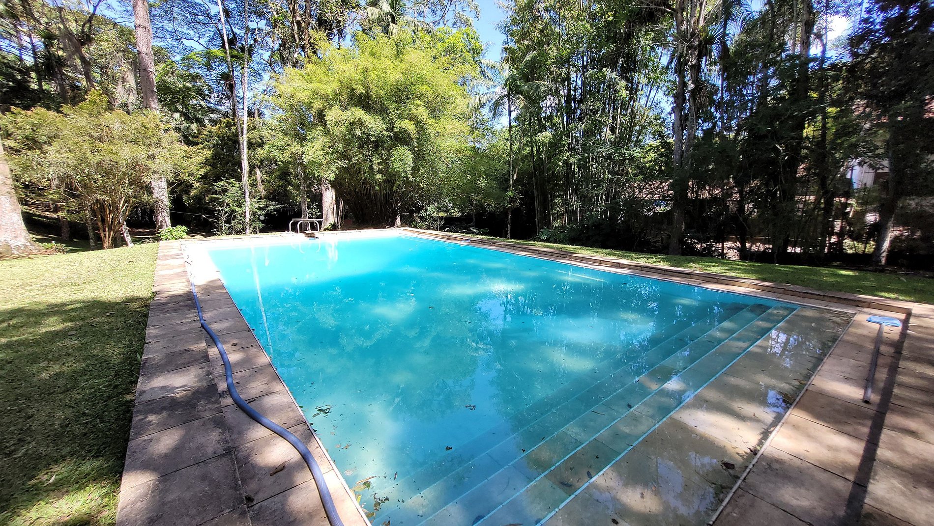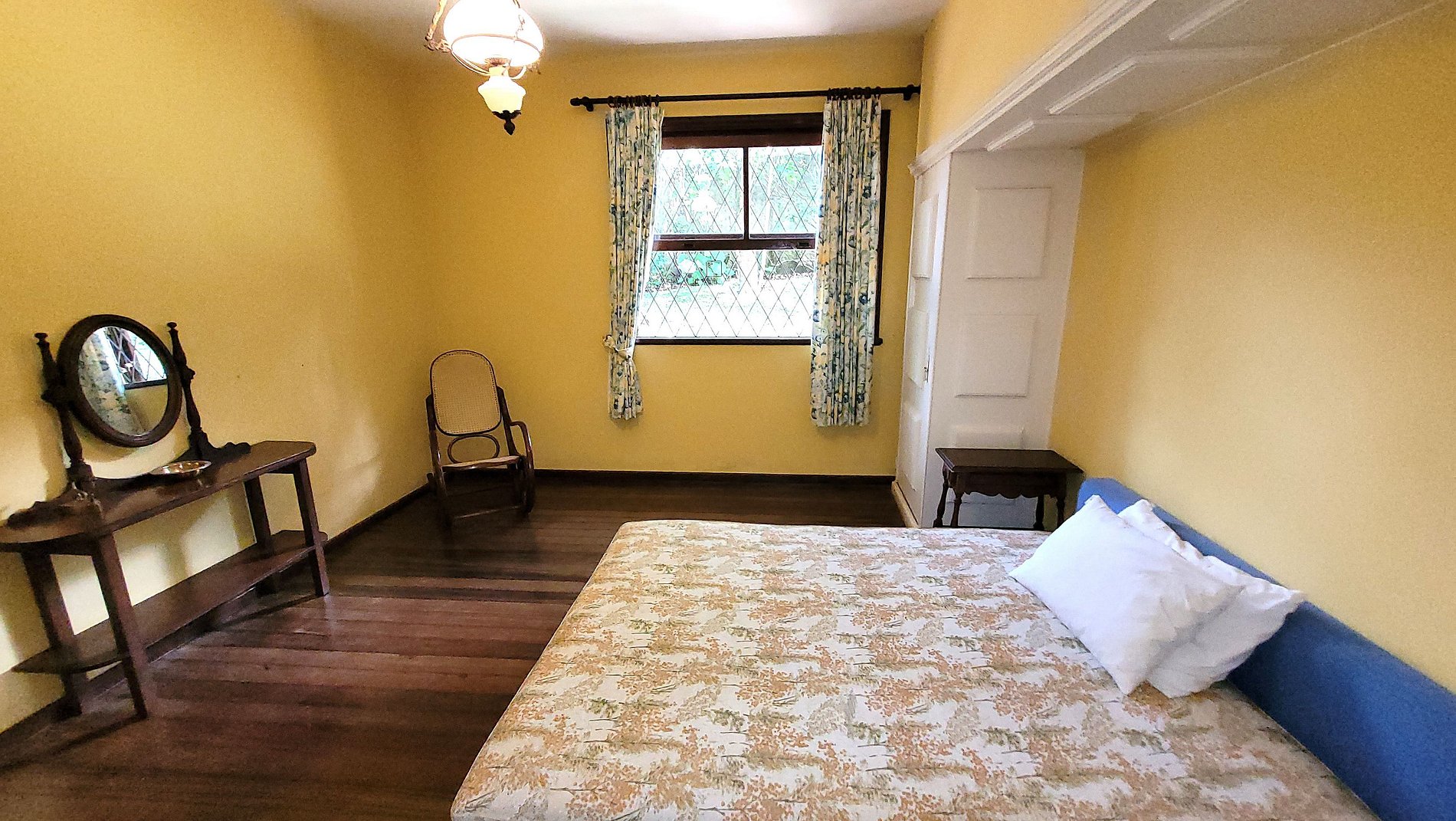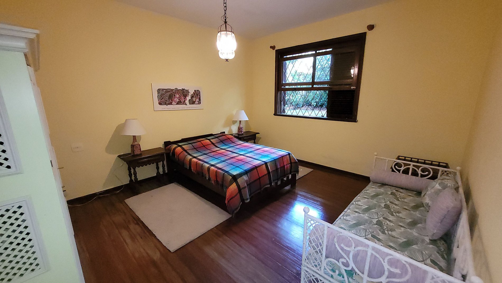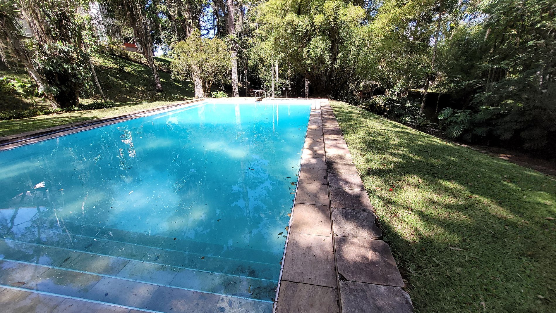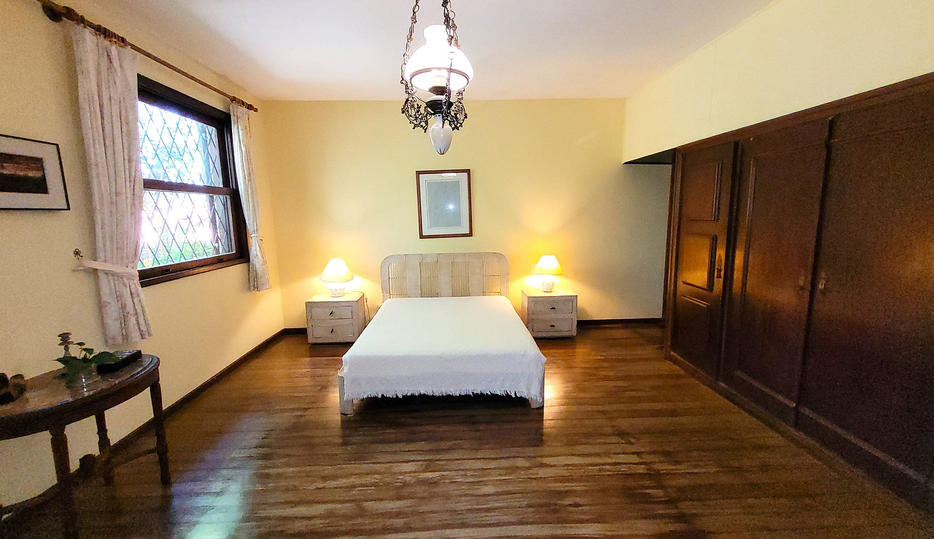 Casa com piscina, cercada de muito verde. Temos 4 quartos que acomodam bem até 11 pessoas. São 2 suites com camas de casal, mais 2 quartos com 1 banheiro em comum. Sala ampla, com lareira e um espaço com poltronas confortáveis dispostas de frente para uma TV de tela plana. Sala de jantar que pode acomodar até 10 pessoas. Cozinha ampla e bem equipada. Area de serviço com maquina de lavar roupas. No jardim temos uma bela piscina, que fica próxima ao salão de jogos, sauna e churrasqueira.
