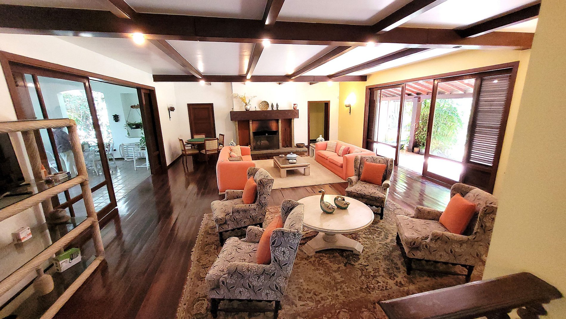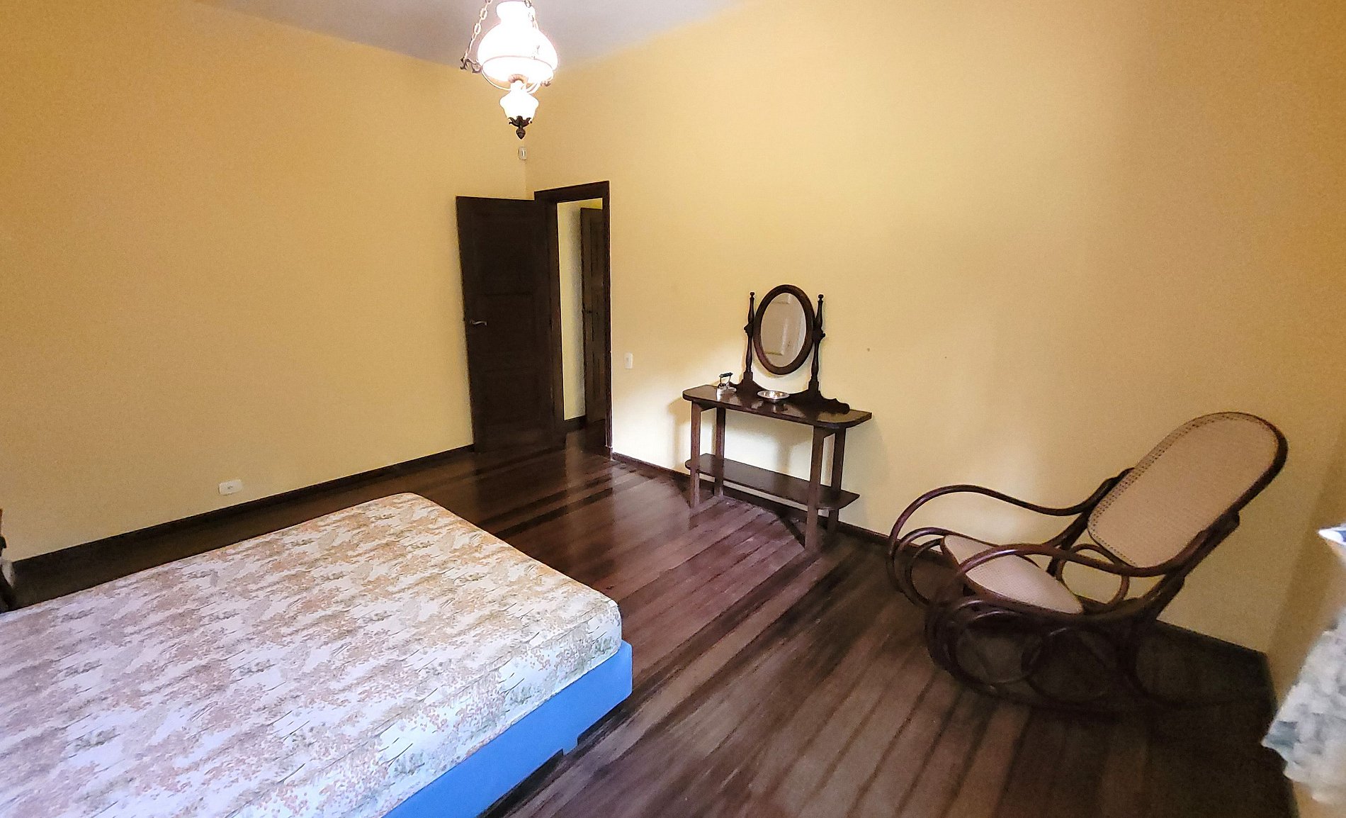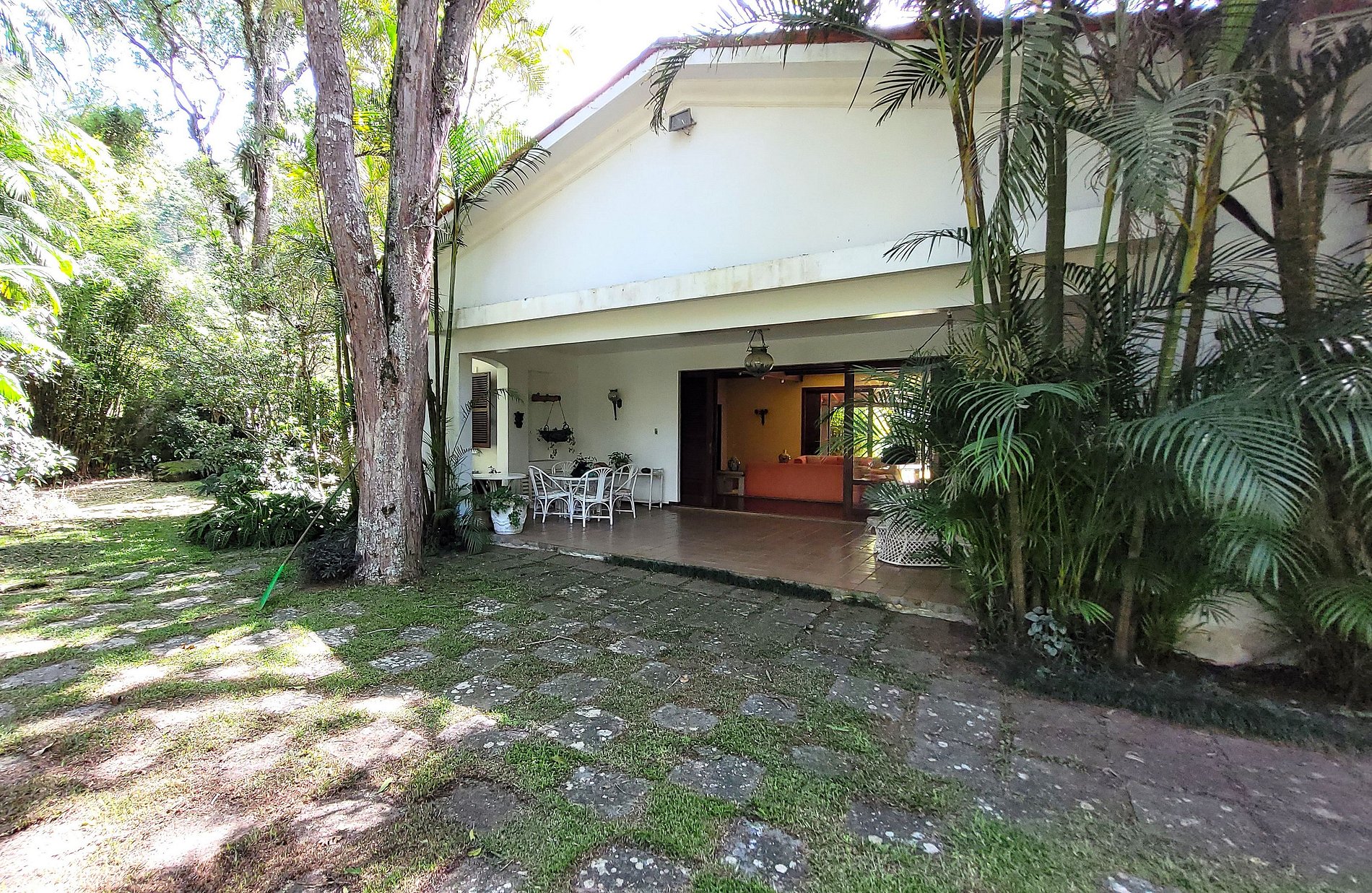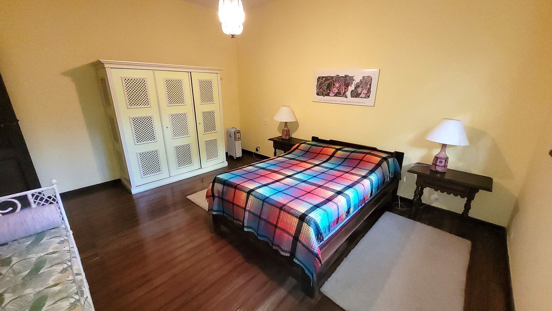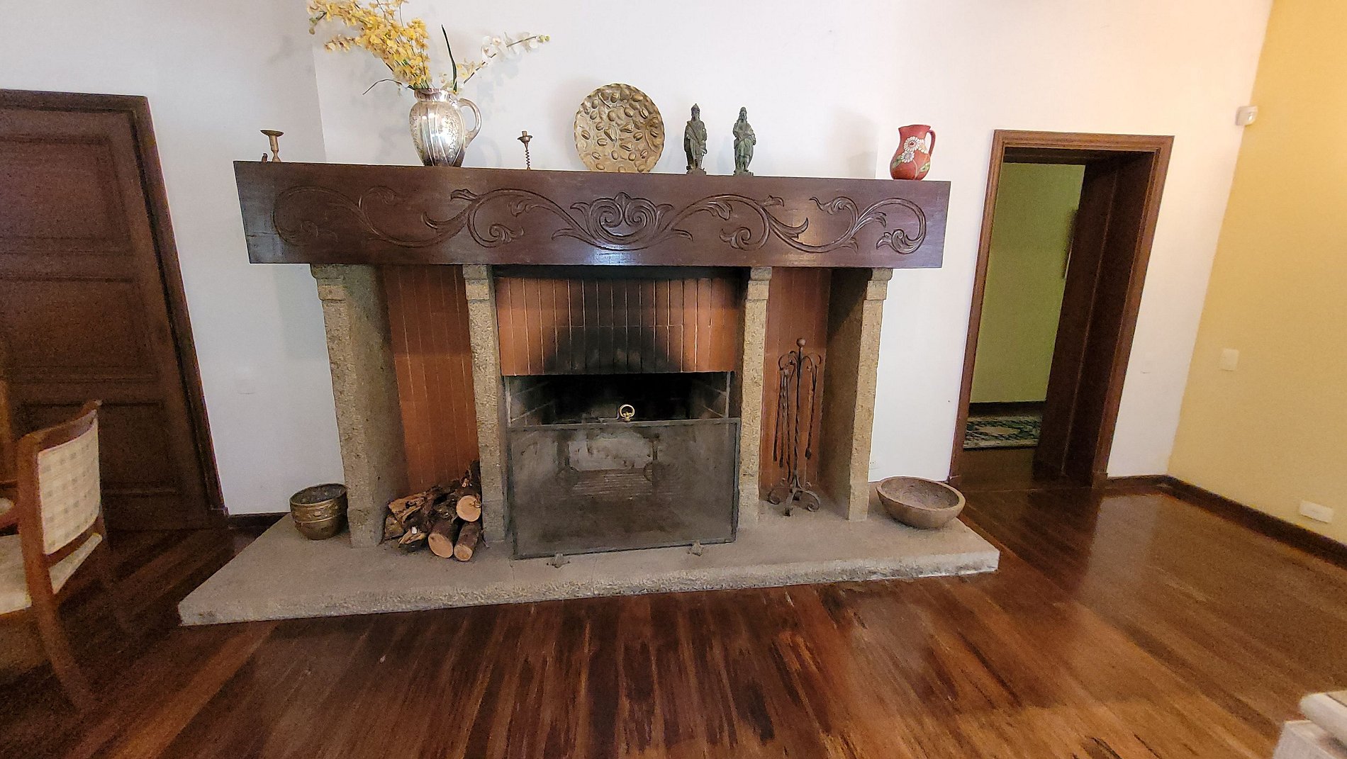 Casa com piscina, cercada de muito verde. Temos 4 quartos que acomodam bem até 11 pessoas. São 2 suites com camas de casal, mais 2 quartos com 1 banheiro em comum. Sala ampla, com lareira e um espaço com poltronas confortáveis dispostas de frente para uma TV de tela plana. Sala de jantar que pode acomodar até 10 pessoas. Cozinha ampla e bem equipada. Area de serviço com maquina de lavar roupas. No jardim temos uma bela piscina, que fica próxima ao salão de jogos, sauna e churrasqueira.