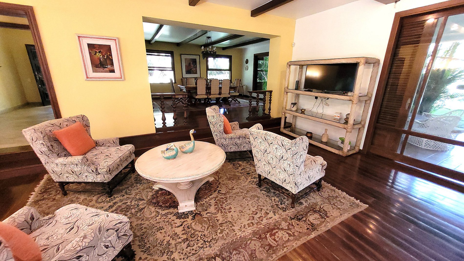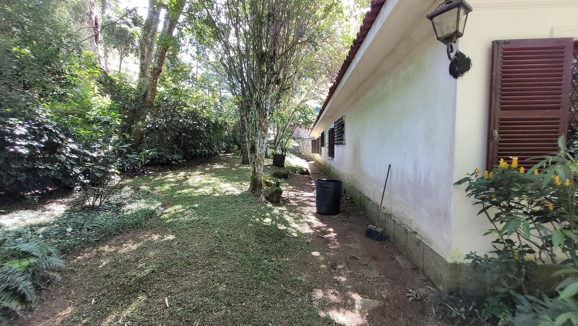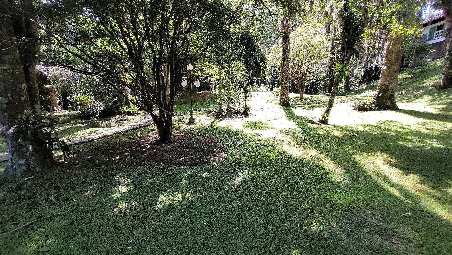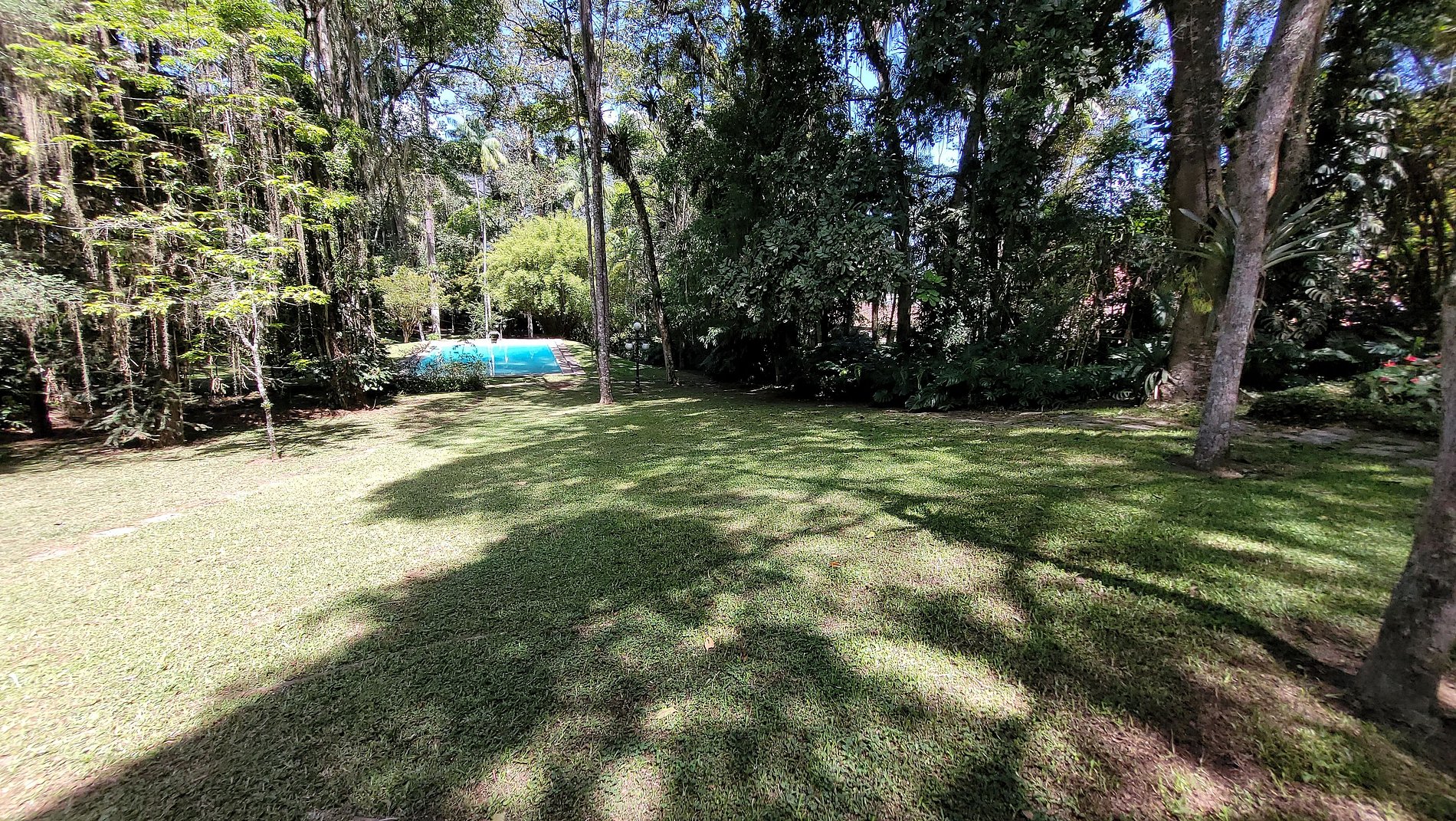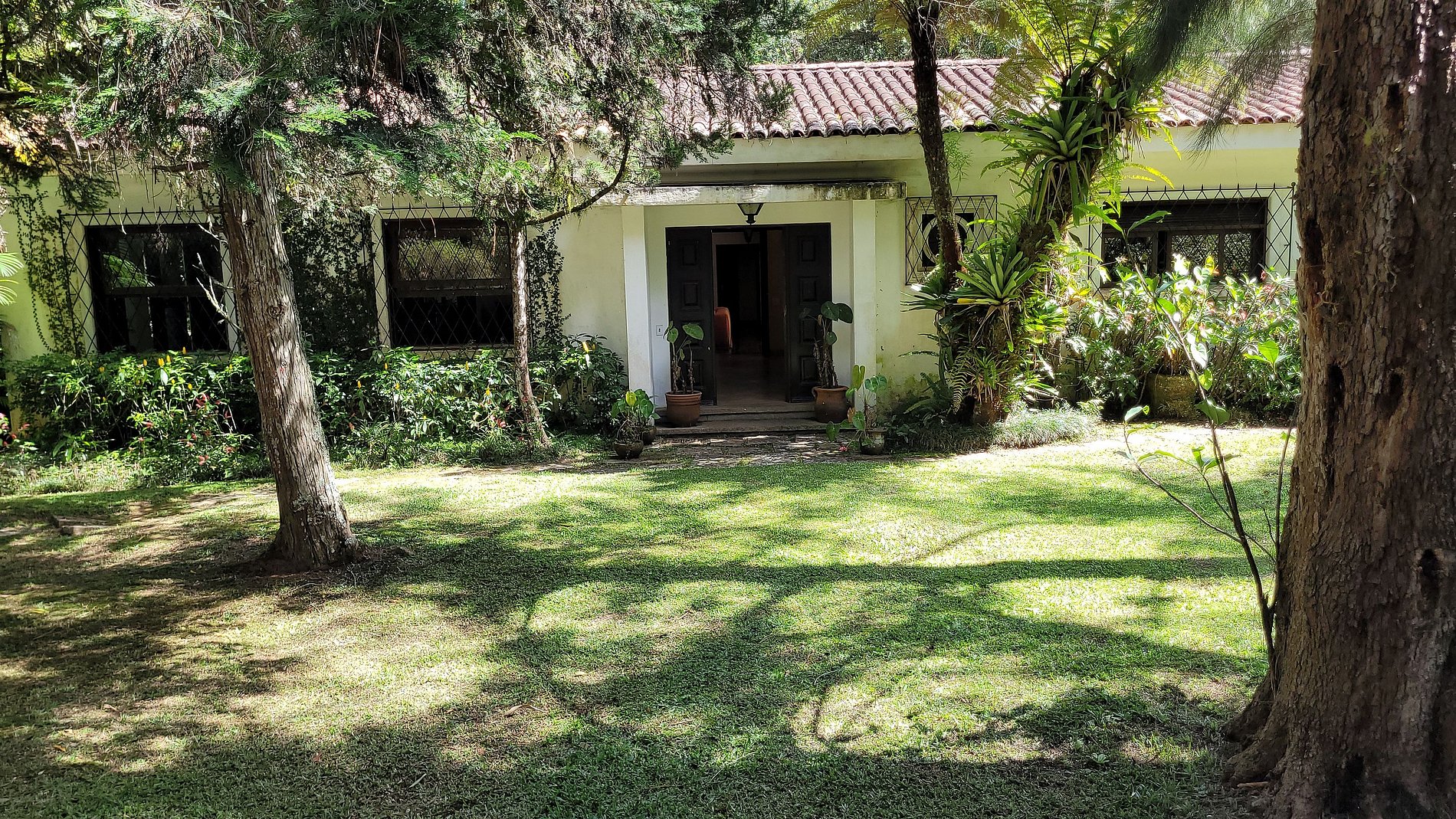 Casa com piscina, cercada de muito verde. Temos 4 quartos que acomodam bem até 11 pessoas. São 2 suites com camas de casal, mais 2 quartos com 1 banheiro em comum. Sala ampla, com lareira e um espaço com poltronas confortáveis dispostas de frente para uma TV de tela plana. Sala de jantar que pode acomodar até 10 pessoas. Cozinha ampla e bem equipada. Area de serviço com maquina de lavar roupas. No jardim temos uma bela piscina, que fica próxima ao salão de jogos, sauna e churrasqueira.