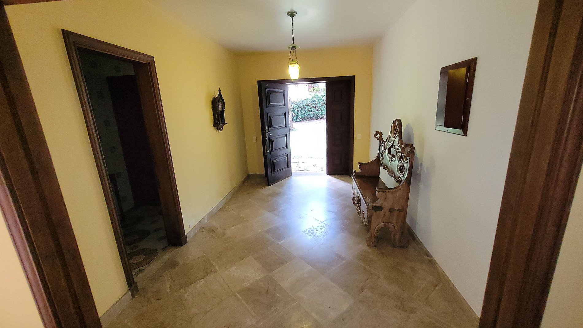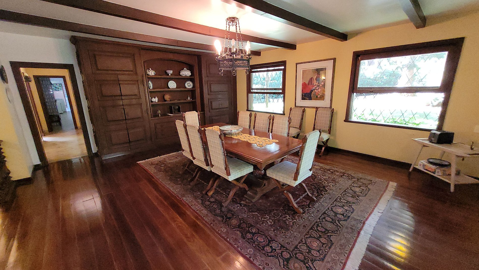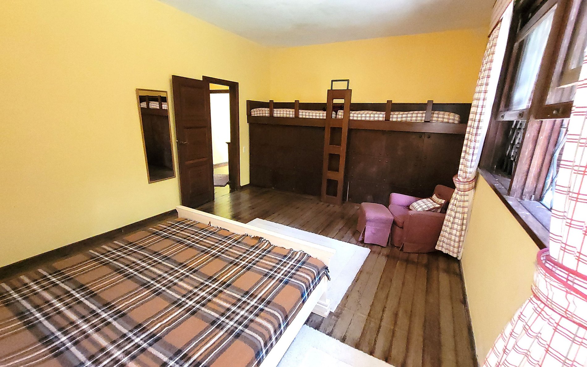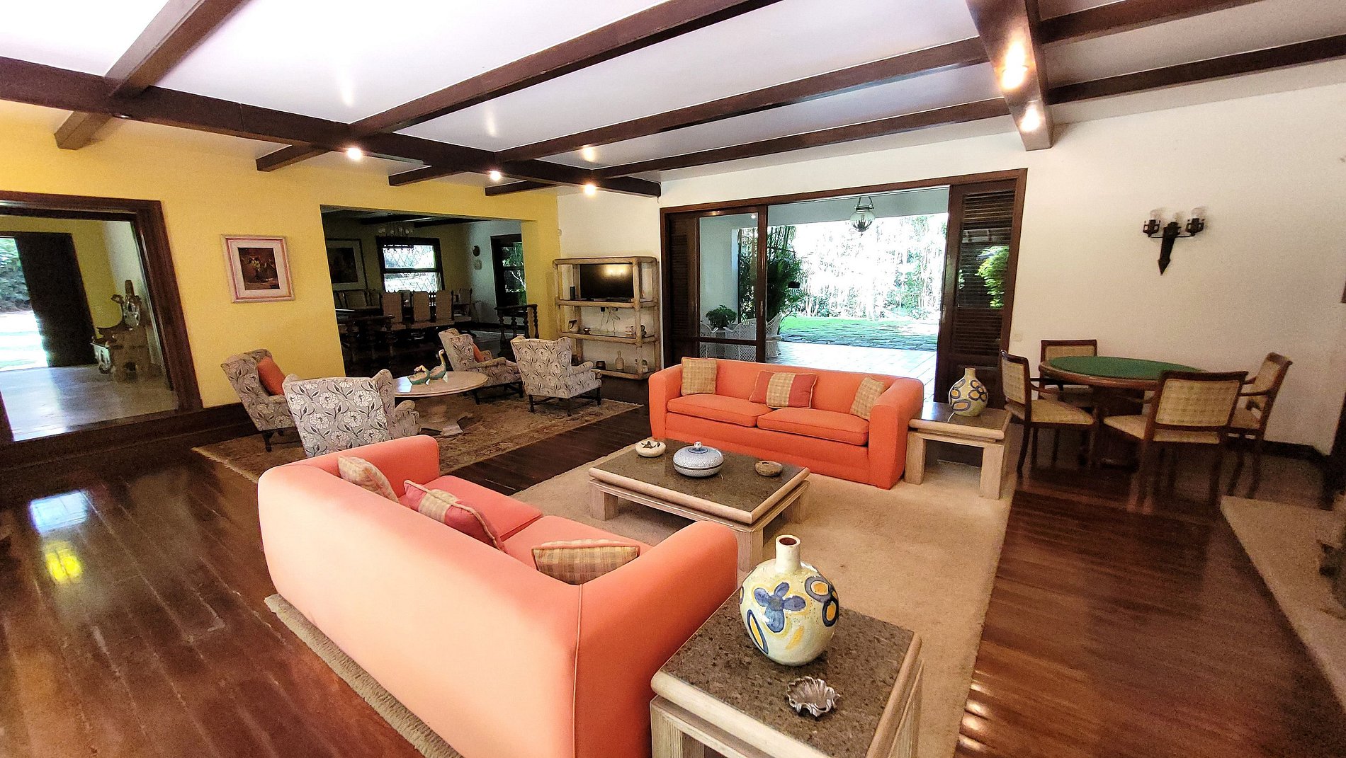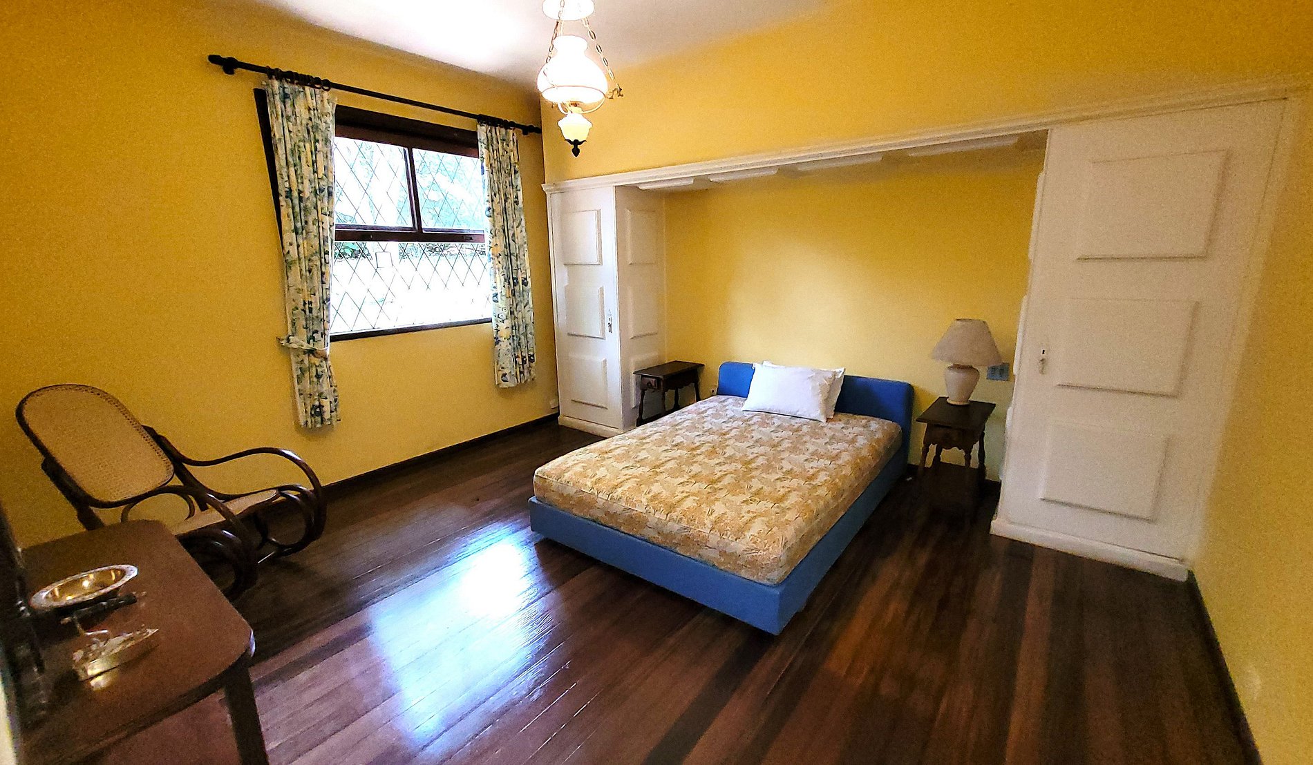 Casa com piscina, cercada de muito verde. Temos 4 quartos que acomodam bem até 11 pessoas. São 2 suites com camas de casal, mais 2 quartos com 1 banheiro em comum. Sala ampla, com lareira e um espaço com poltronas confortáveis dispostas de frente para uma TV de tela plana. Sala de jantar que pode acomodar até 10 pessoas. Cozinha ampla e bem equipada. Area de serviço com maquina de lavar roupas. No jardim temos uma bela piscina, que fica próxima ao salão de jogos, sauna e churrasqueira.