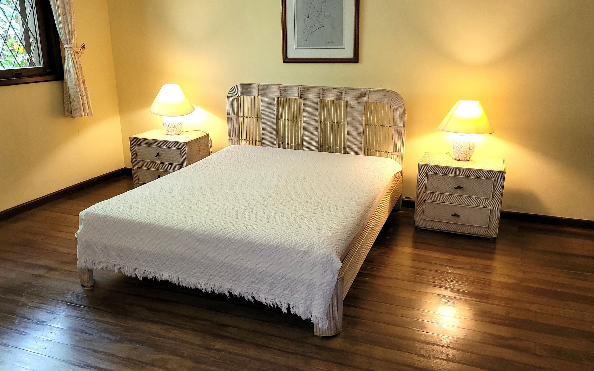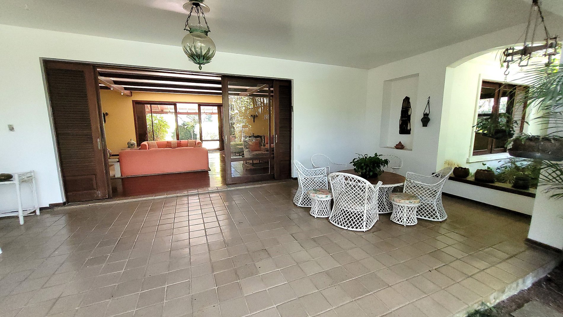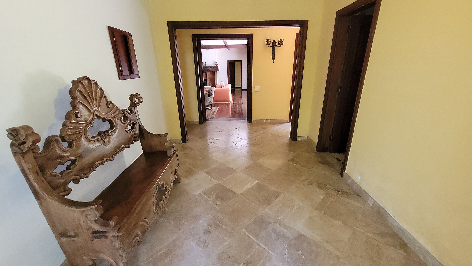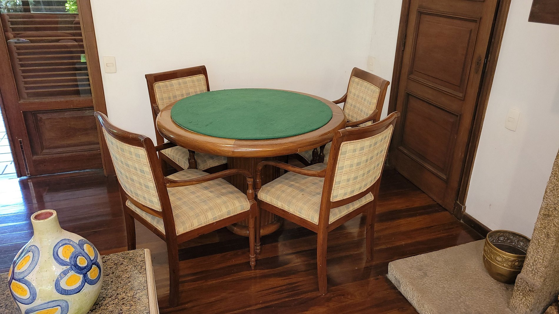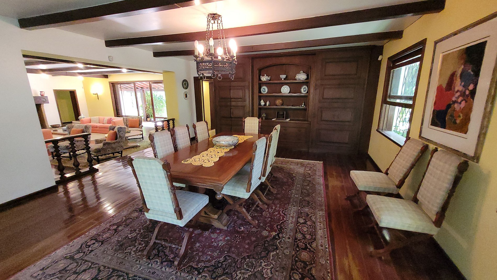 Casa com piscina, cercada de muito verde. Temos 4 quartos que acomodam bem até 11 pessoas. São 2 suites com camas de casal, mais 2 quartos com 1 banheiro em comum. Sala ampla, com lareira e um espaço com poltronas confortáveis dispostas de frente para uma TV de tela plana. Sala de jantar que pode acomodar até 10 pessoas. Cozinha ampla e bem equipada. Area de serviço com maquina de lavar roupas. No jardim temos uma bela piscina, que fica próxima ao salão de jogos, sauna e churrasqueira.