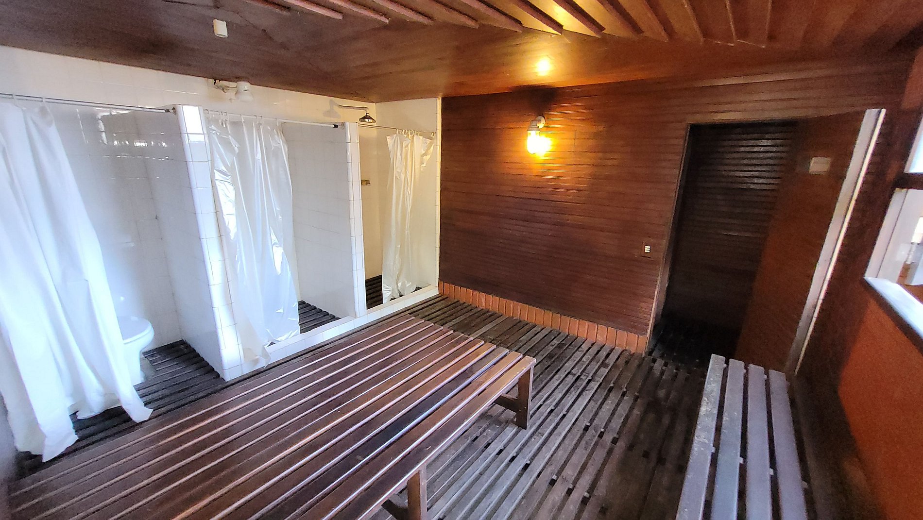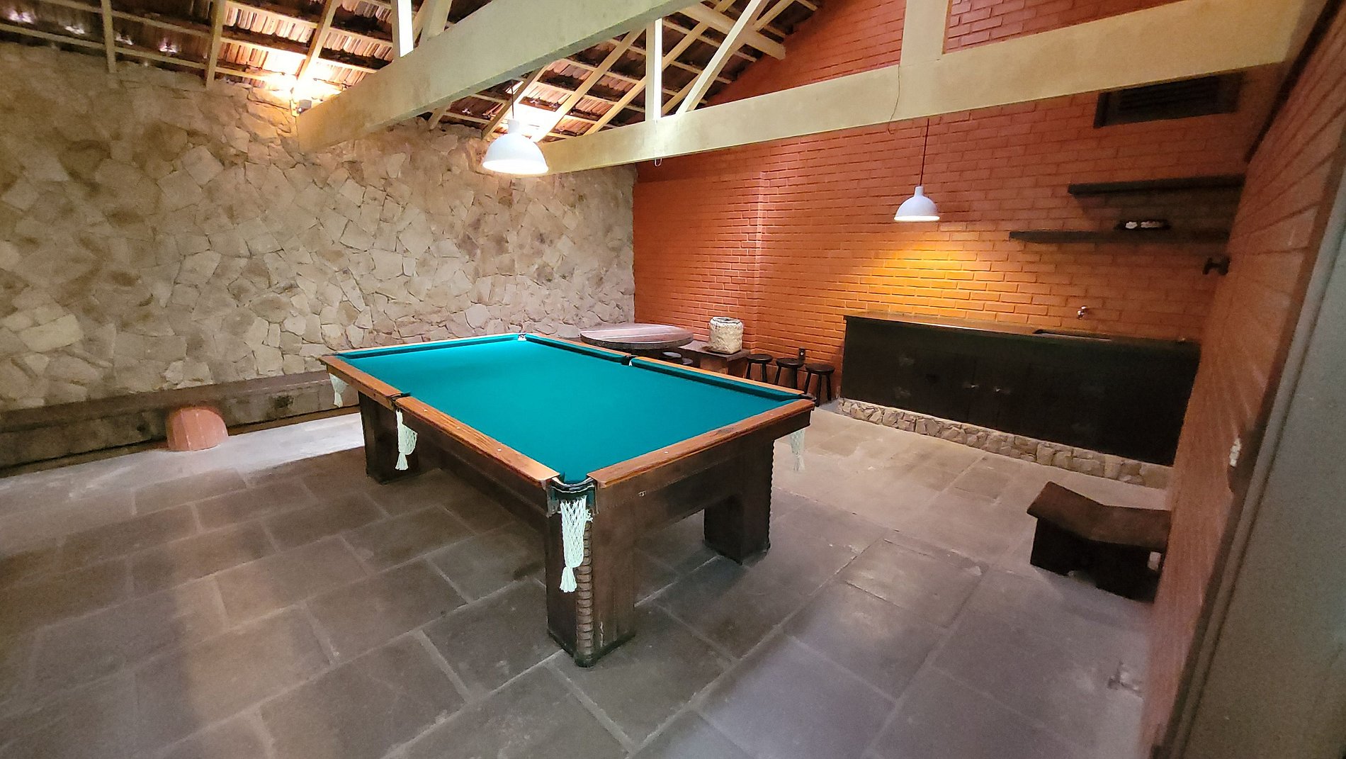 A area extena é composta de belo jardim, piscina e uma sala de jogos com sinuca e tenis de mesa. Temos sauna a lenha, duchas e churrasqueira. Internet com wifi