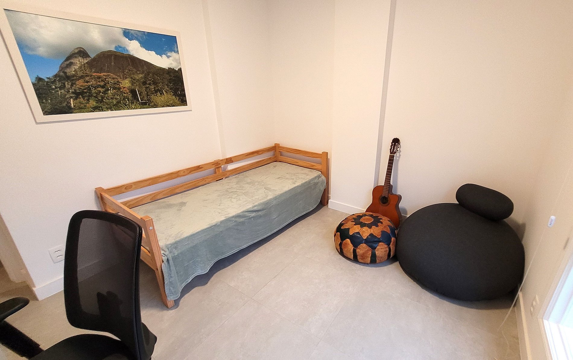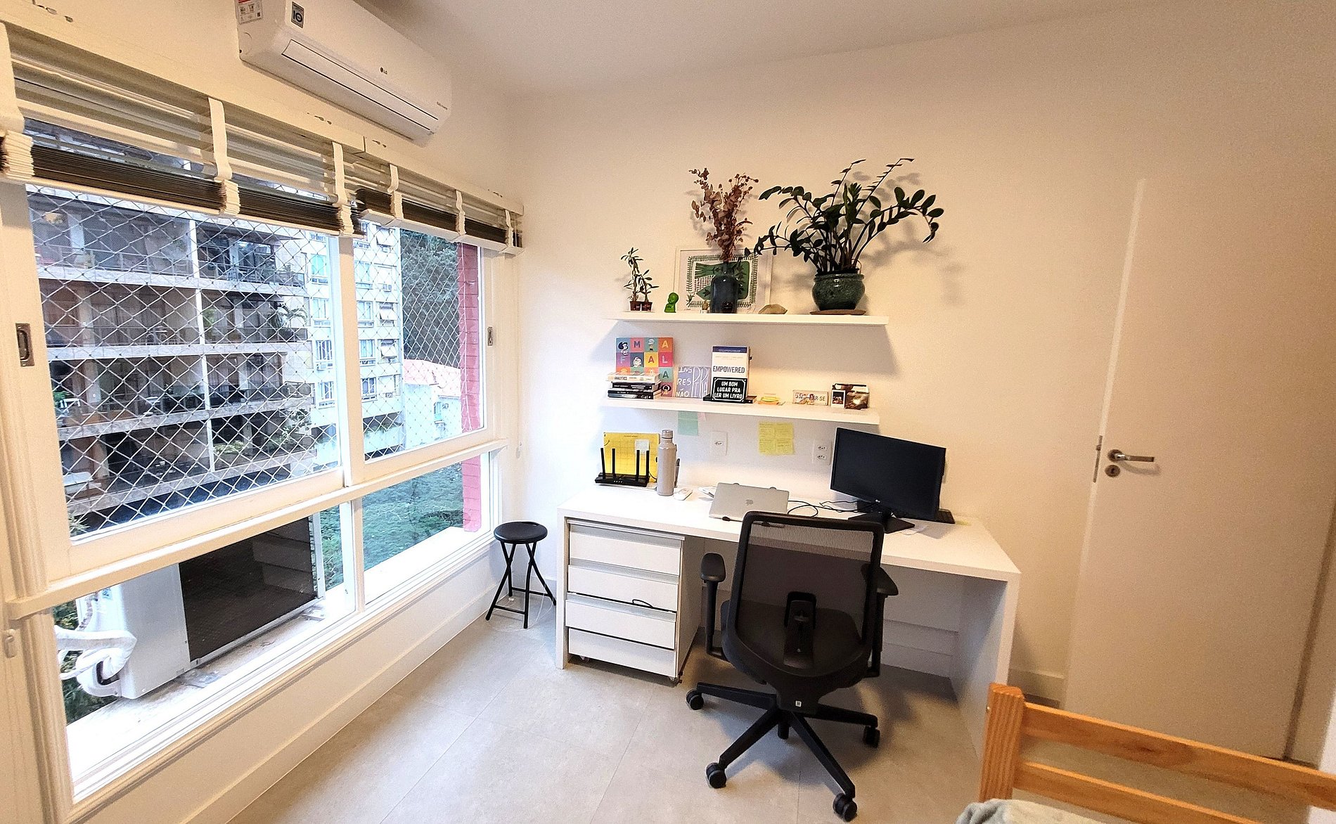 Apartamento amplo, silencioso e arejado. Temos uma suite com cama de casal, ar condicionado e TV. No segundo quarto cama de solteiro, ar condicionado e escrivaninha para estudo ou trabalho. Sala de TV com um confortavel sofá e ar condicionado. Sala de estar com sofá, varanda, ar condicionado e mesa de jantar. Internet de alta velocidade com wifi. Temos um segundo banheiro completo no corredor. Cozinha bem equipada. Portaria 24 horas.
