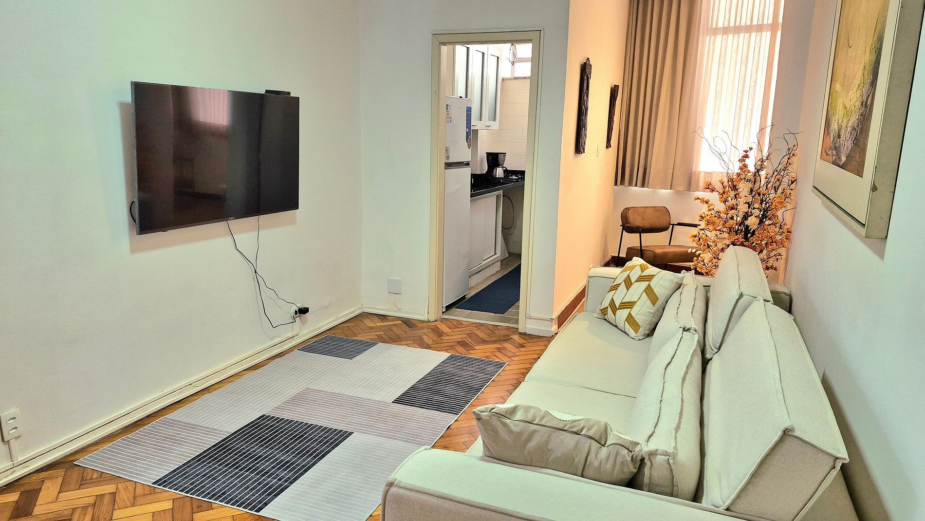 Apartamento recém-reformado, silencioso e a poucos passos da praia de Copacabana, altura posto 5. Sala ampla com sofá cama de casal, mesa para refeições, TV smart e um charmoso jardim de inverno. Quarto com cama de casal, armario, TV smart e ar condicionado. Banheiro moderno e amplo. Cozinha compacta, porem bem equipada. Internet de alta velocidade com wifi. Portaria 24 horas