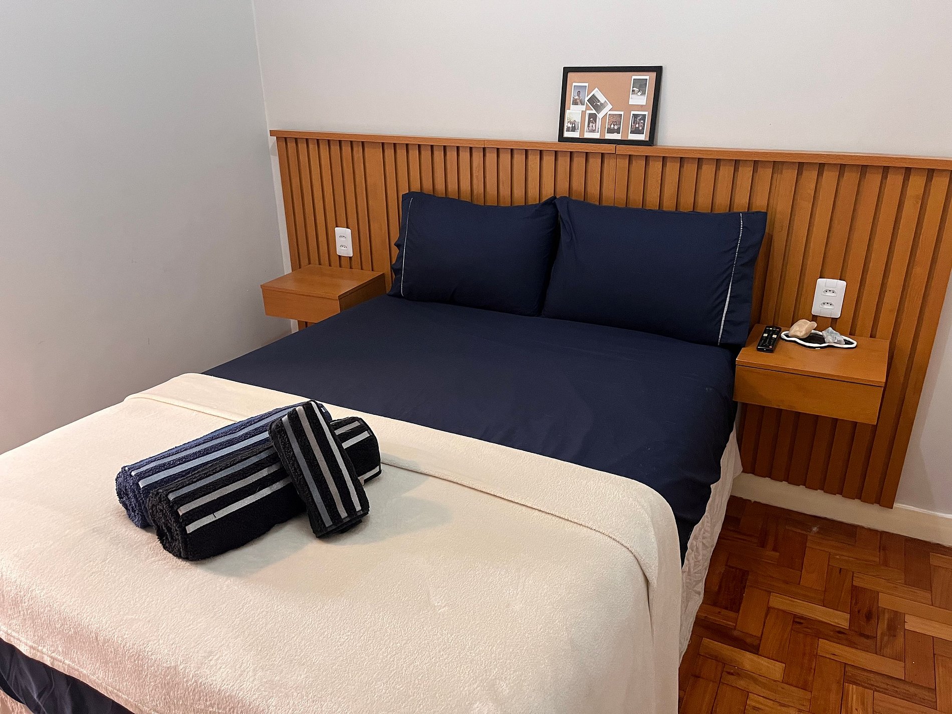 Apartamento com 2 quartos, moderno e bem equipado, localizado em rua muito tranquila, na divisa entre Copacabana e Ipanema. No primeiro quarto temos uma cama de casal, TV smart, ar condicionado e uma mesinha para estudo ou trabalho. No segundo quarto temos uma cama de solteiro tipo "futon", armário e uma mesinha de trabalho ou estudo. Banheiro completo e cozinha bem equipada, com maquina de lavar roupas. Esta é uma área segura com fácil transporte para qualquer lugar da cidade. Portaria 24hs.