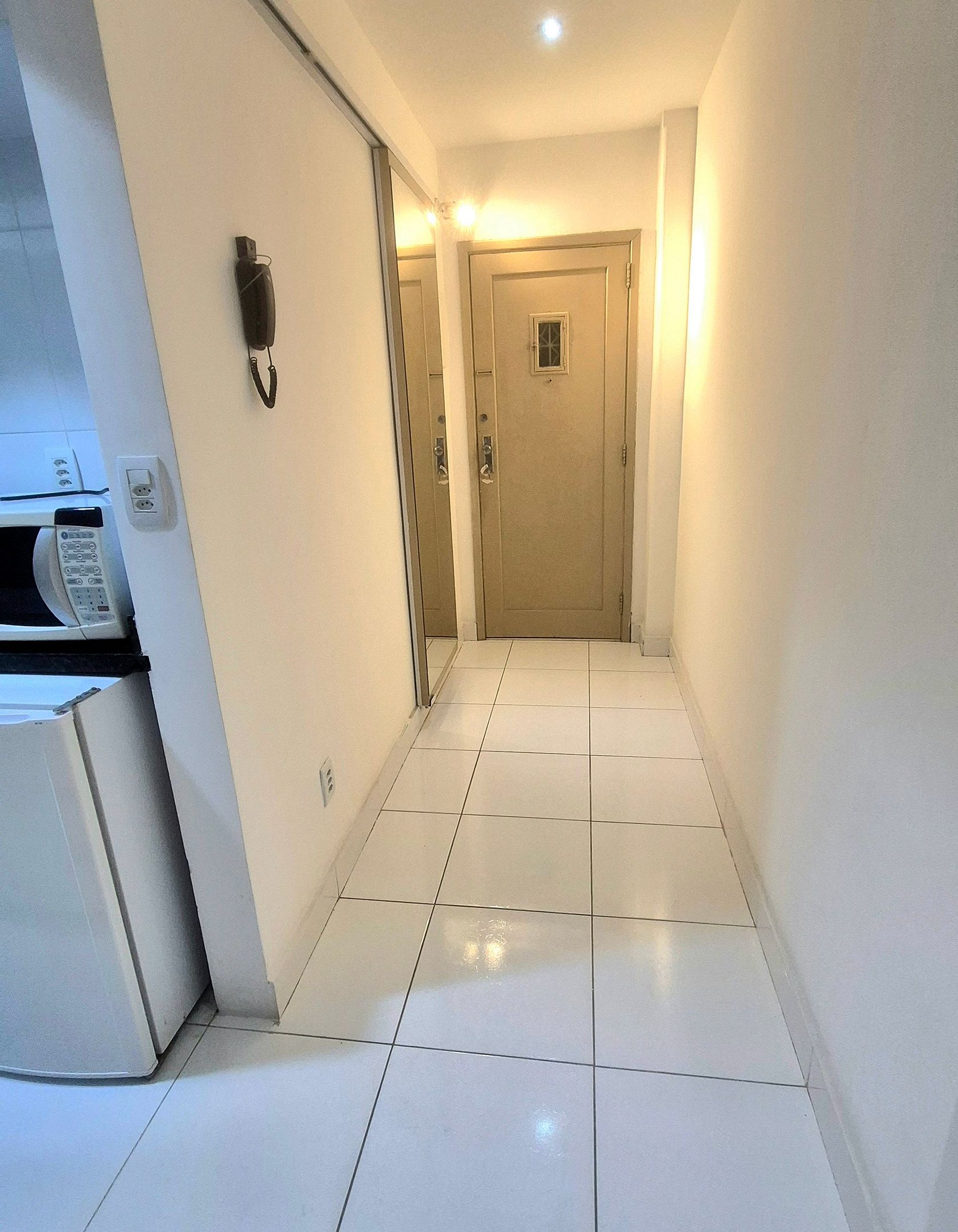 Estúdio novo e silencioso, apenas 2 quadras da praia de Copacabana, altura posto 4. Temos uma cama de casal + 1 cama de solteiro. TV smart, ar condicionado e armario. Bancada com cadeiras para refeições. Cozinha americana bem equipada. Banheiro moderno com chuveiro e água quente. Internet de alta + wifi. Portaria 24 horas
