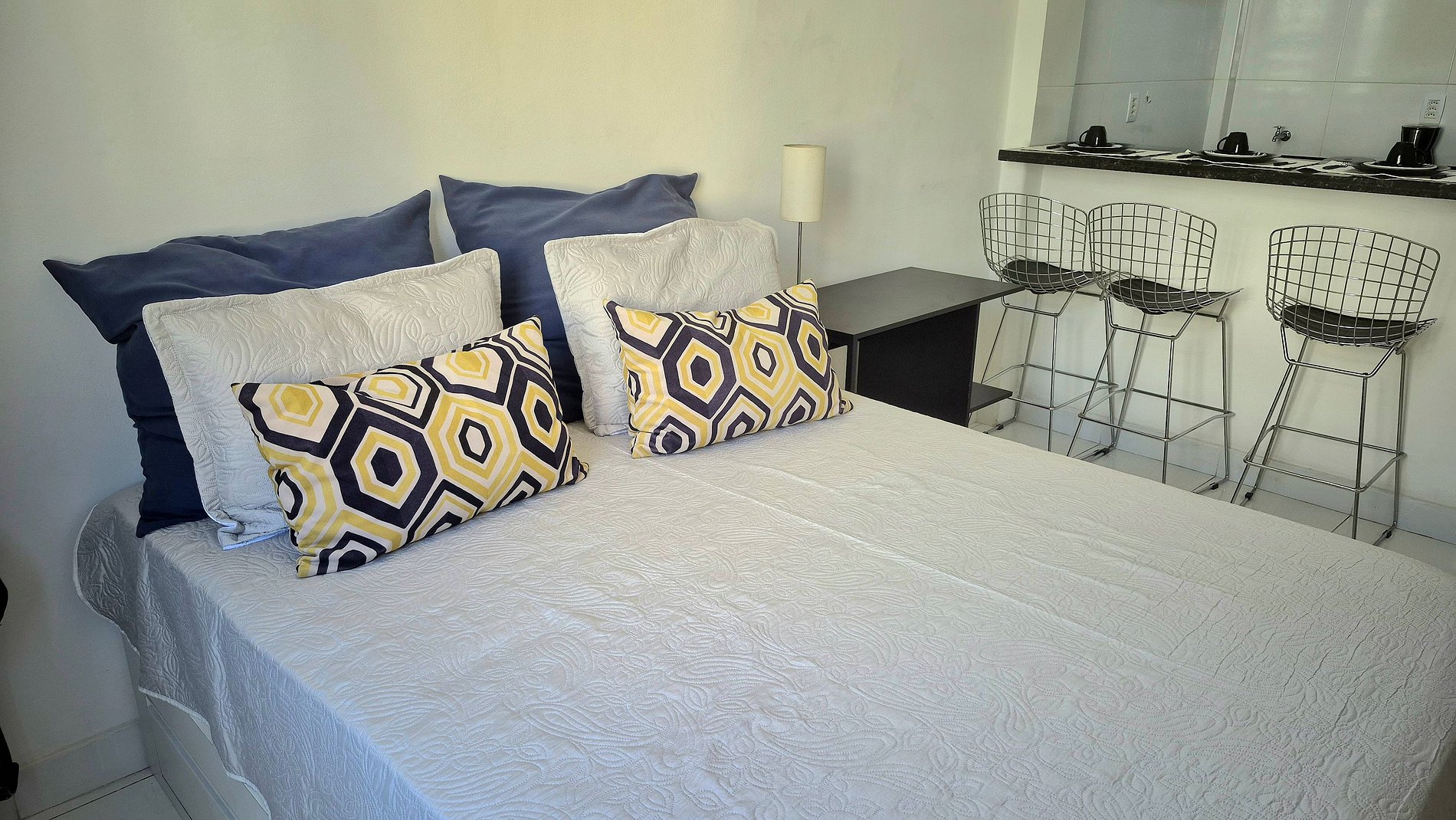 Estúdio novo e silencioso, apenas 2 quadras da praia de Copacabana, altura posto 4. Temos uma cama de casal + 1 cama de solteiro. TV smart, ar condicionado e armario. Bancada com cadeiras para refeições. Cozinha americana bem equipada. Banheiro moderno com chuveiro e água quente. Internet de alta + wifi. Portaria 24 horas