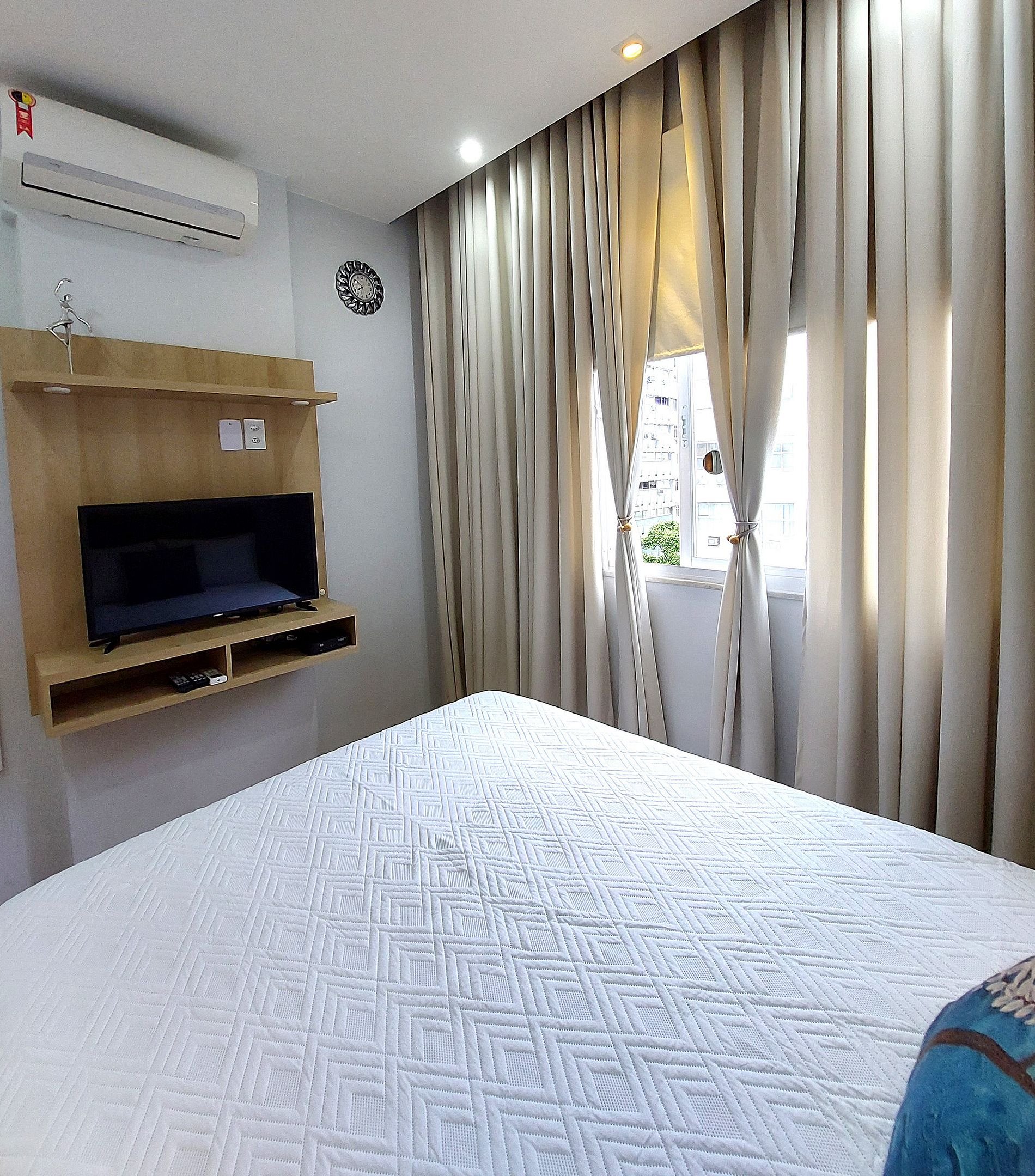 Apartamento espaçoso, arejado e apenas 2 quadras da praia de Copacabana, cerca de 5 minutos pé. Temos 2 quartos, sendo o primeiro com cama de casal TV smart e ar condicionado + banheiro completo e reformado no corredor. O segundo quarto é uma pequena suite com cama de solteiro e banheiro. Cozinha completa e bem equipada, com maquinha de lavar roupas. Sala de estar com sofa, TV smart e ar condicionado. Espaço para refeicoes que acomoda bem 3 ou 4 pessoas.