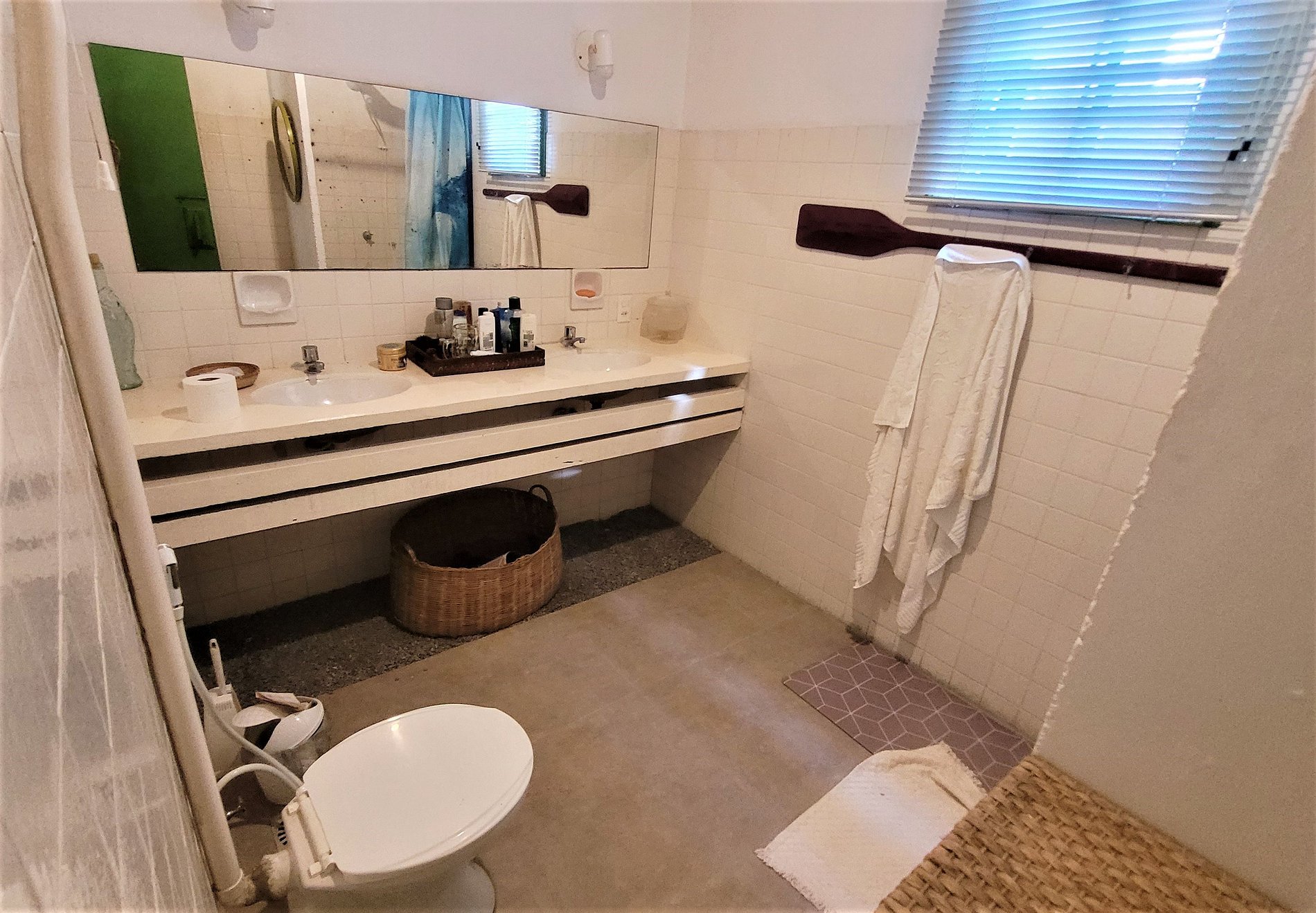 O espaço é ideal para uma grande família ou grupo de amigos. A casa é dividida em 2 partes. Na frente temos 3 quartos e 4 banheiros, sala de estar e jantar, cozinha e varanda. Na parte dos fundos temos mais 2 quartos e 2 banheiros, espaço gourmet com churrasqueira e sala de estar. Na área externa temos piscina, pista de skate, um enorme jardim e um gramado que pode inclusive ser utilizado como Heliponto. TV a cabo + internet de boa velocidade e ar condicionado em todos os quartos.