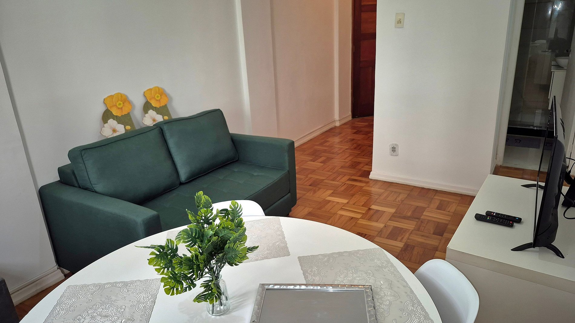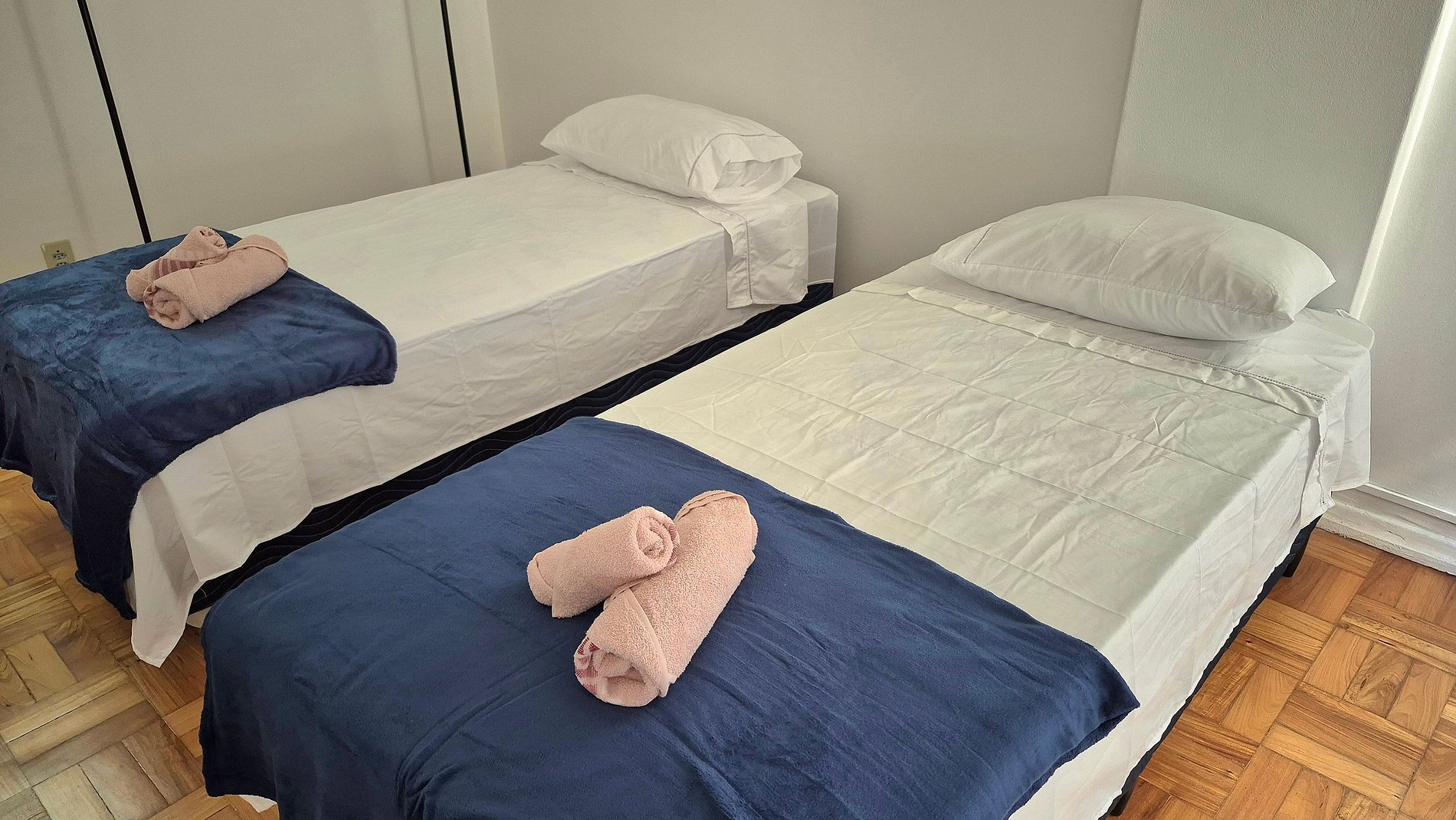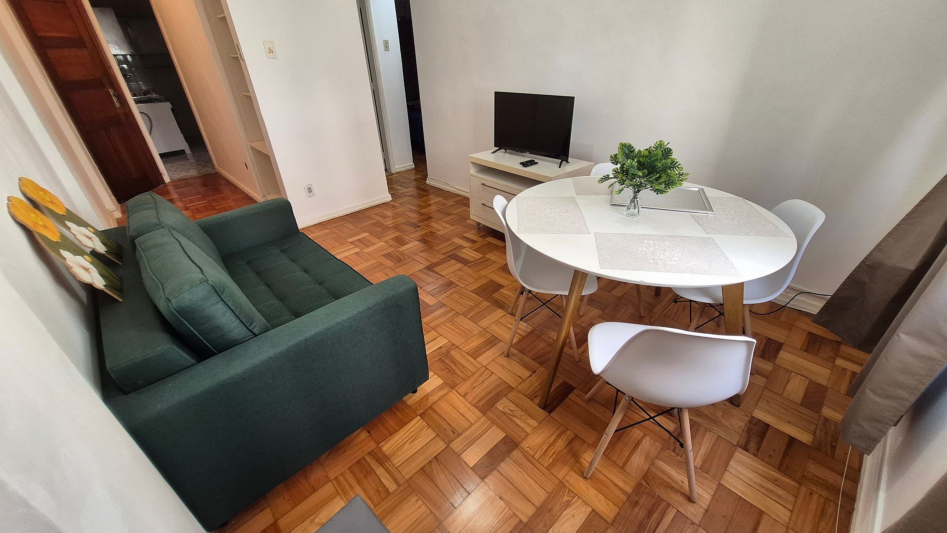 Apartamento silencioso, em rua tranquila, a tres quadras da praia de Copacabana, entre os postos 5 e 6. Dois quartos, cada um com duas camas de solteiro e espaço para roupas. Apenas um dos quartos possui ar-condicionado. Ventilador de teto na sala e nos quartos. Sala com sofá-cama, TV de tela plana e mesa para refeições. Banheiro completo com box de vidro. Cozinha equipada. Internet Wi-Fi de alta velocidade. Portaria 24 horas