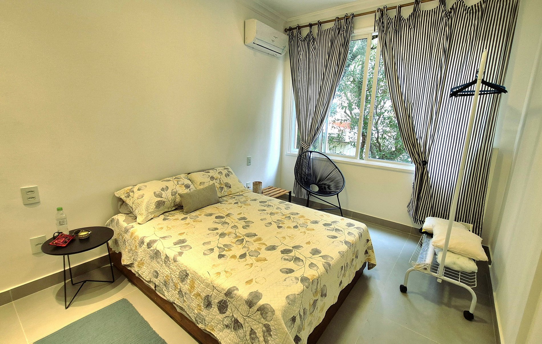 Apartamento claro e arejado apenas 2 quadras das praias de Ipanema, Arpoador e Copacabana. Suite com cama de casal, armário e ar condicionado. Banheiro recém-reformado. Sala de estar com sofa, ar condicionado, mesa para refeicões, TV e internet. Cozinha moderna e bem equipada, com máquina de lavar roupas. Portaria das 07 às 22 horas.