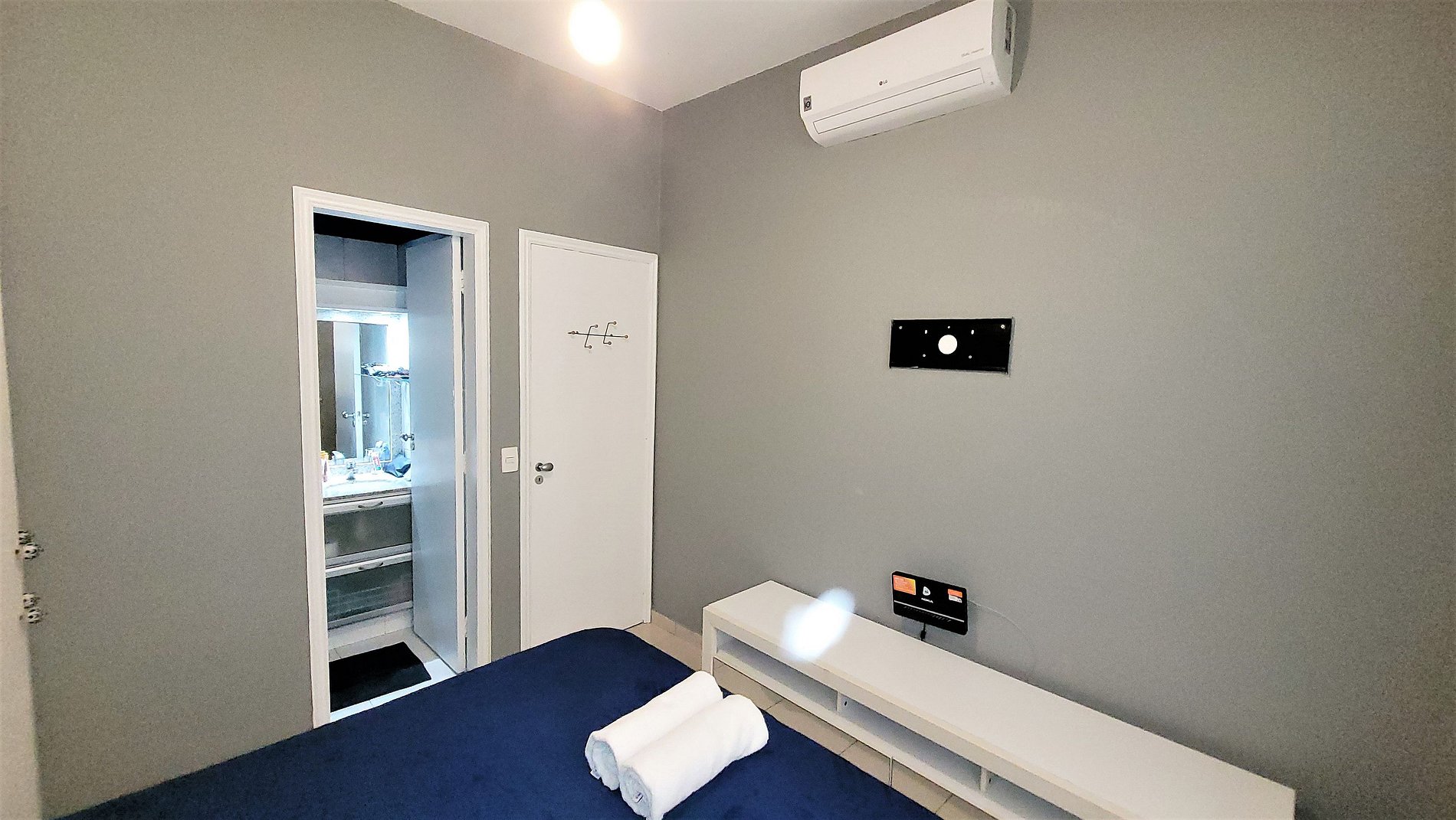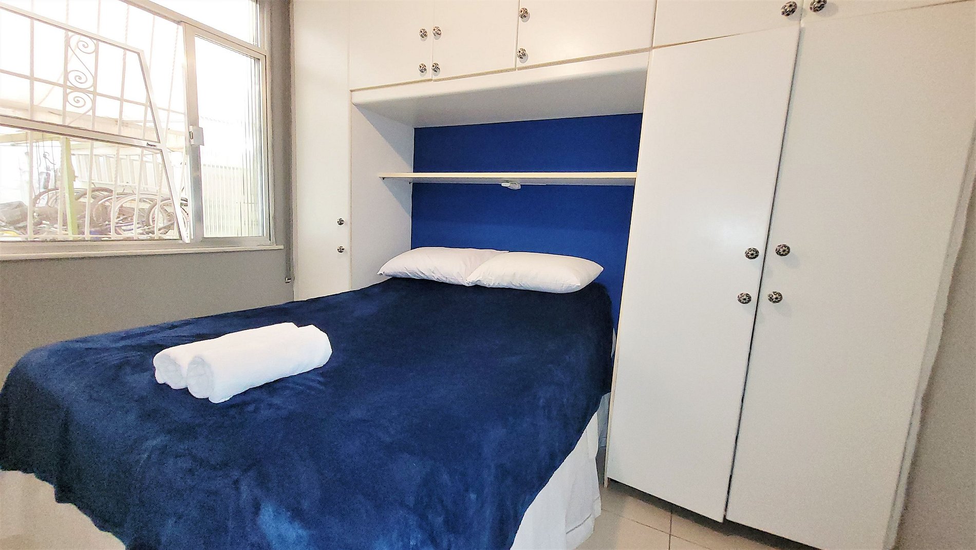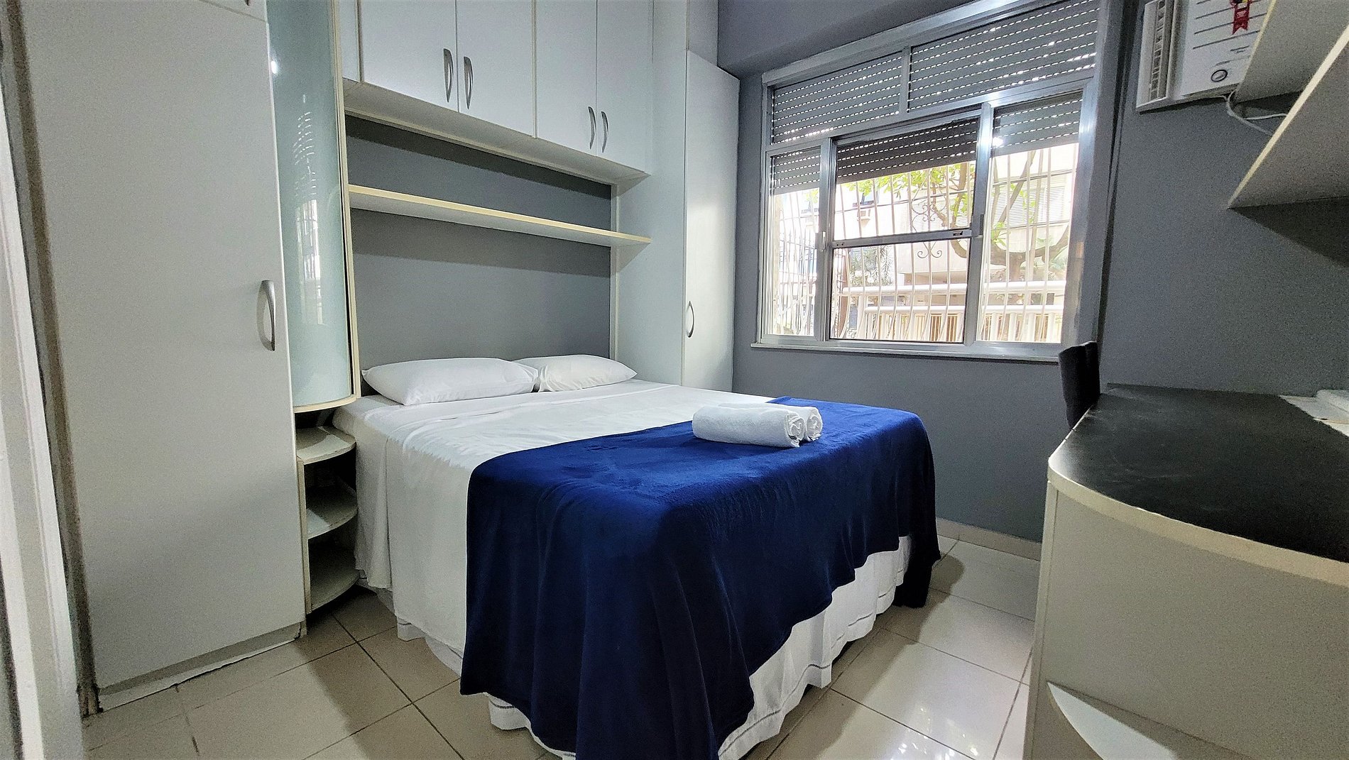 Apartamento composto por 2 suites, ambas com camas de casal e armários embutidos, mais um tercieiro quartinho com uma cama de solteiro, sala de estar com TV tela plana, sofá cama e mesa de jantar com assento para 5 pessoas. Cozinha completa e bem equipada, microondas, forno e fogão. Ar condicionado split nas 2 suites. TV a cabo + internet de alta velocidade com wifi. Andar térreo com uma área externa para guardar bicicletas.