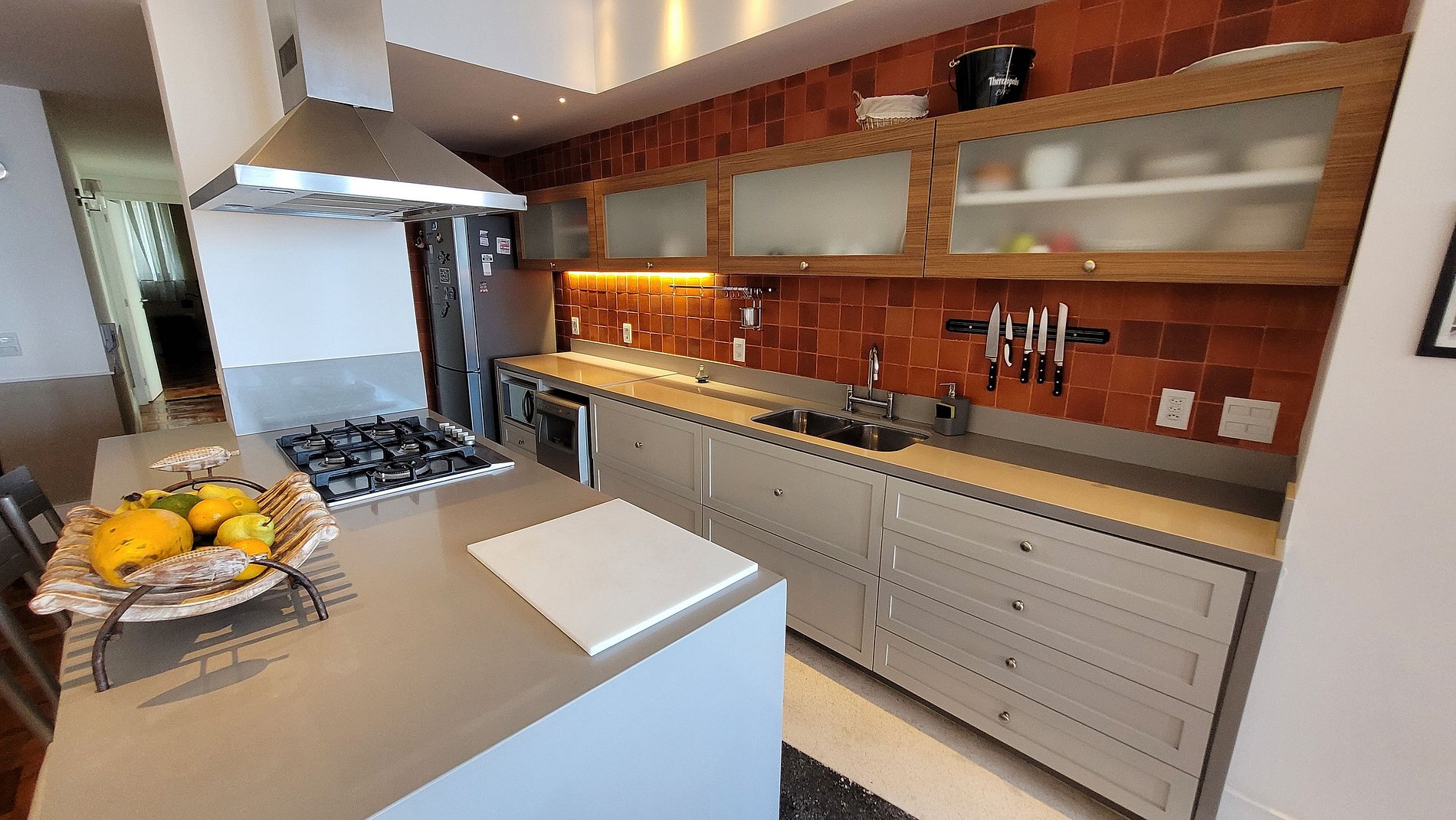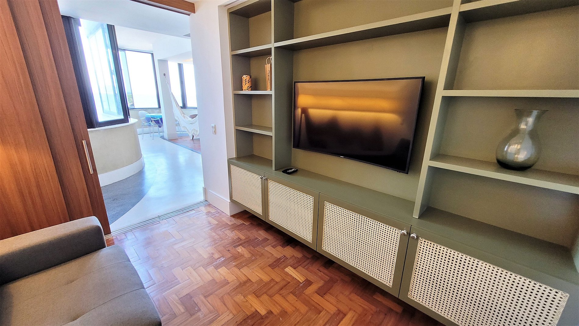 Edifício Ypiranga, um dos prédios mais emblemáticos da orla de Copacabana, onde por mais de 60 anos o arquiteto Oscar Niemeyer manteve seu escritório e ateliê. O apartamento passou por uma bela reforma respeitando de forma minimalista, moderna e inteligente, as curvas do polêmico edifício dos anos 30, que já teve o apelido de "Mae West" por conta das duas colunas de terraços protuberantes que se lançam sobre a vista para o mar.