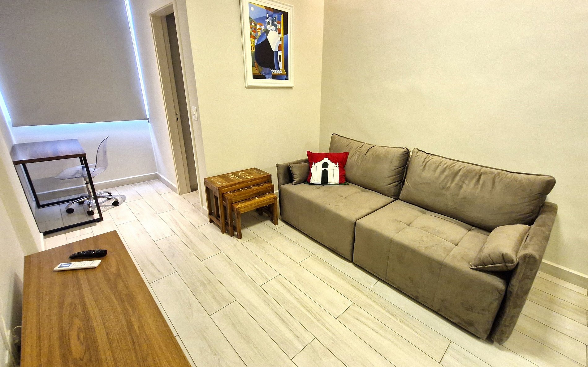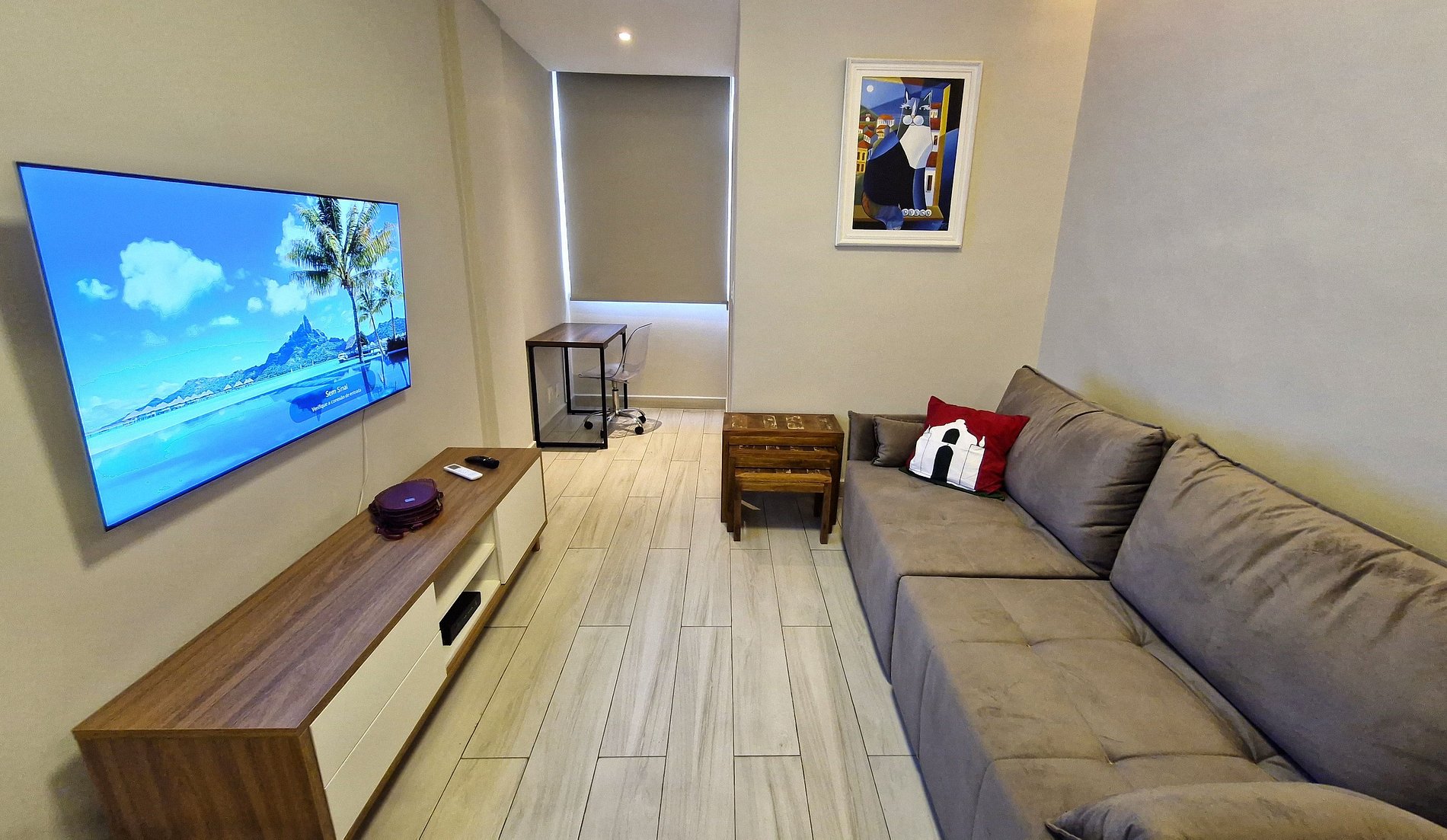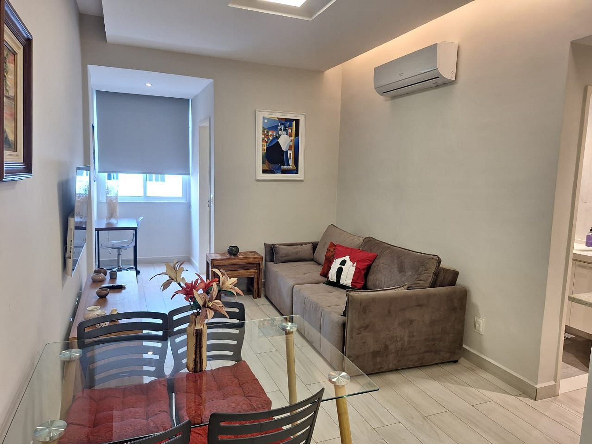 Belo apartamento quarto e sala, 3 quadras da praia de Copacabana. Quarto com cama de casal, armário embutido e ar condicionado. Sala de estar com sofa cama duplo, mesa para refeições, ar condicionado e mesinha de trabalho. Banheiro completo e recem reformado. Cozinha tipo americana, super completa e bem equipada. Area de serviço com um pequeno banheiro de apoio. TV smart, com internet de alta velocidade e wifi. Portaria das 08 da manha às 20 horas