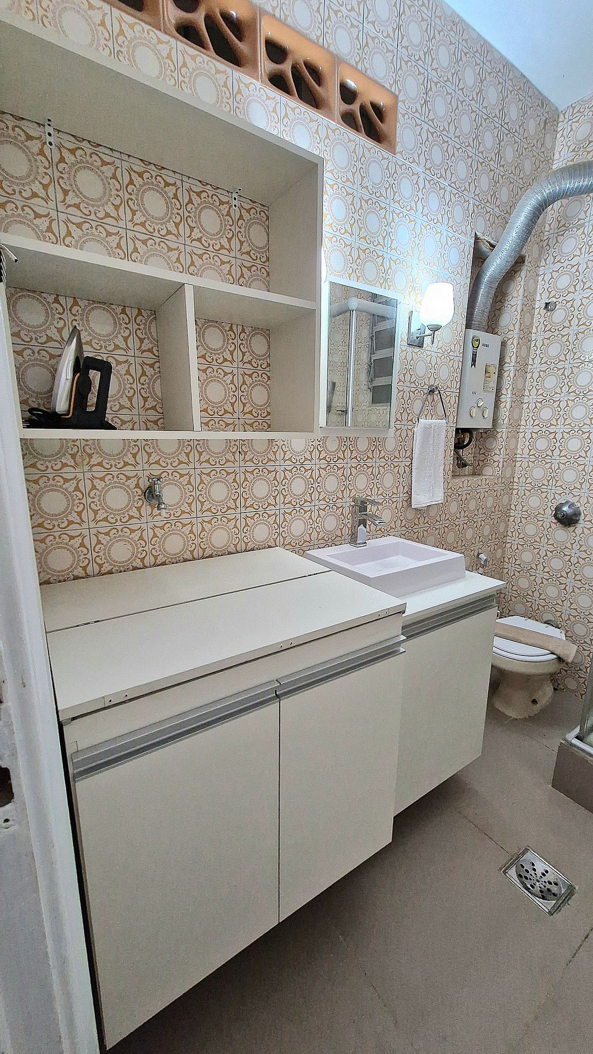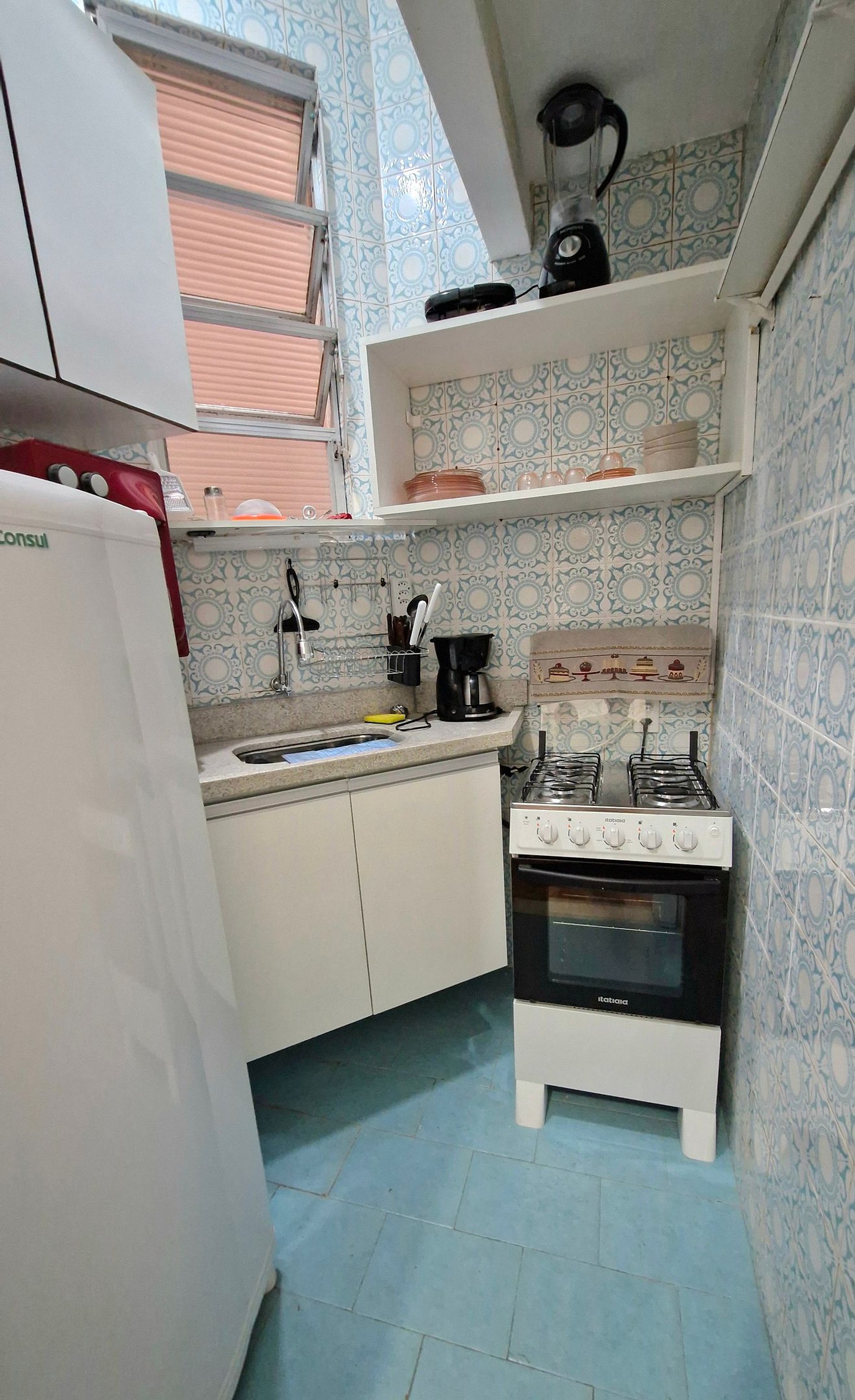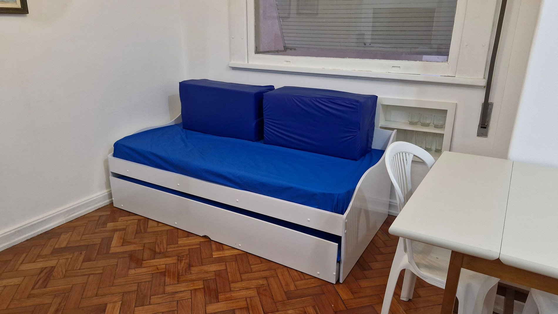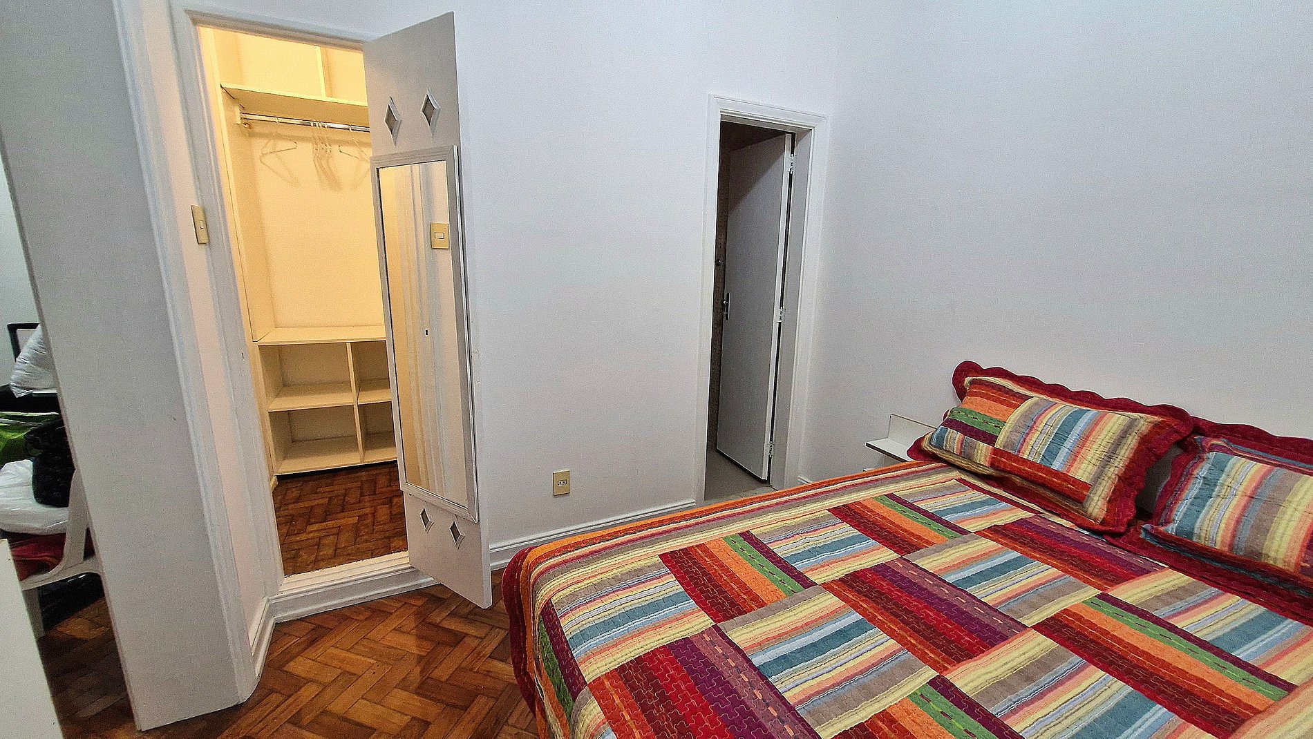Apartamento muito silencioso e confortável para até 4 pessoas, a poucos metros do mar. Estamos localizados a menos que 1 quadra da praia de Copacabana, altura posto 02. Quarto com cama de casal e closet. Banheiro completo com um tanquinho para lavar pequenas peças. Sala com TV, sofá cama (bi-cama) para 2 pessoas e mesinhas para refeições. Ar condicionado e Internet de alta velocidade com WIFI. Portaria 24 horas.