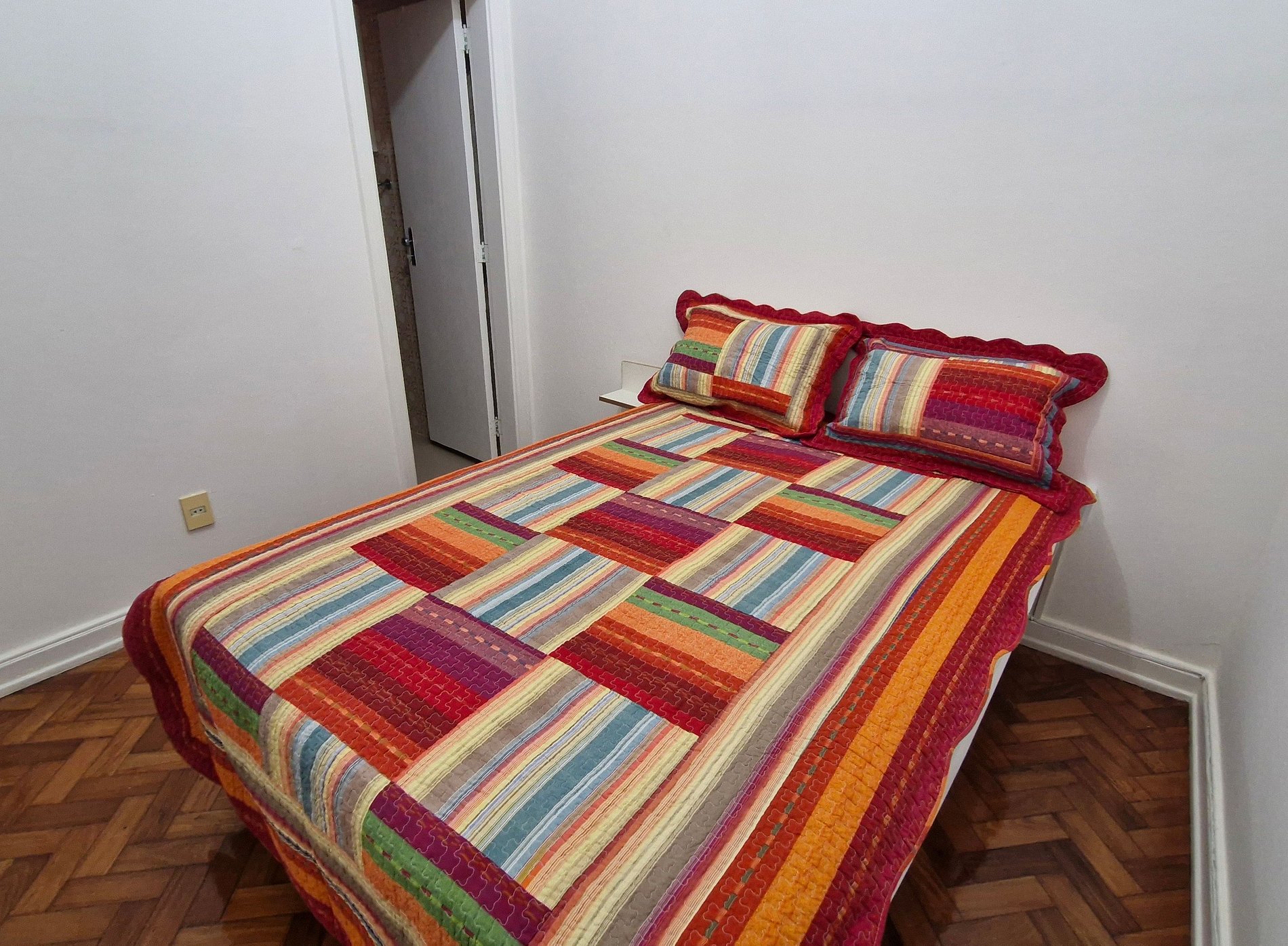 Apartamento muito silencioso e confortável para até 4 pessoas, a poucos metros do mar. Estamos localizados a menos que 1 quadra da praia de Copacabana, altura posto 02. Quarto com cama de casal e closet. Banheiro completo com um tanquinho para lavar pequenas peças. Sala com TV, sofá cama (bi-cama) para 2 pessoas e mesinhas para refeições. Ar condicionado e Internet de alta velocidade com WIFI. Portaria 24 horas.