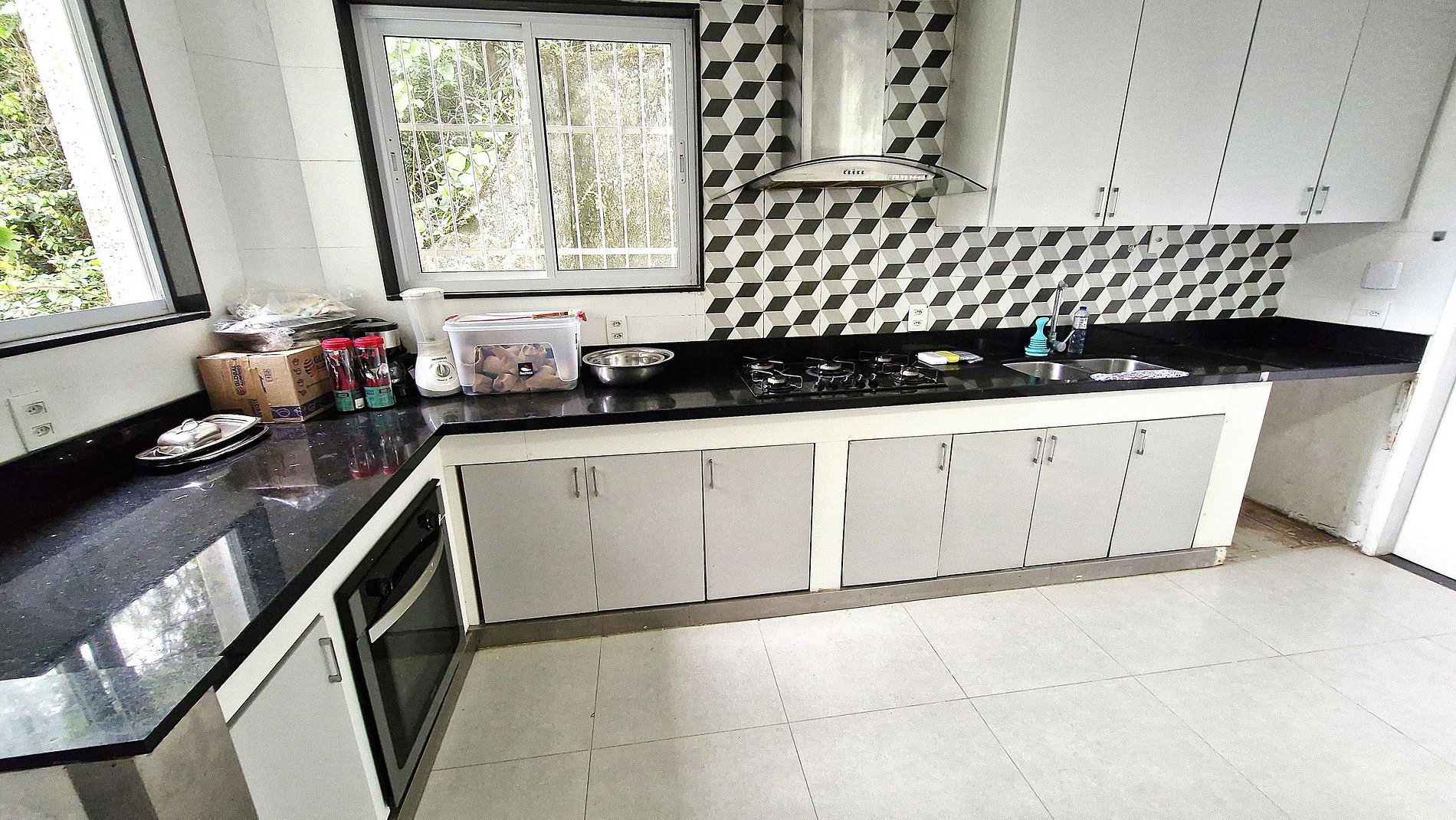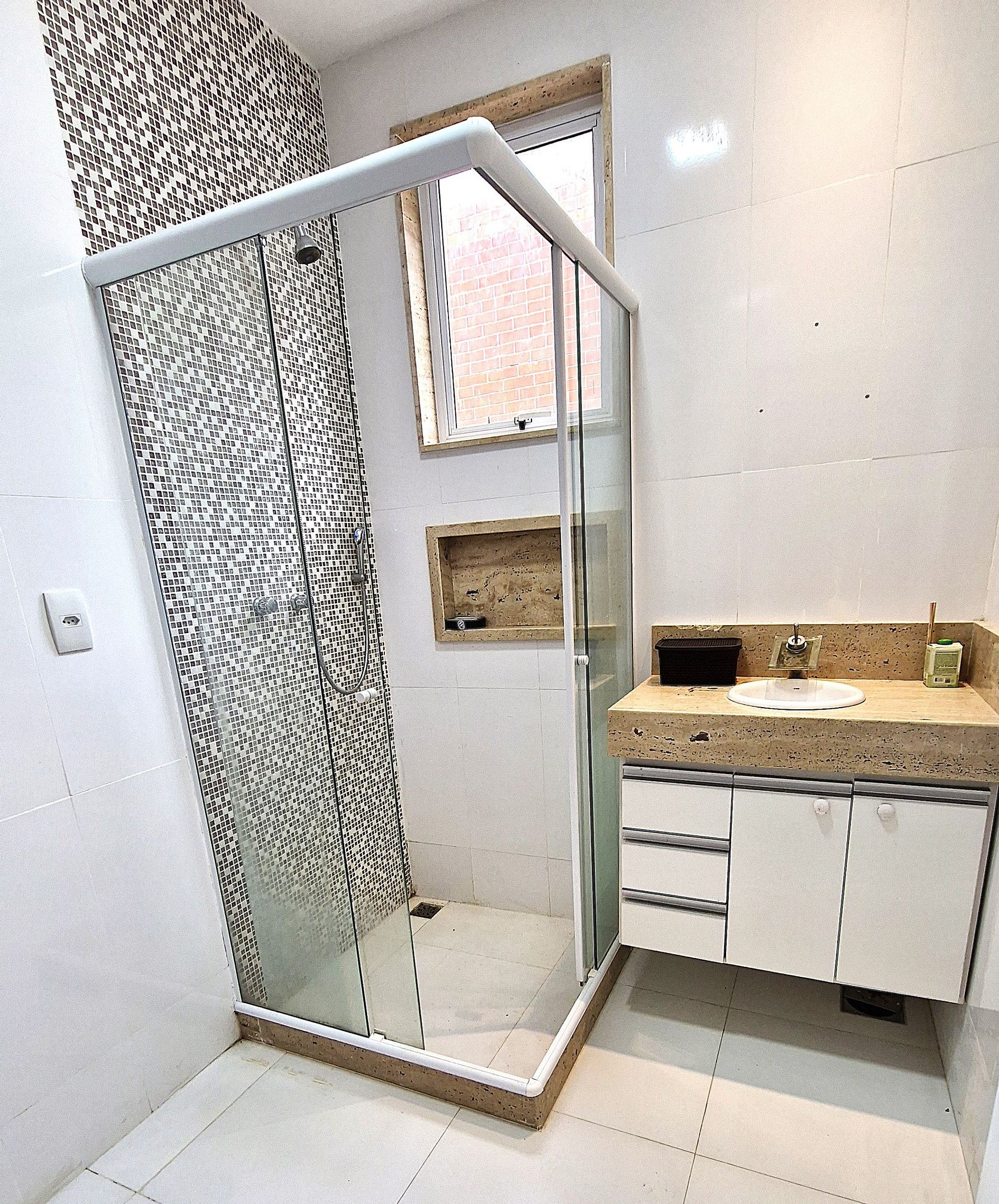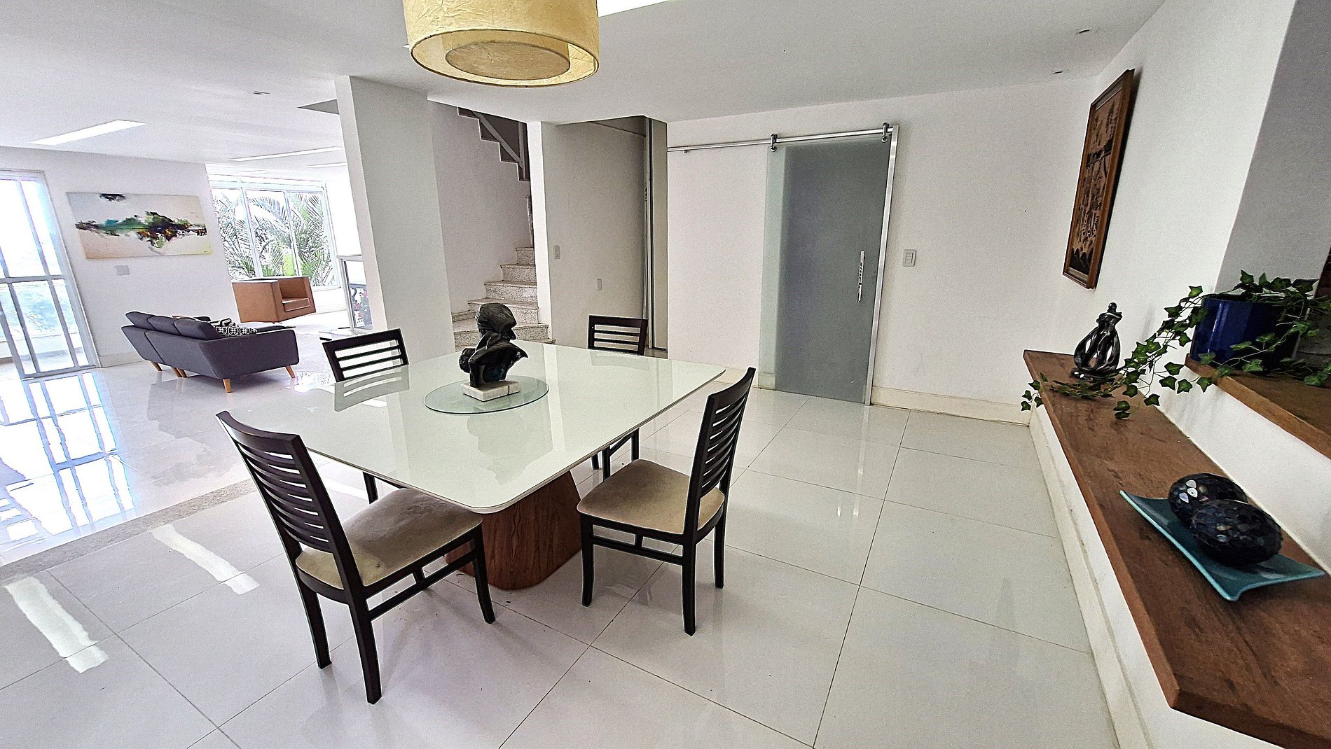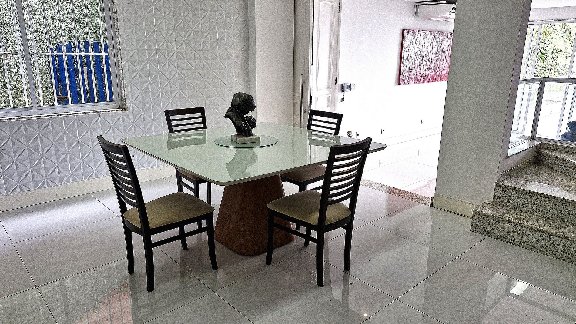 Sala de estar com sofás, poltronas, ar condicionado e TV. Sala de jantar com lavabo e barzinho. Elevador interno para deficientes ou pessoas com dificuldade de locomoção. Temos 4 suites, todas com ar condicionado. São 3 suites com camas de casal + uma suite com cama de casal e cama solteiro. Acomodamos confortavelmente até 9 pessoas. Cozinha completa e bem equipada. Internet de alta velocidade com wifi.