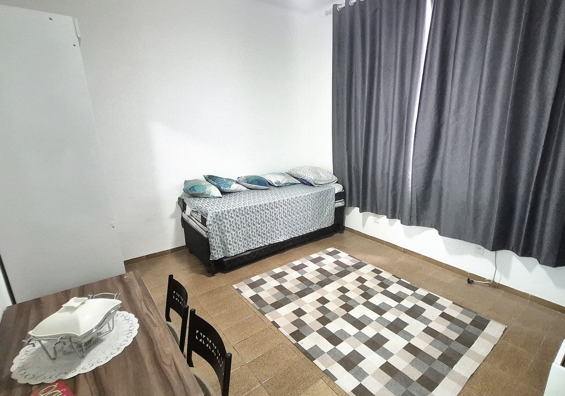 Pequeno estudio ao lado do Outeiro da Gloria. Composto por 2 camas de solteiro, mesinha para refeições, TV tela plana, ar condicionado e armario. Internet com wifi. Banheiro completo com box em blindex. Cozinha compacta com fogão, microondas e frigobar. Portaria 24 horas