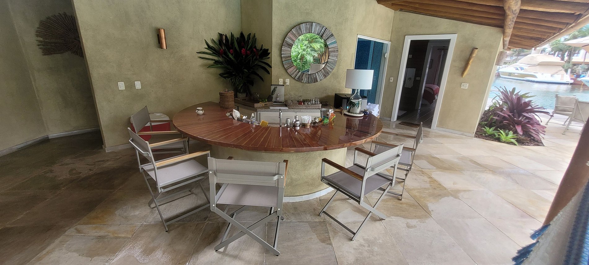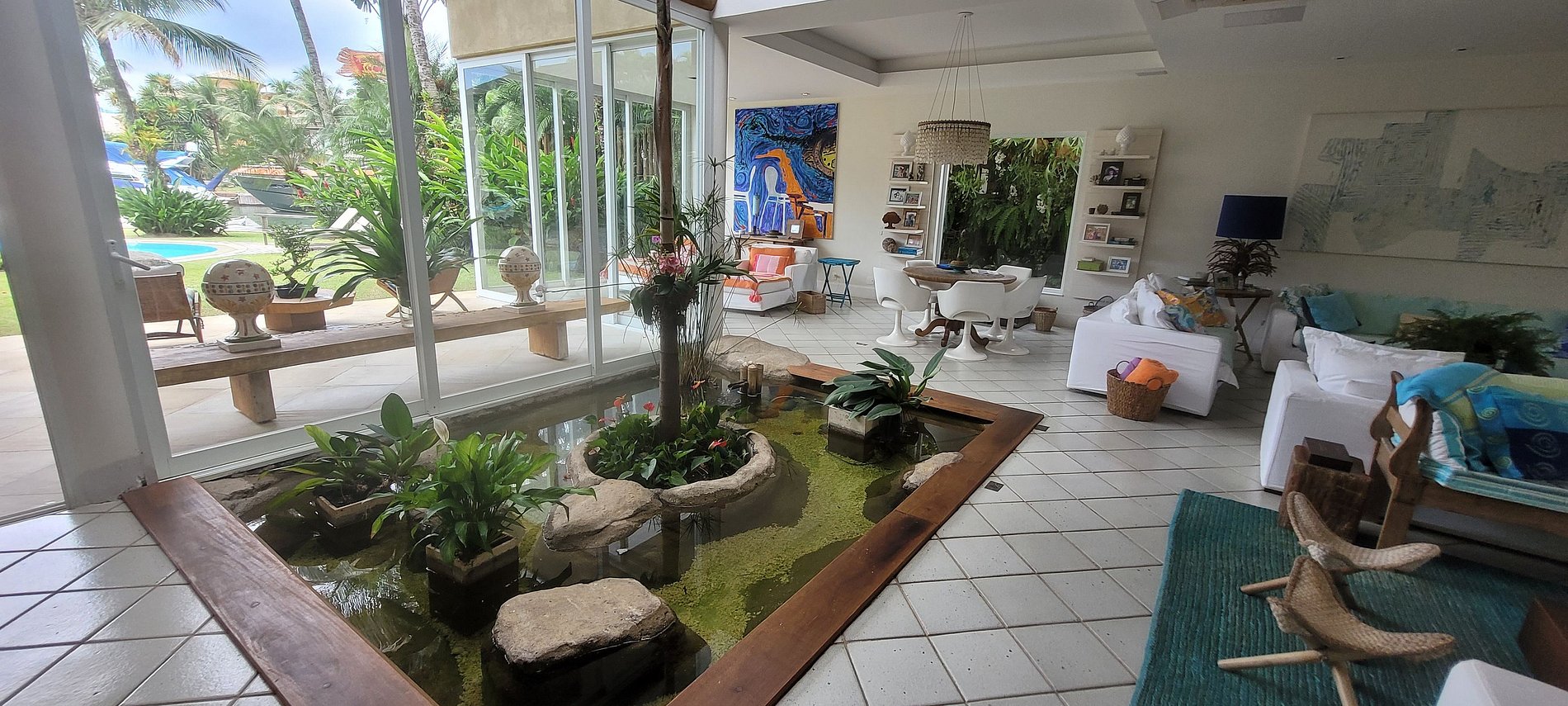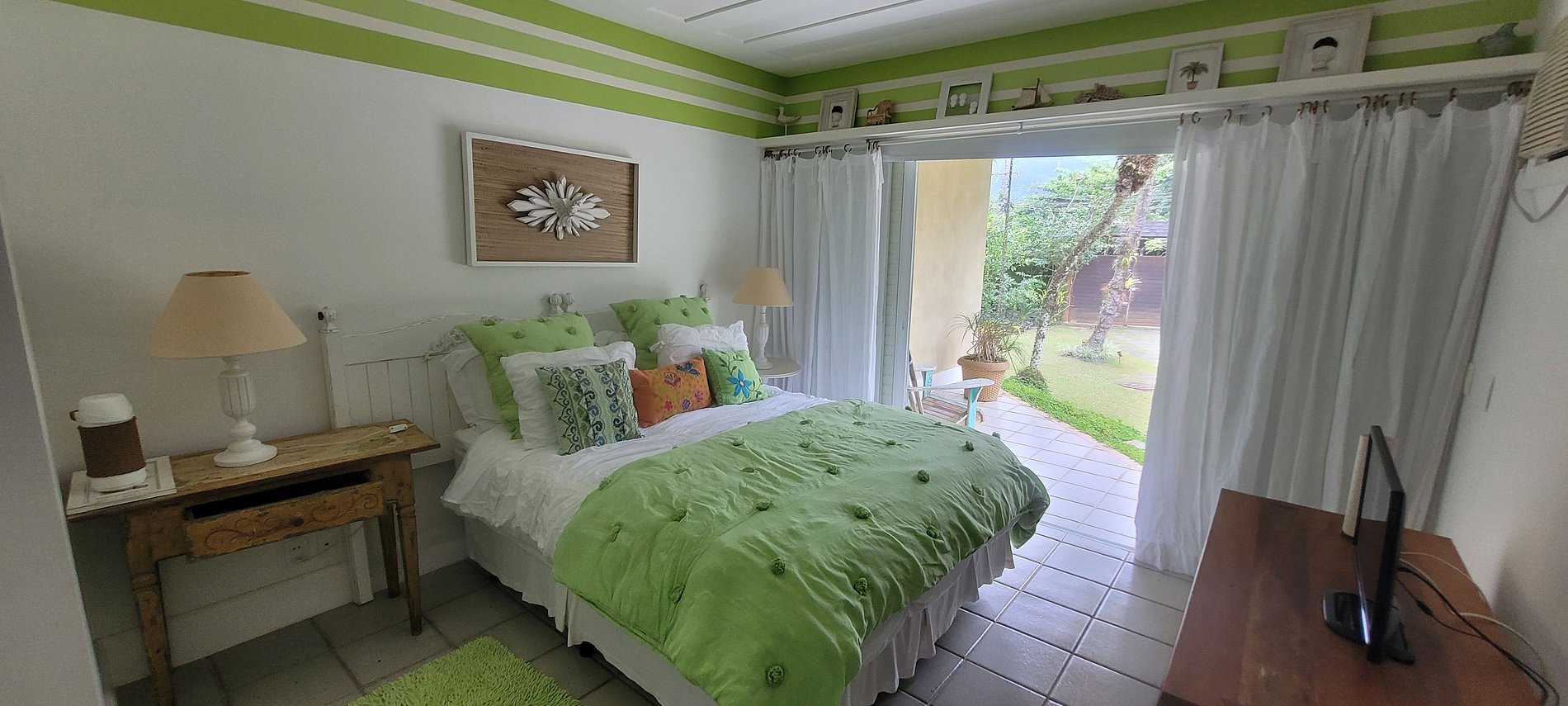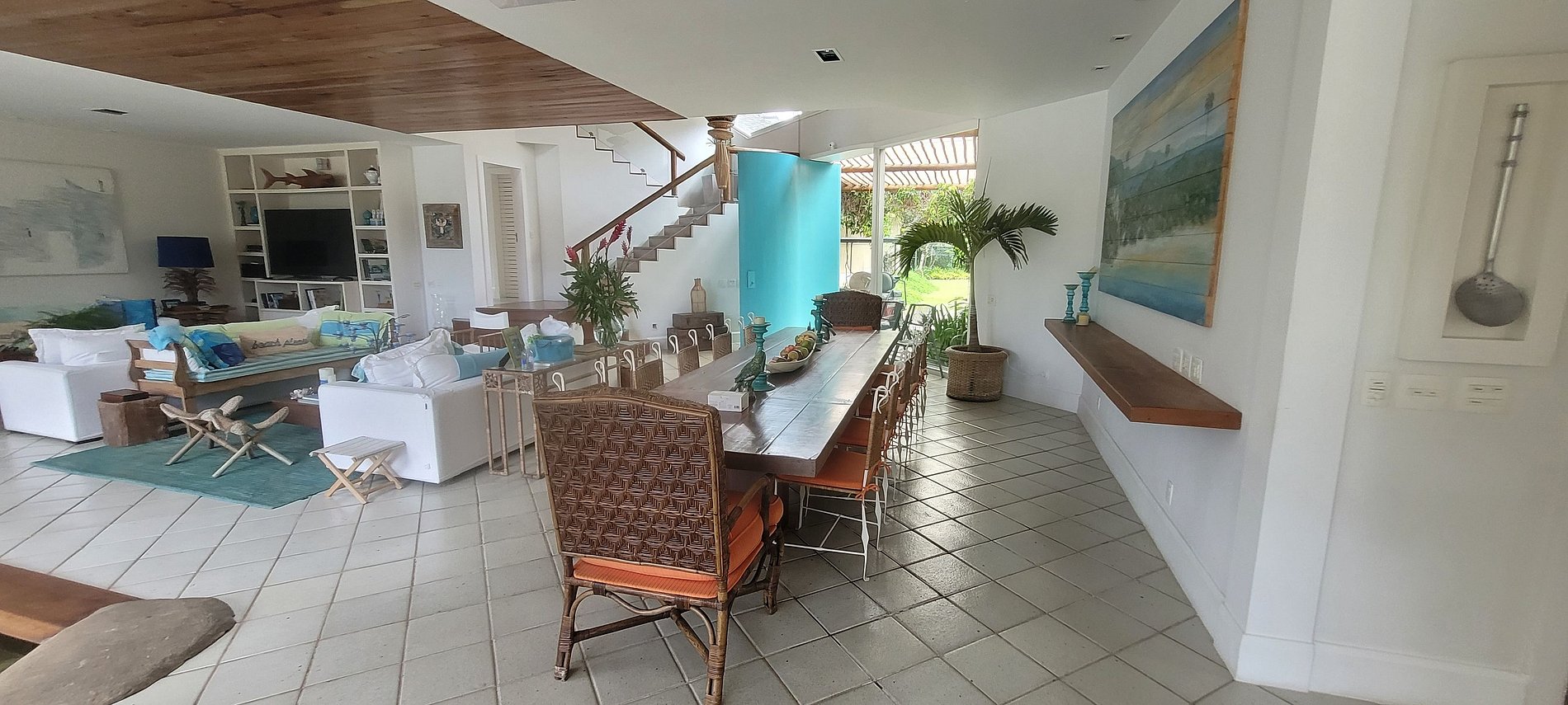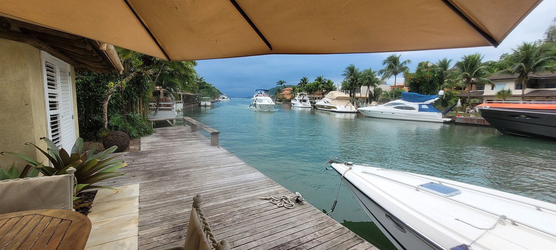 Casa ampla, nova, moderna e bem decorada, com deck e acesso ao mar. Localizada dentro do condominio Porto Frade. Sala de estar, sala de jantar com capacidade para 10 pessoas, area gourmet, churrasqueira, jardim, jacuzzi e piscina. Temos 7 suites muito confotaveis e todas com ar condicionado. Sauna com ducha no jardim. Cozinha completa, com fogão profissional e area de lavanderia com maquinas de lavar e secar. Estacionamento para 4 carros.