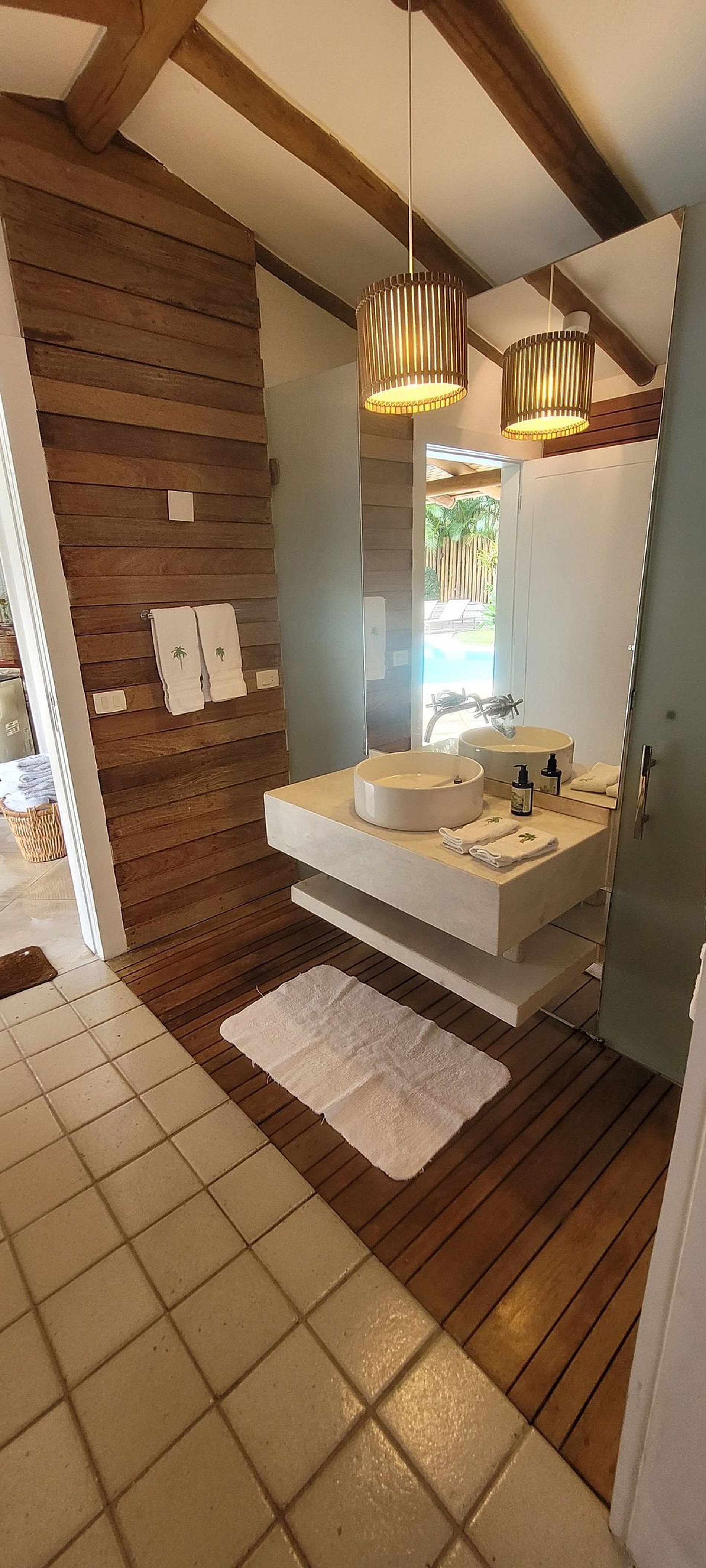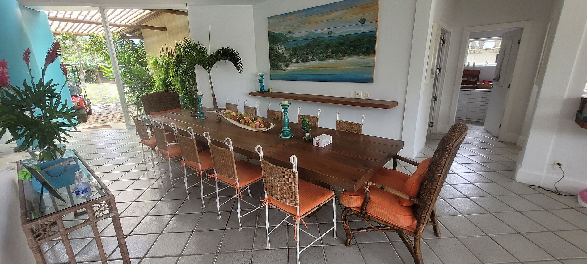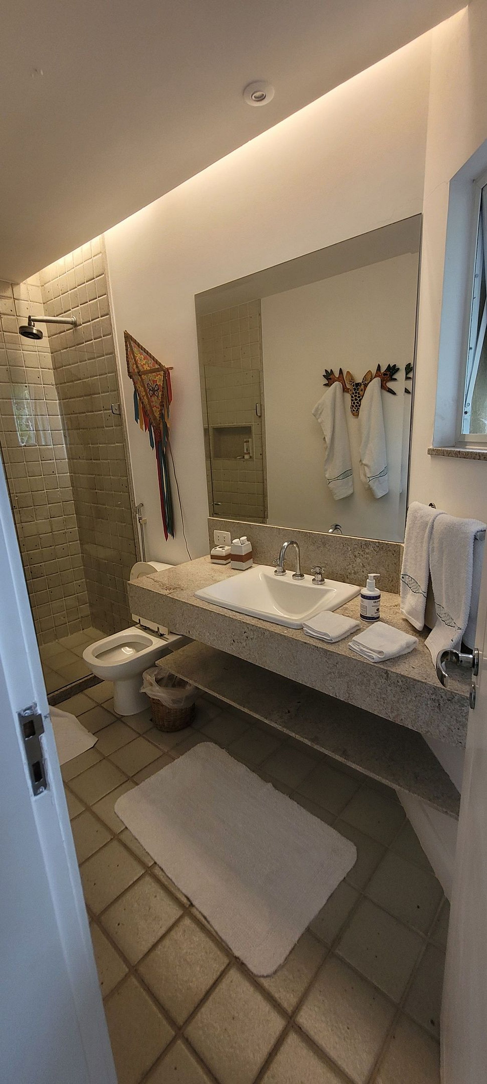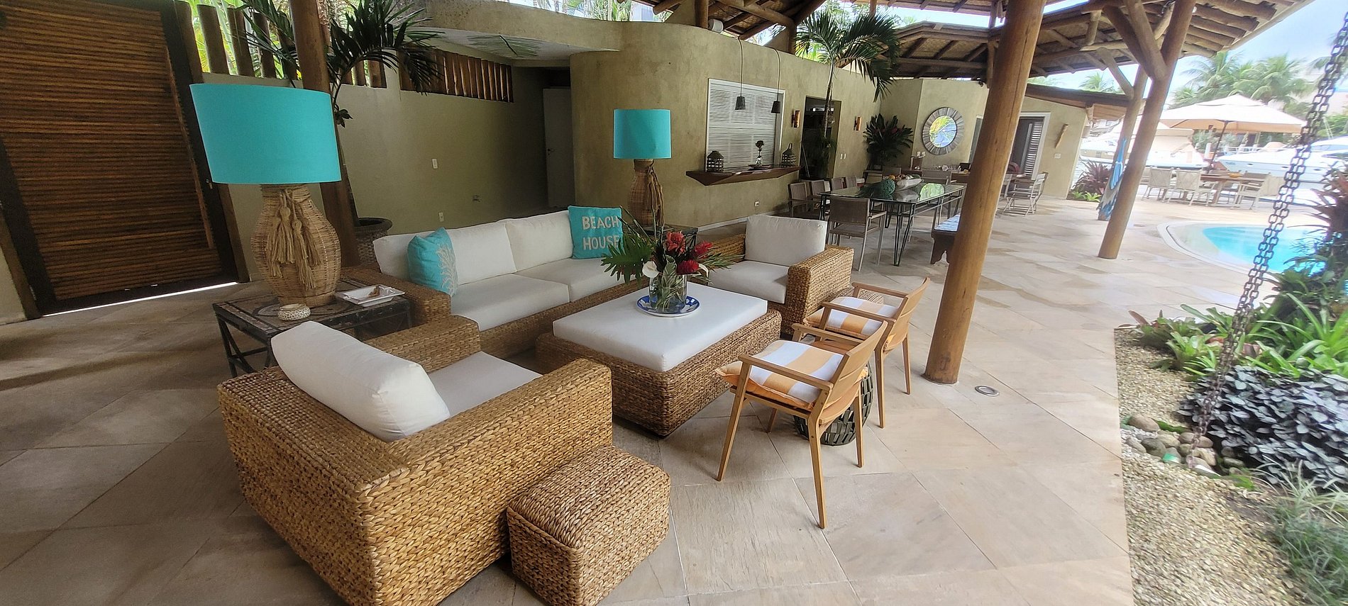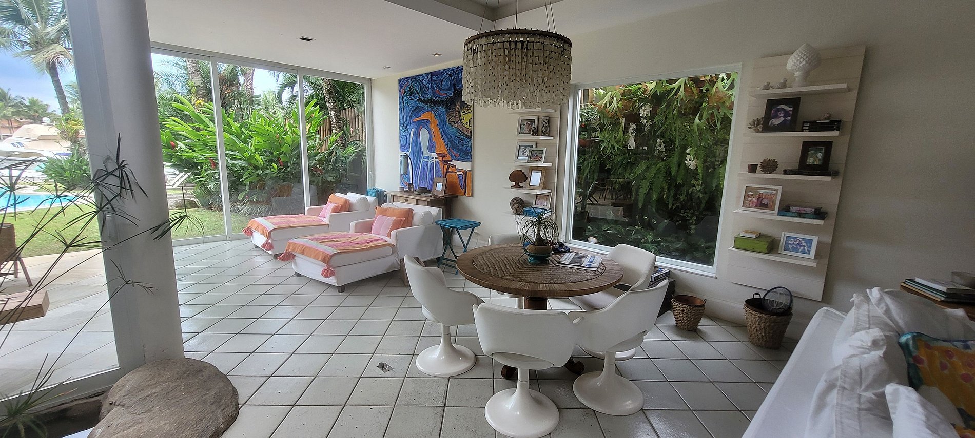 Casa ampla, nova, moderna e bem decorada, com deck e acesso ao mar. Localizada dentro do condominio Porto Frade. Sala de estar, sala de jantar com capacidade para 10 pessoas, area gourmet, churrasqueira, jardim, jacuzzi e piscina. Temos 7 suites muito confotaveis e todas com ar condicionado. Sauna com ducha no jardim. Cozinha completa, com fogão profissional e area de lavanderia com maquinas de lavar e secar. Estacionamento para 4 carros.